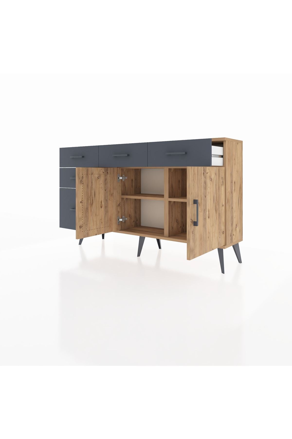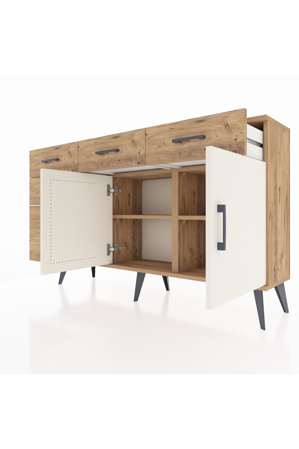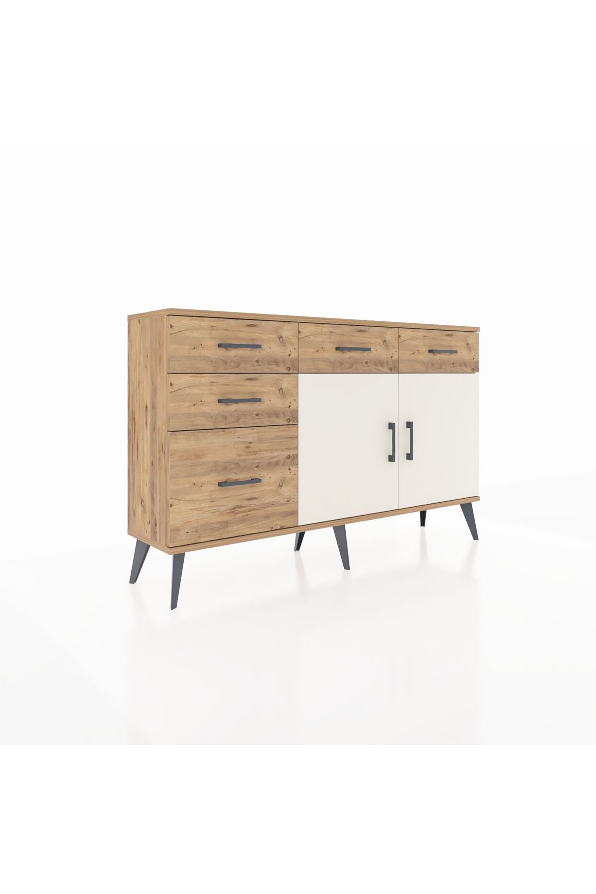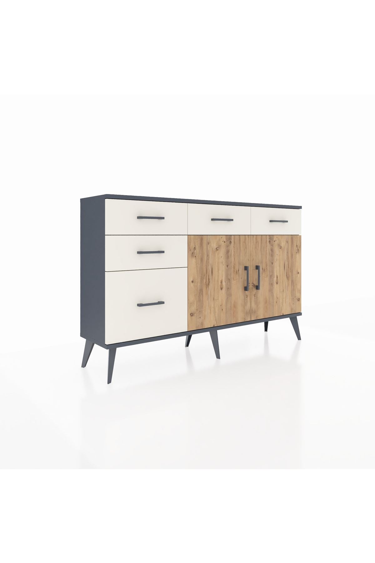 📌 Arges Konsol 2 Raflı 5 Çekmeceli 2 Kapaklı 132x30x83