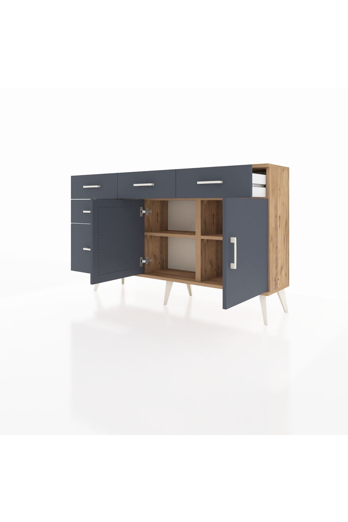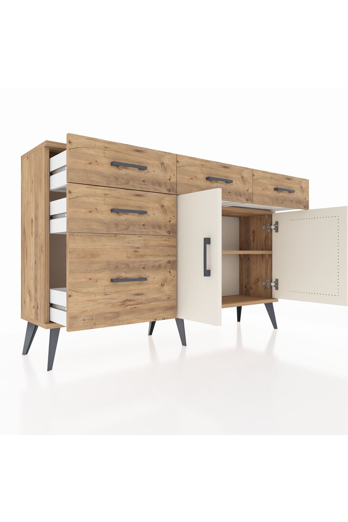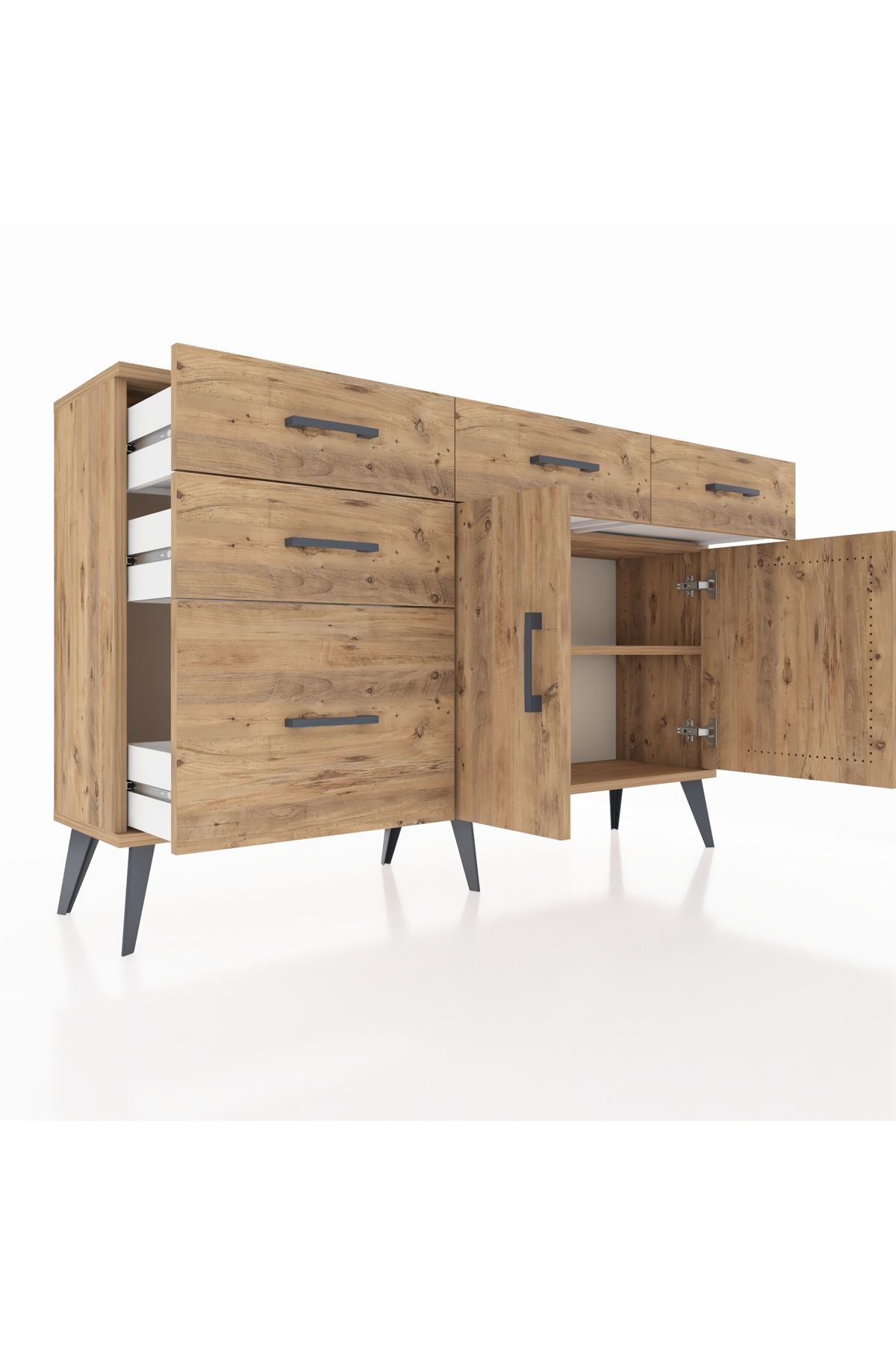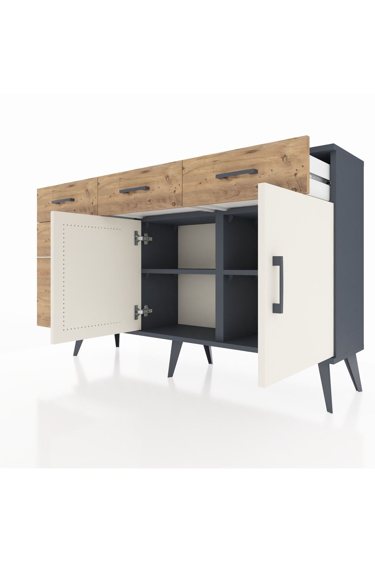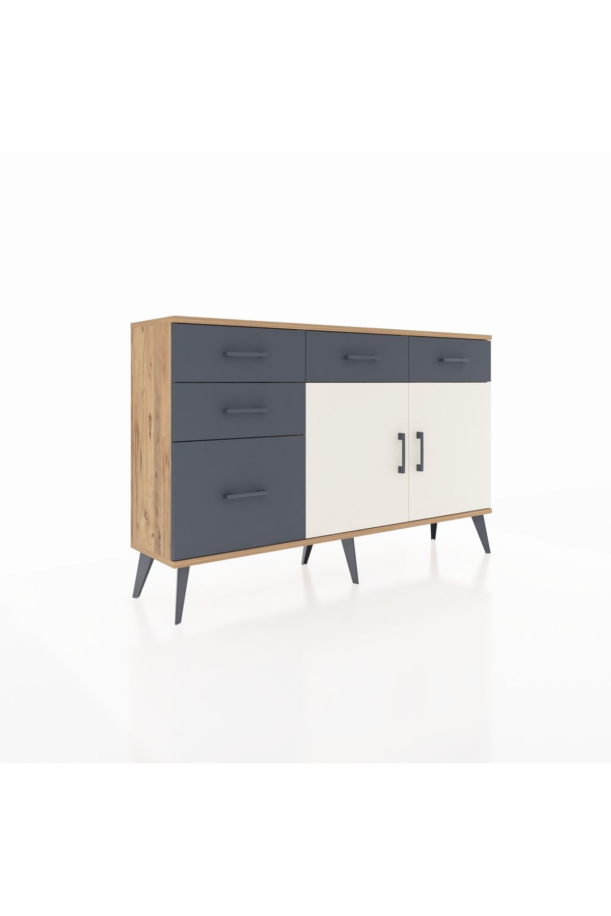 📌 Arges Konsol 2 Raflı 5 Çekmeceli 2 Kapaklı 132x30x83