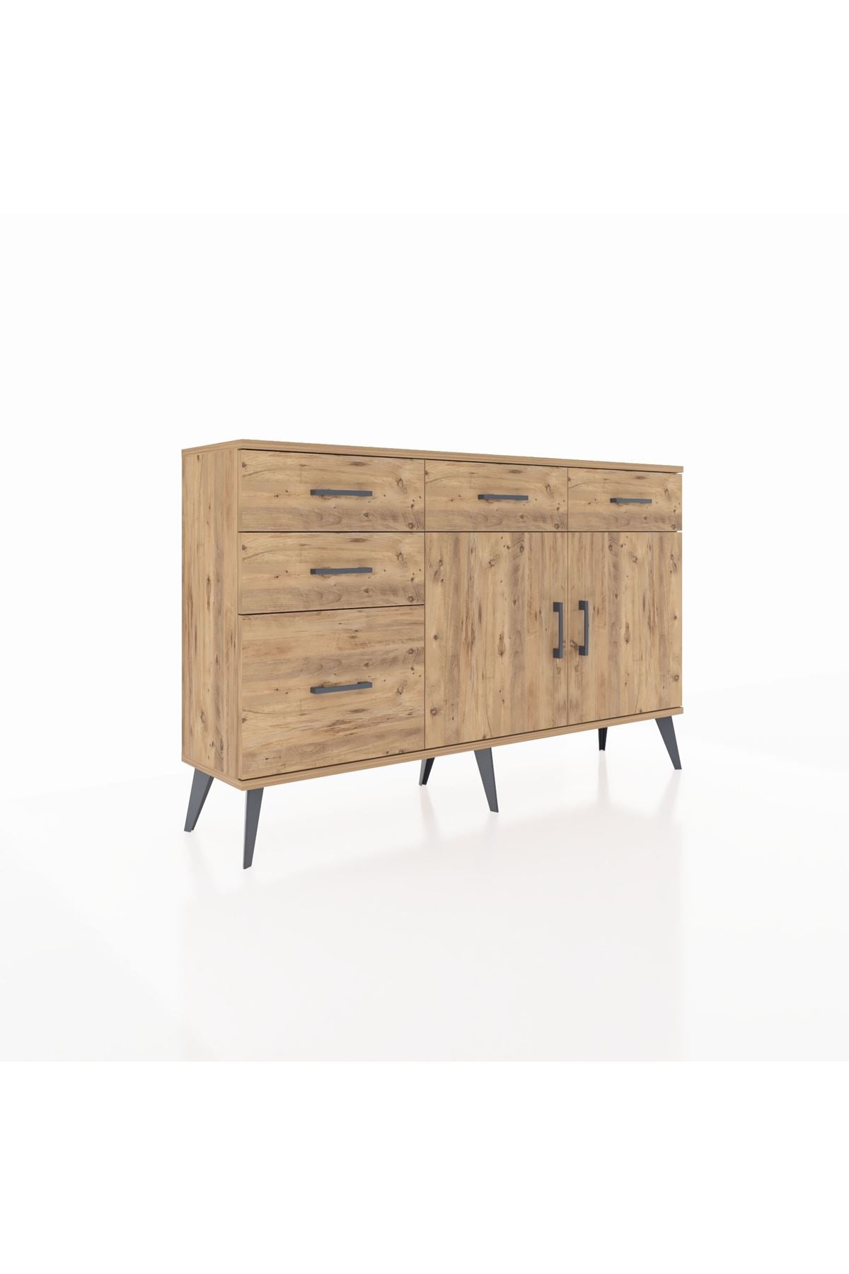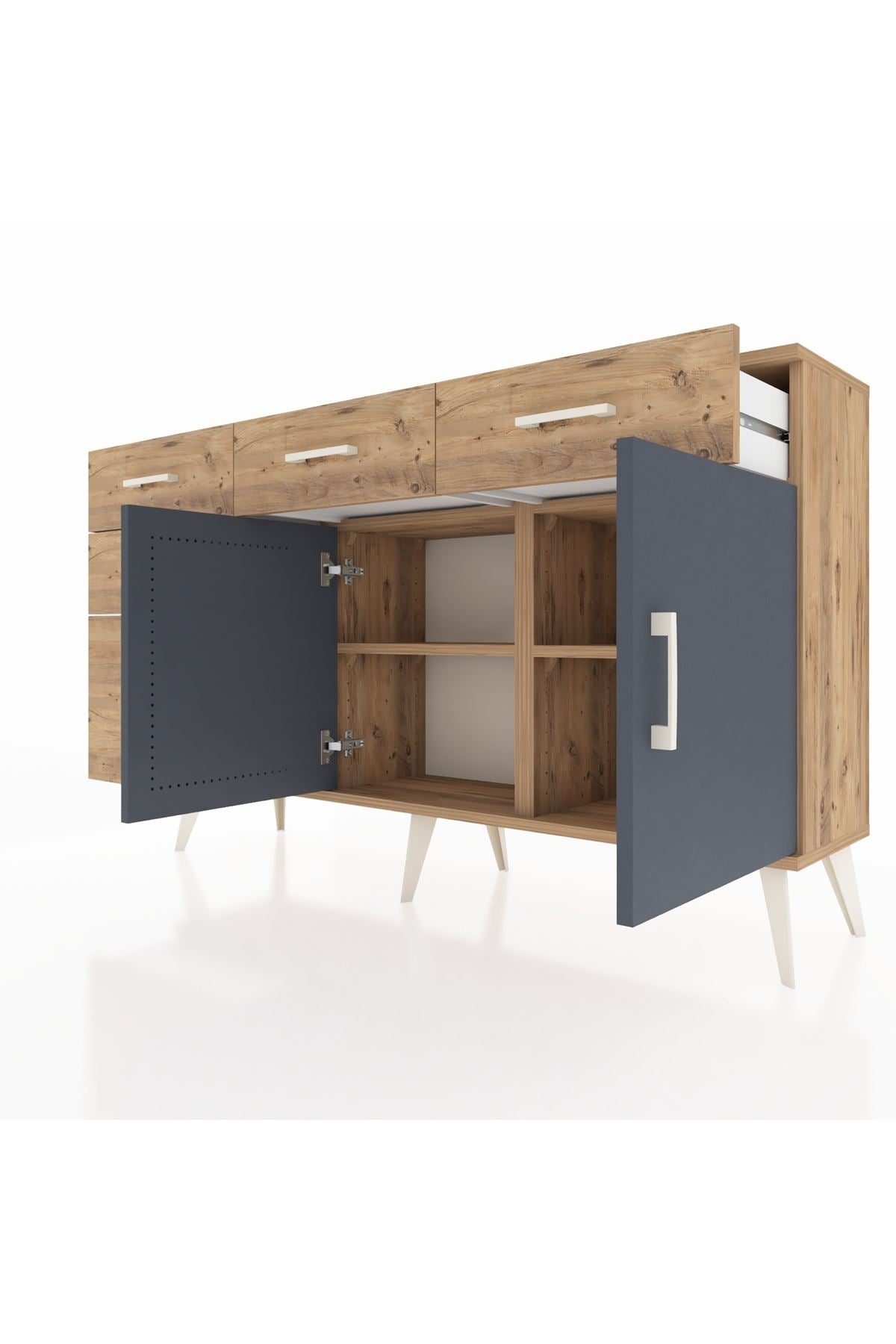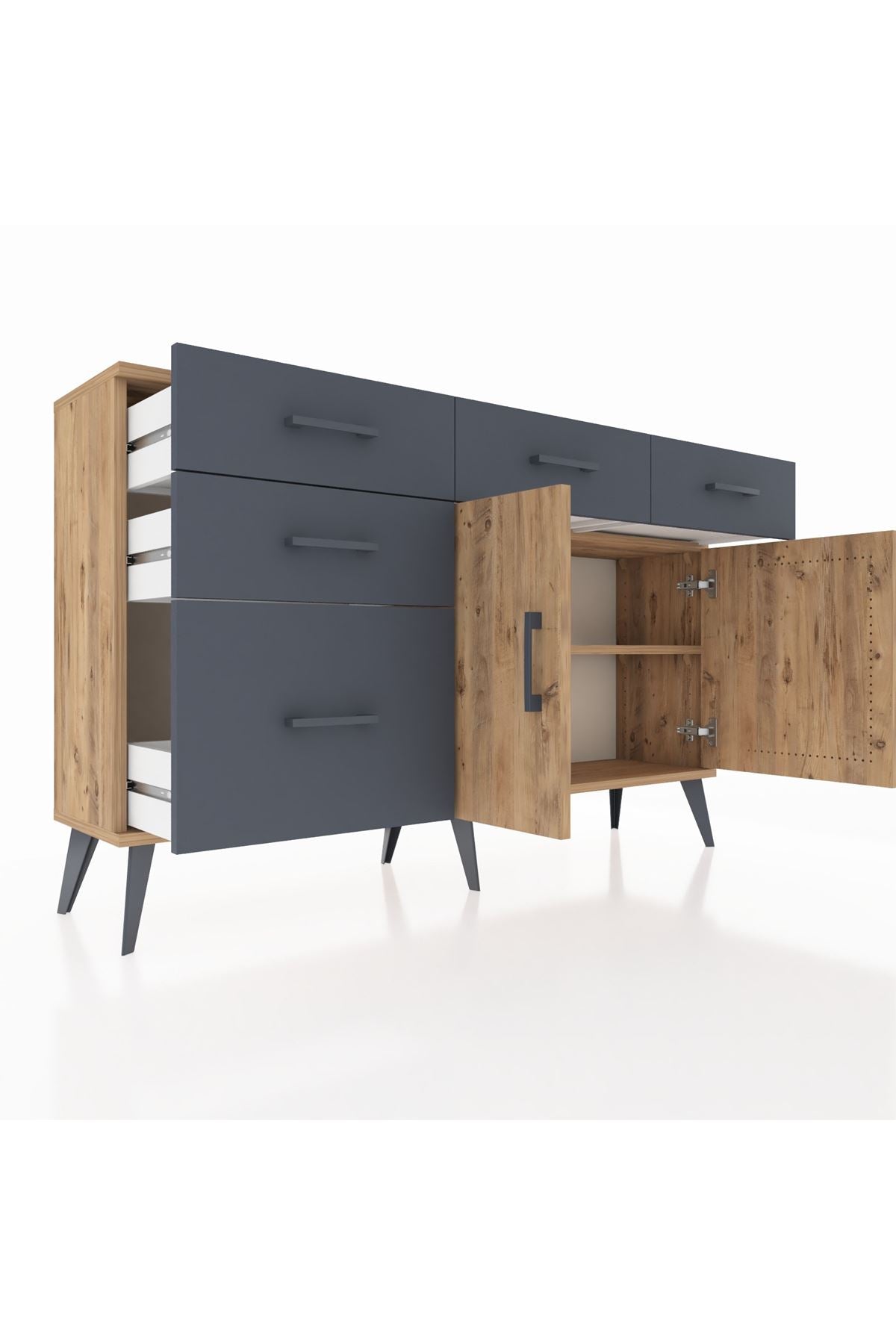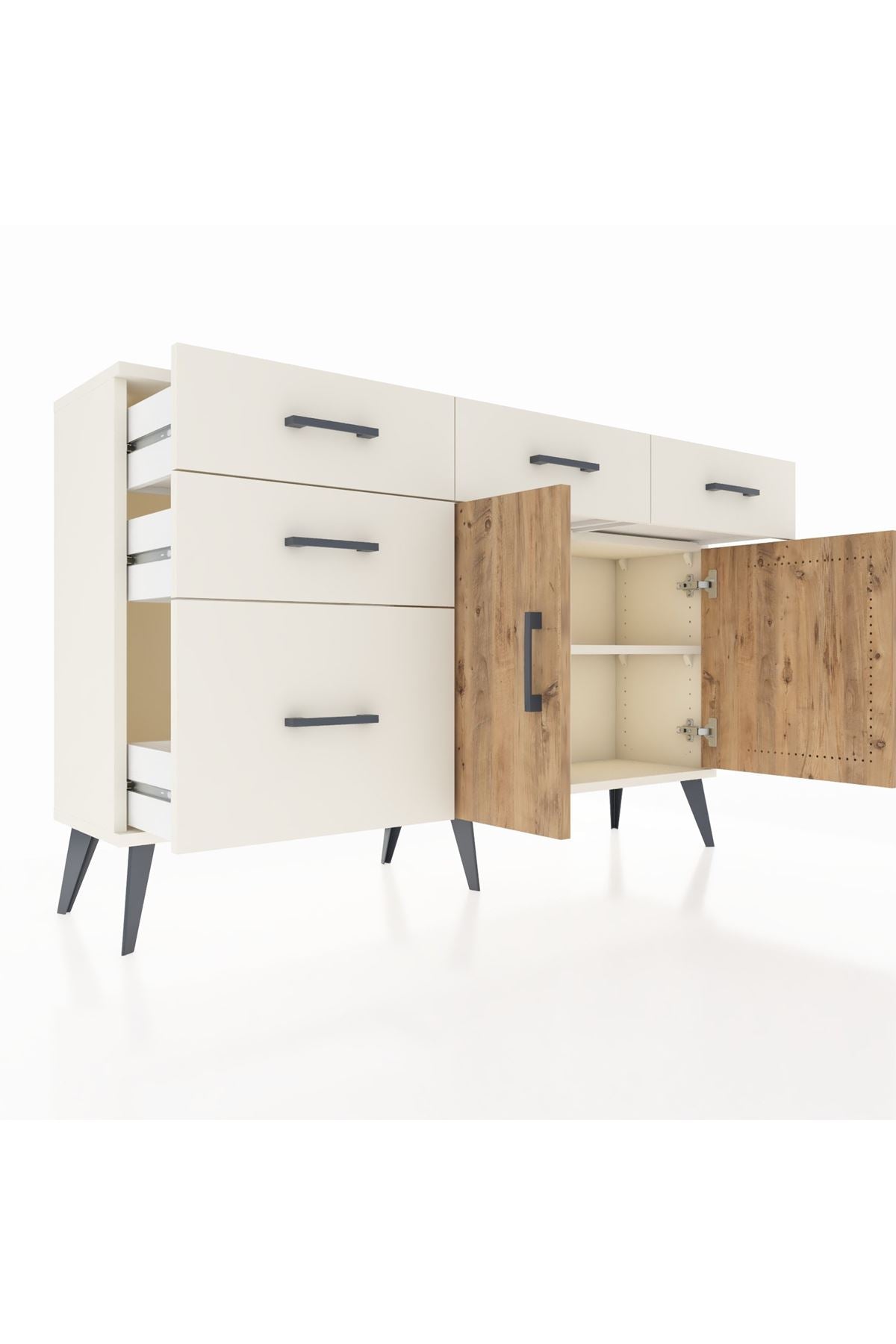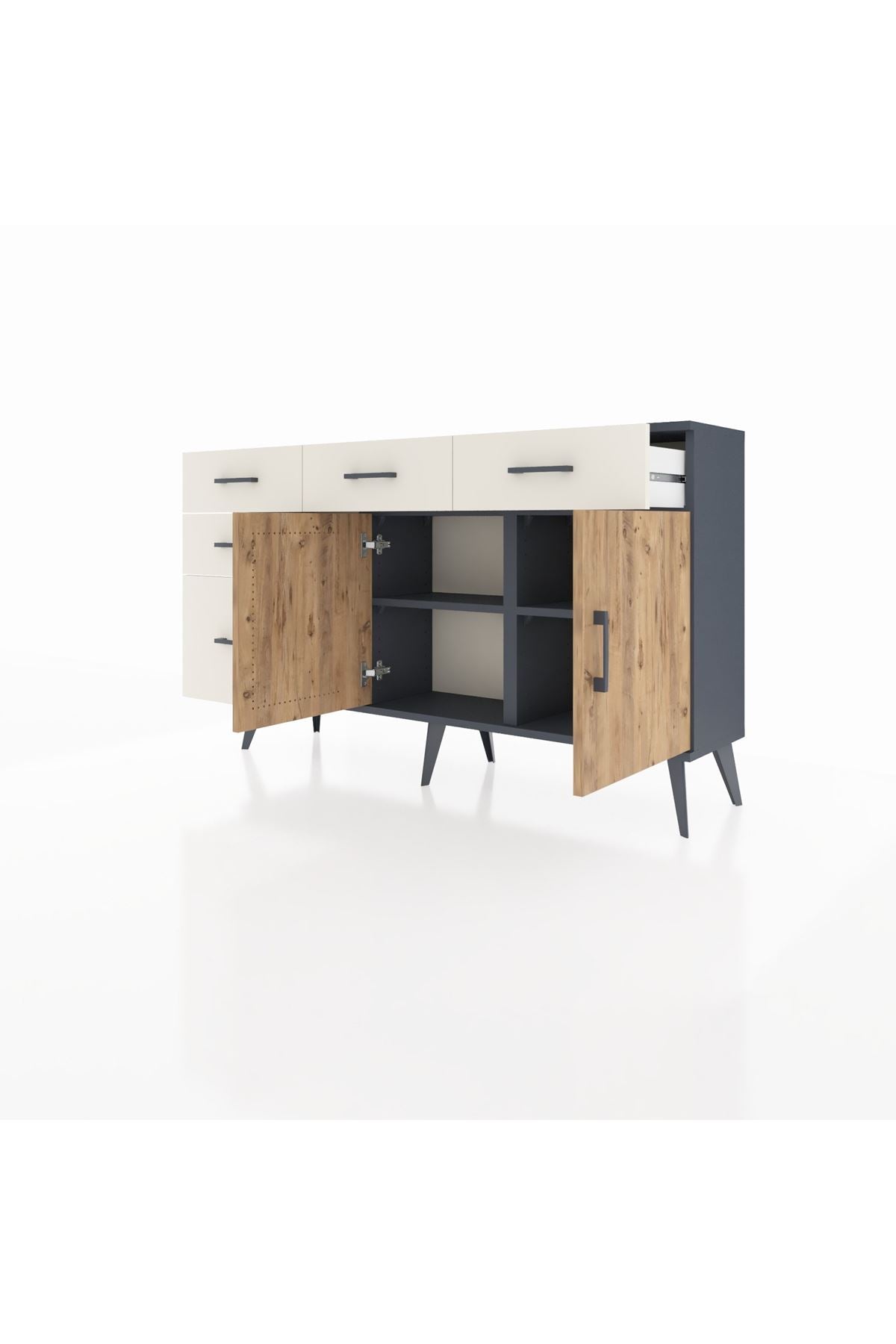 📌 Arges Konsol 2 Raflı 5 Çekmeceli 2 Kapaklı 132x30x83