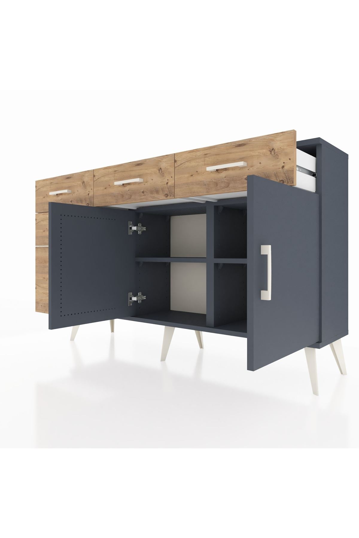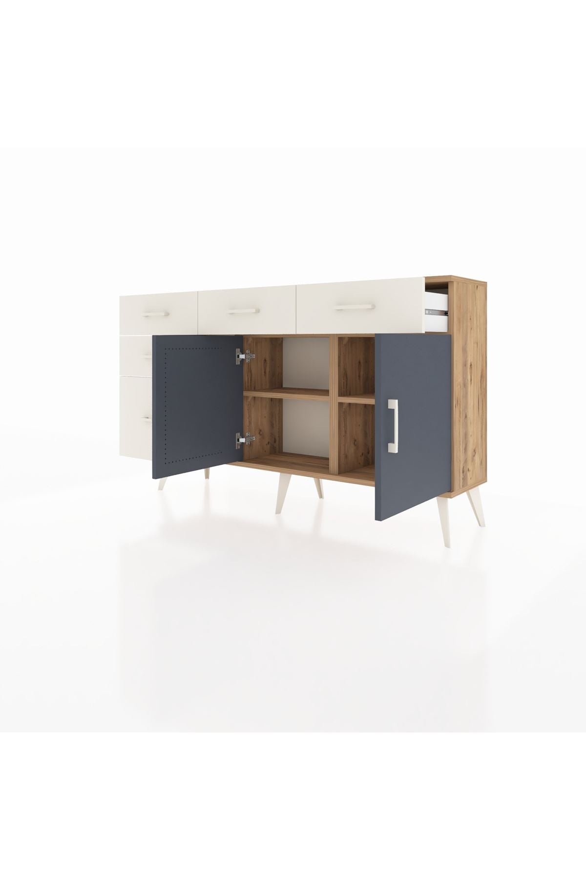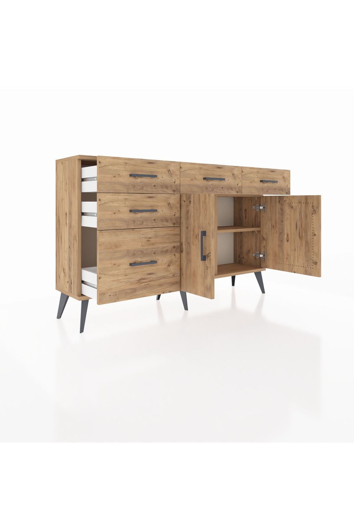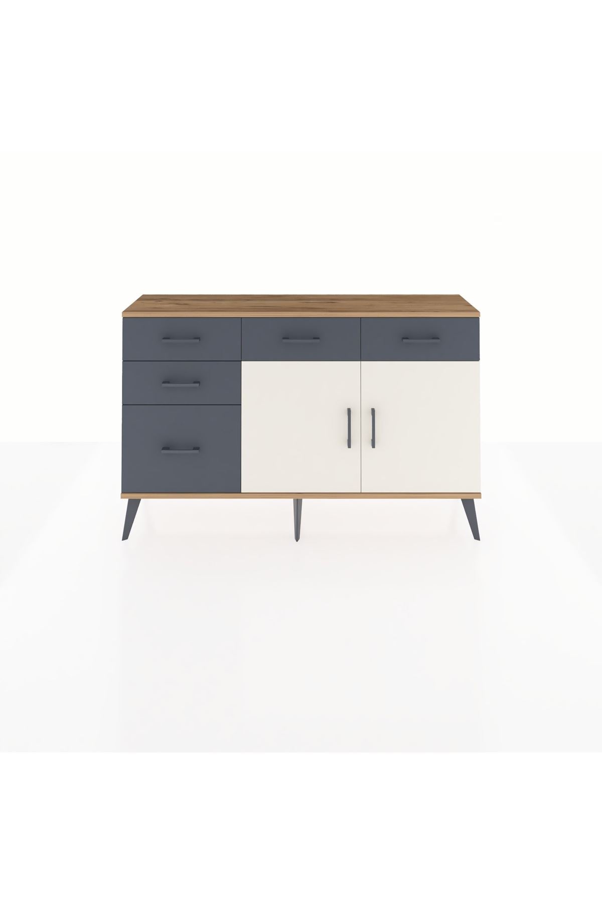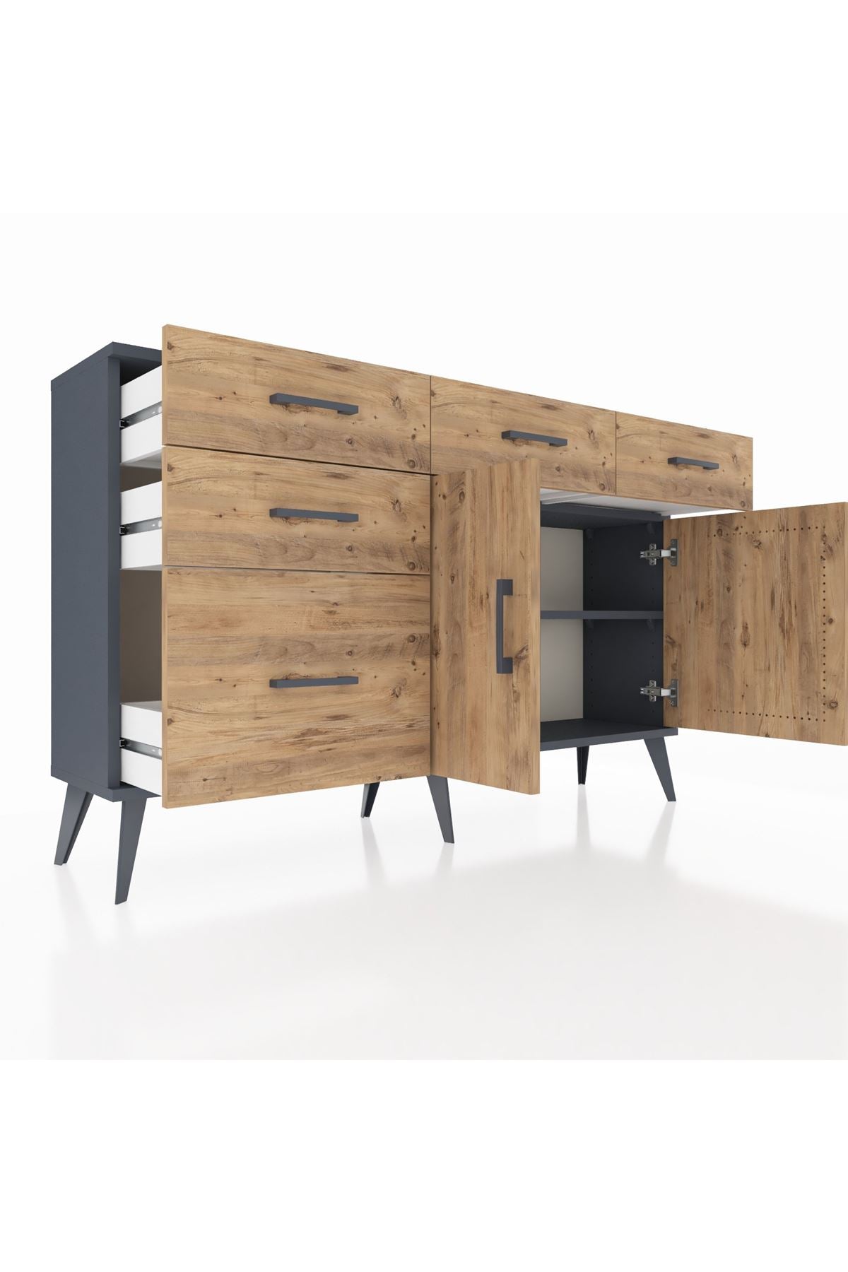 📌 Arges Konsol 2 Raflı 5 Çekmeceli 2 Kapaklı 132x30x83