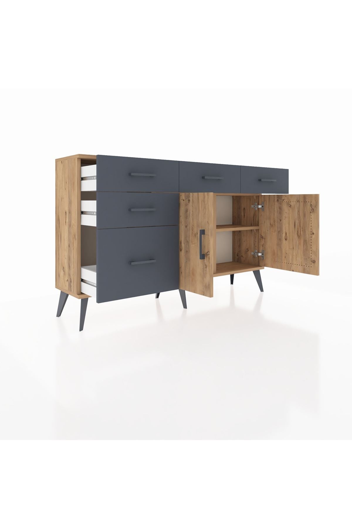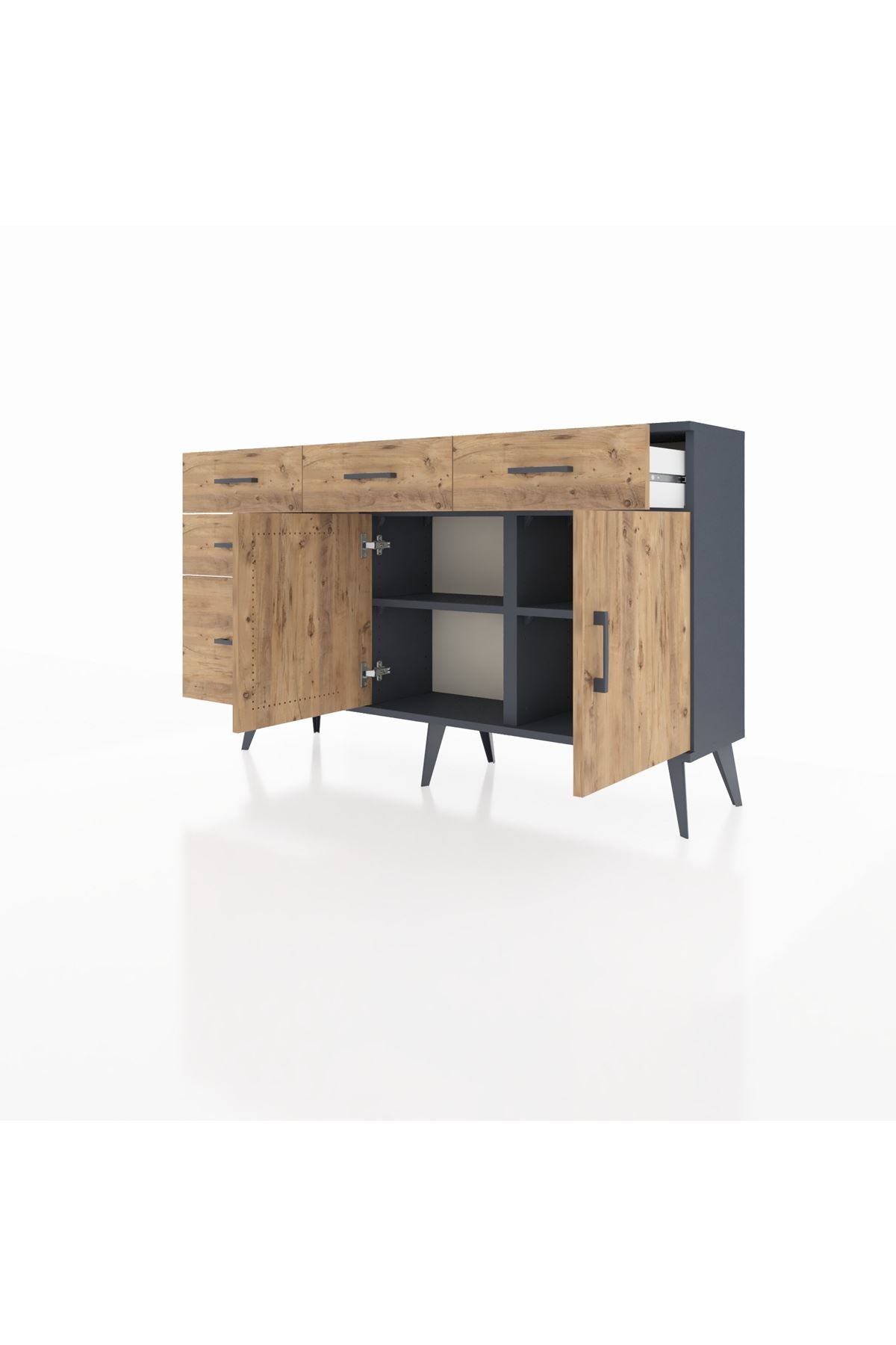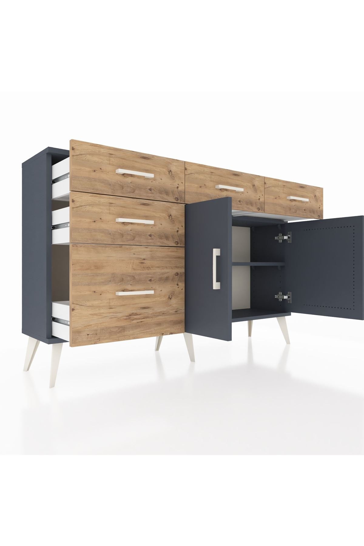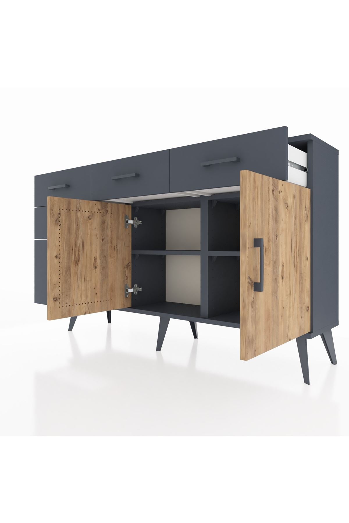 📌 Arges Konsol 2 Raflı 5 Çekmeceli 2 Kapaklı 132x30x83