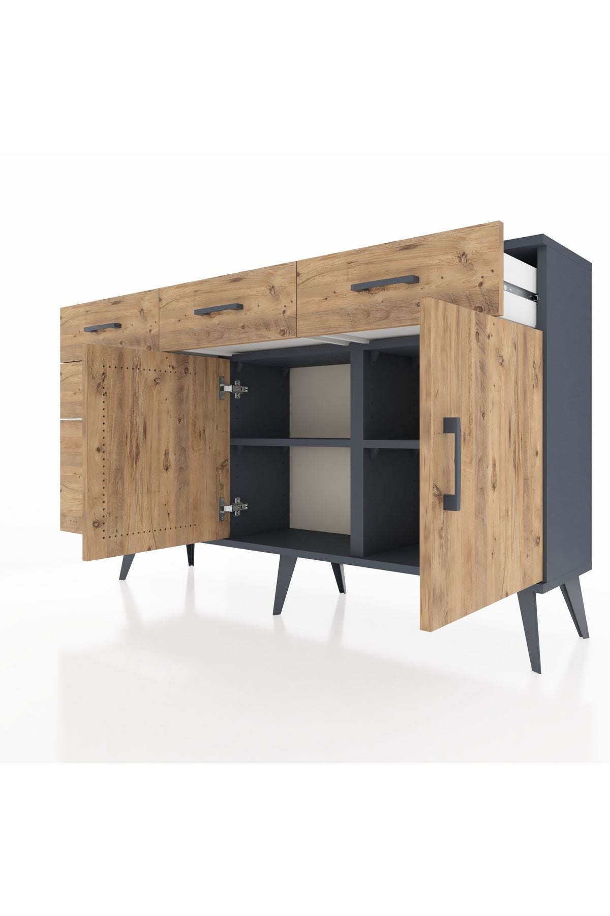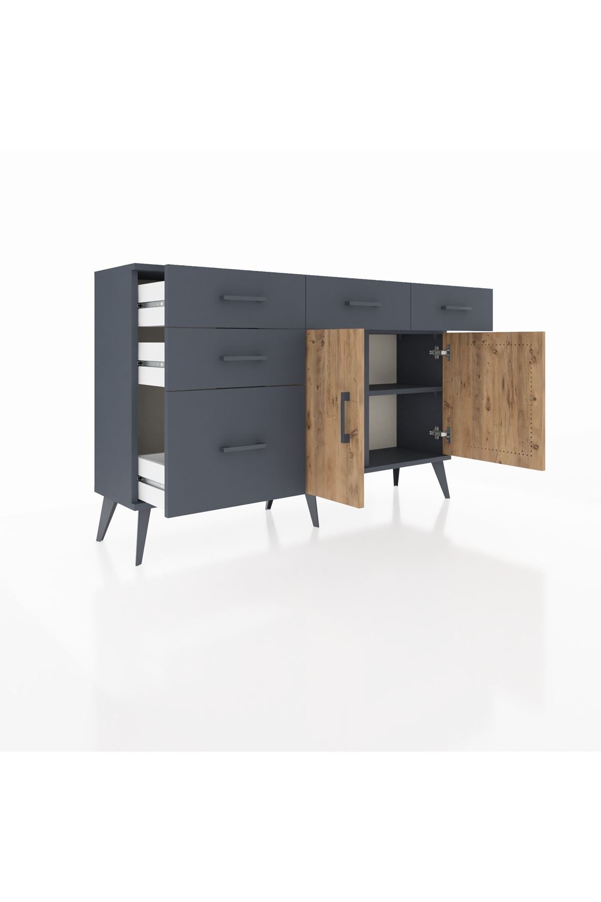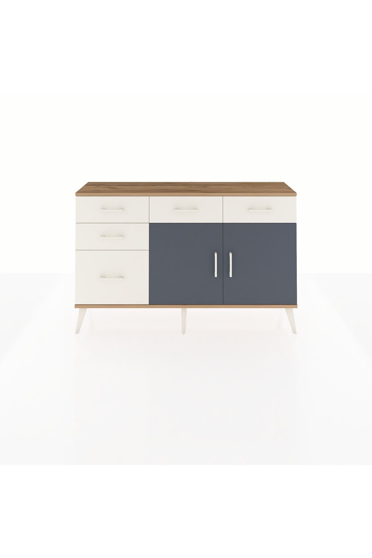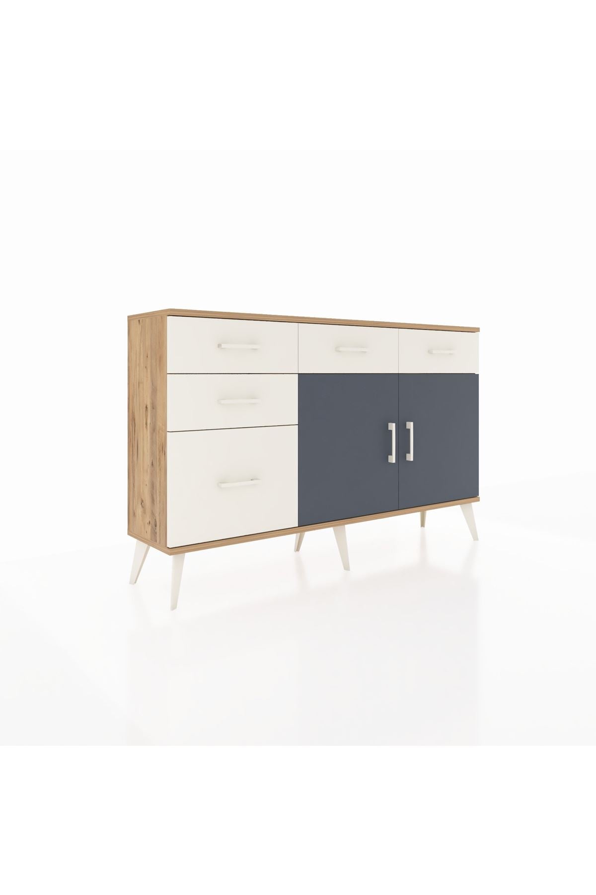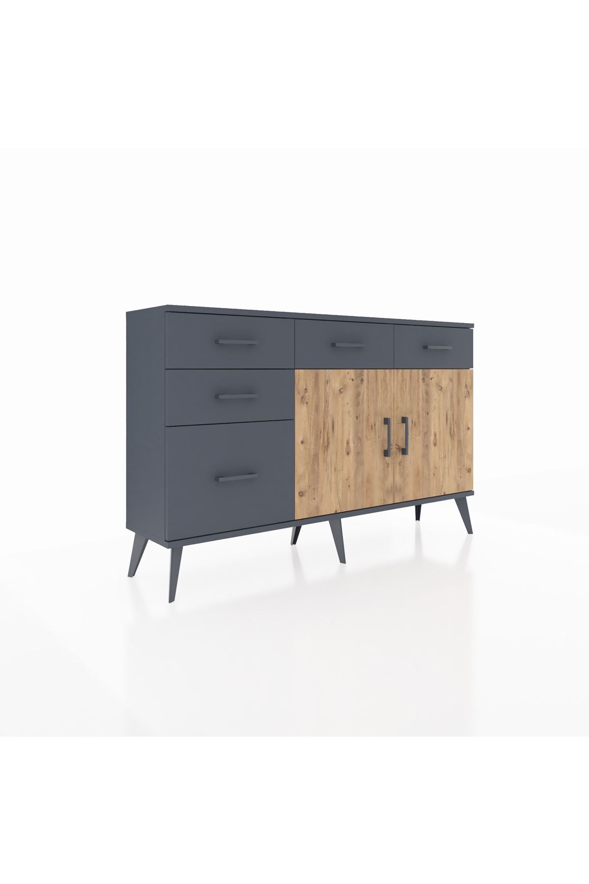 📌 Arges Konsol 2 Raflı 5 Çekmeceli 2 Kapaklı 132x30x83