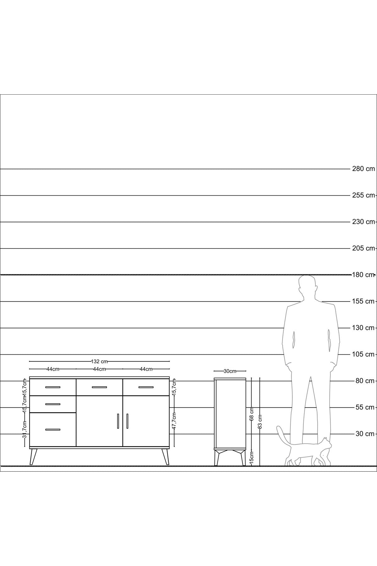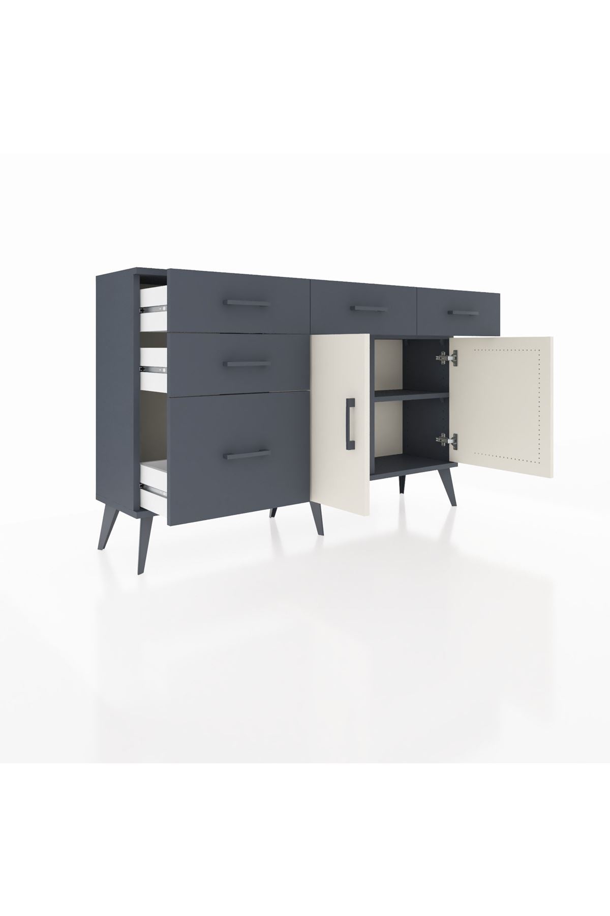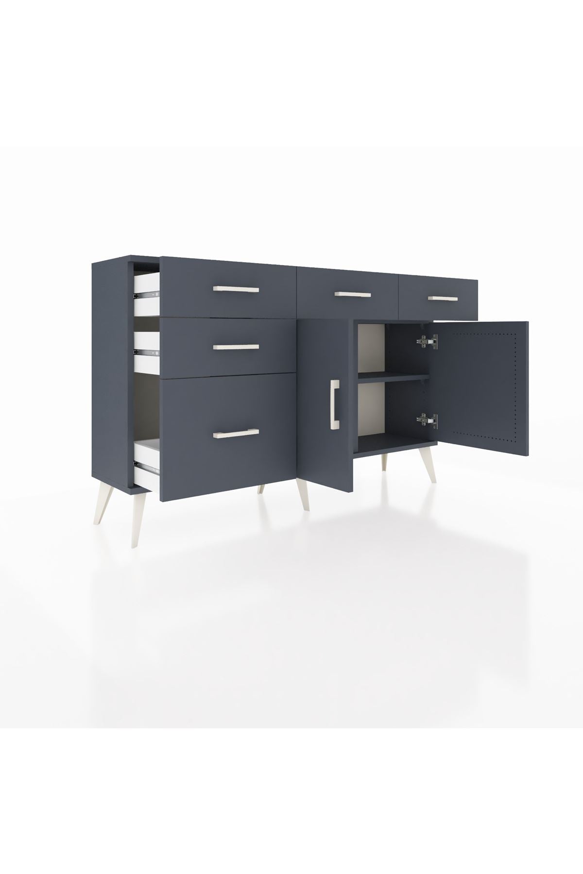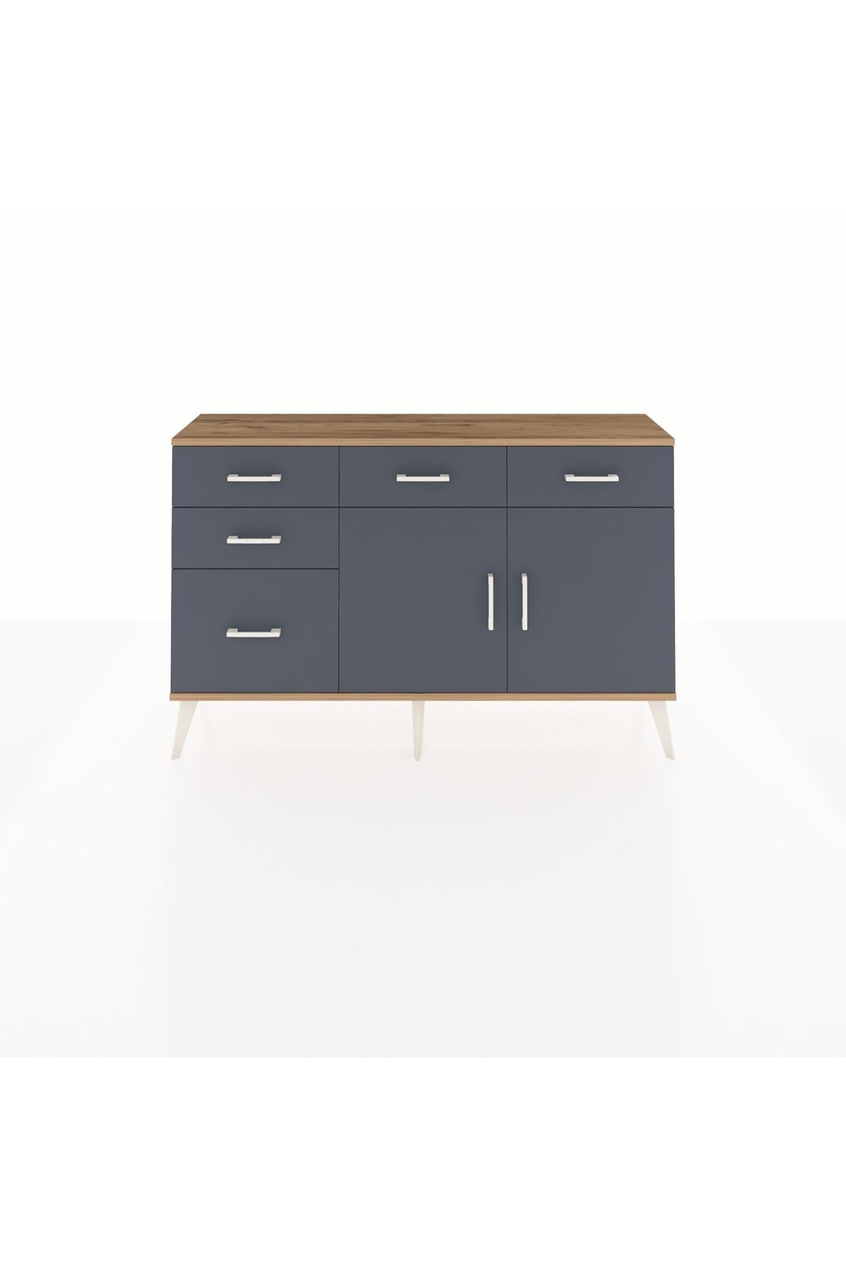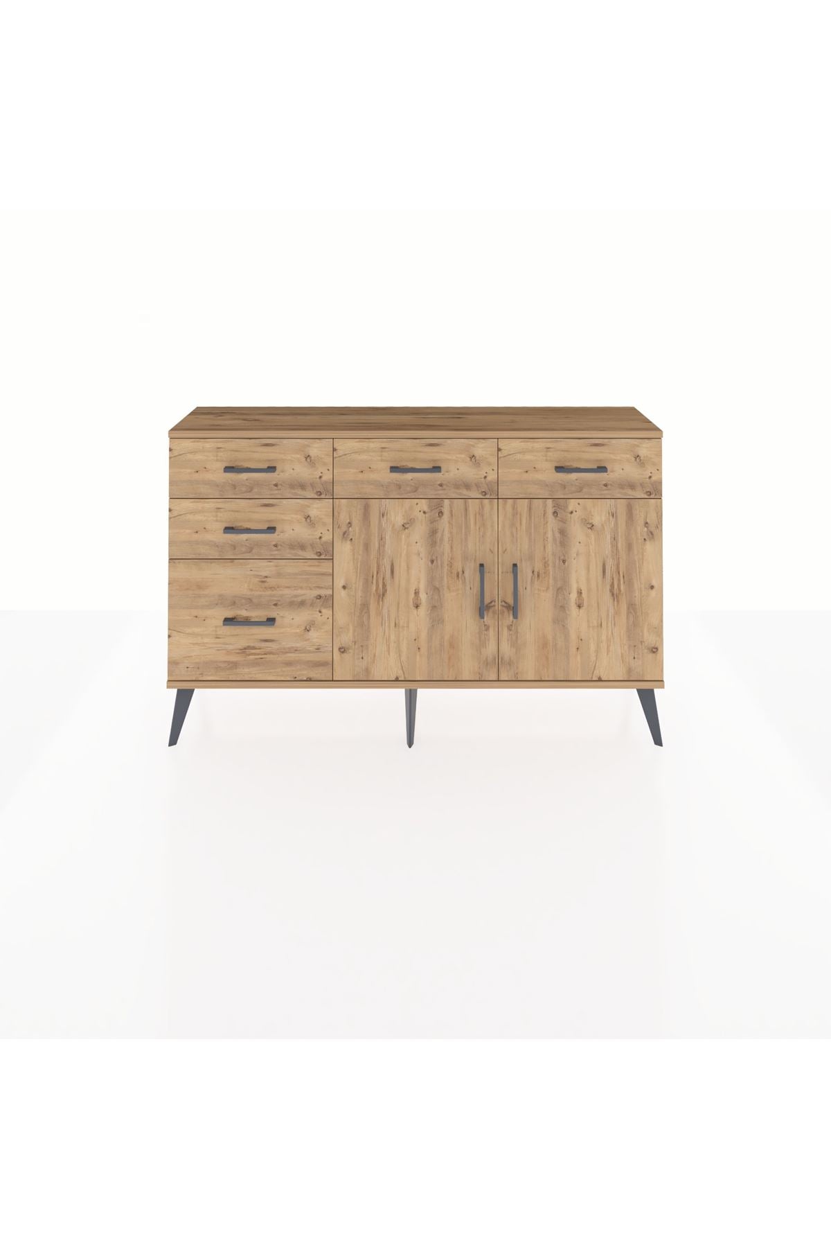 📌 Arges Konsol 2 Raflı 5 Çekmeceli 2 Kapaklı 132x30x83