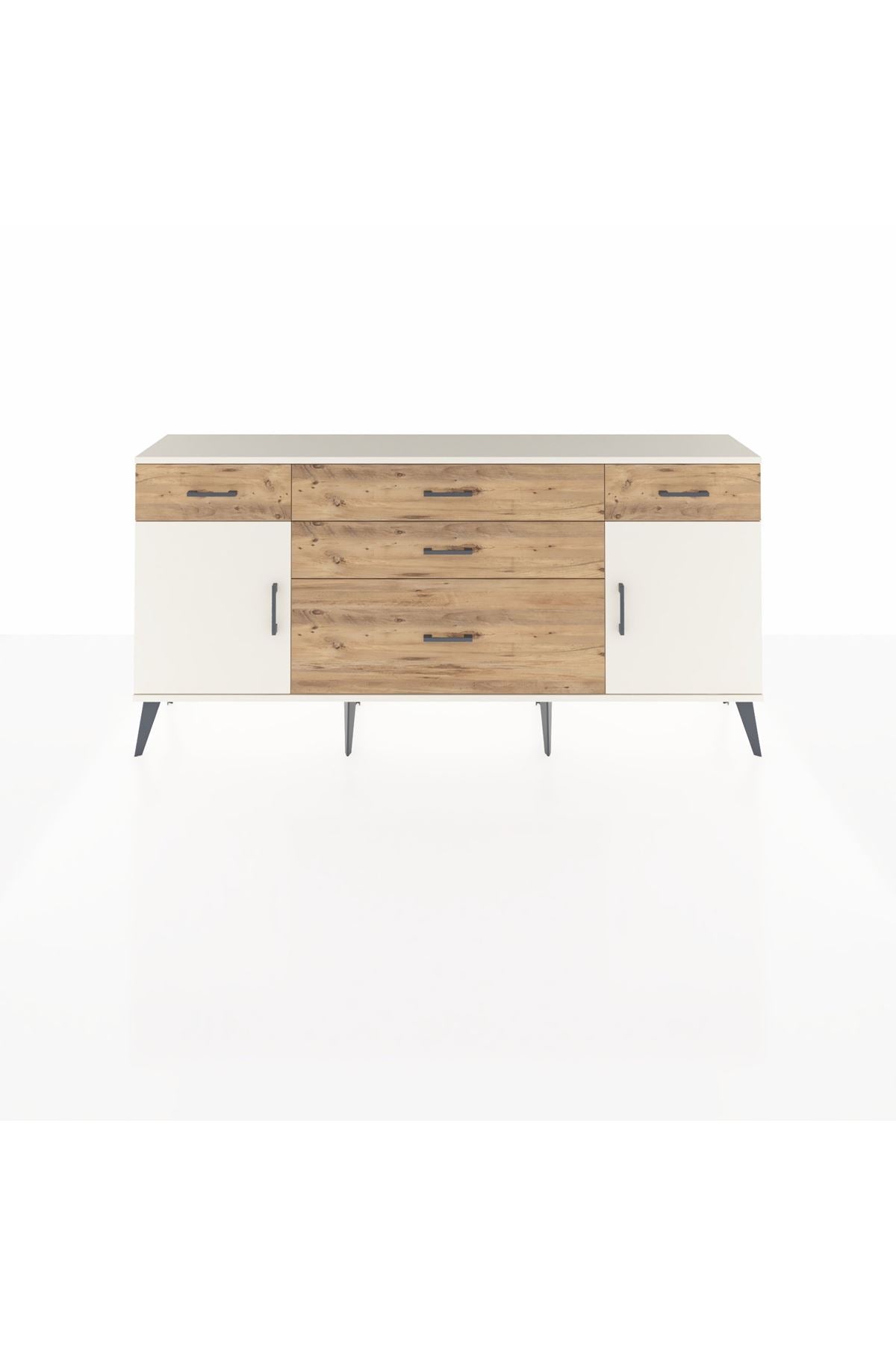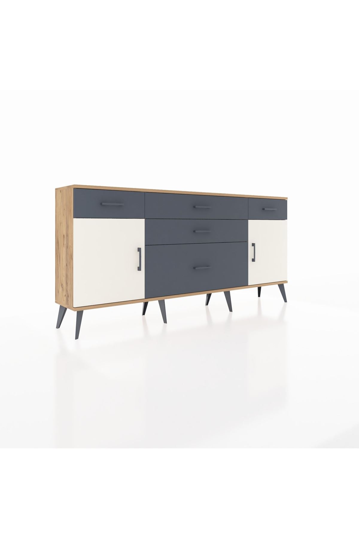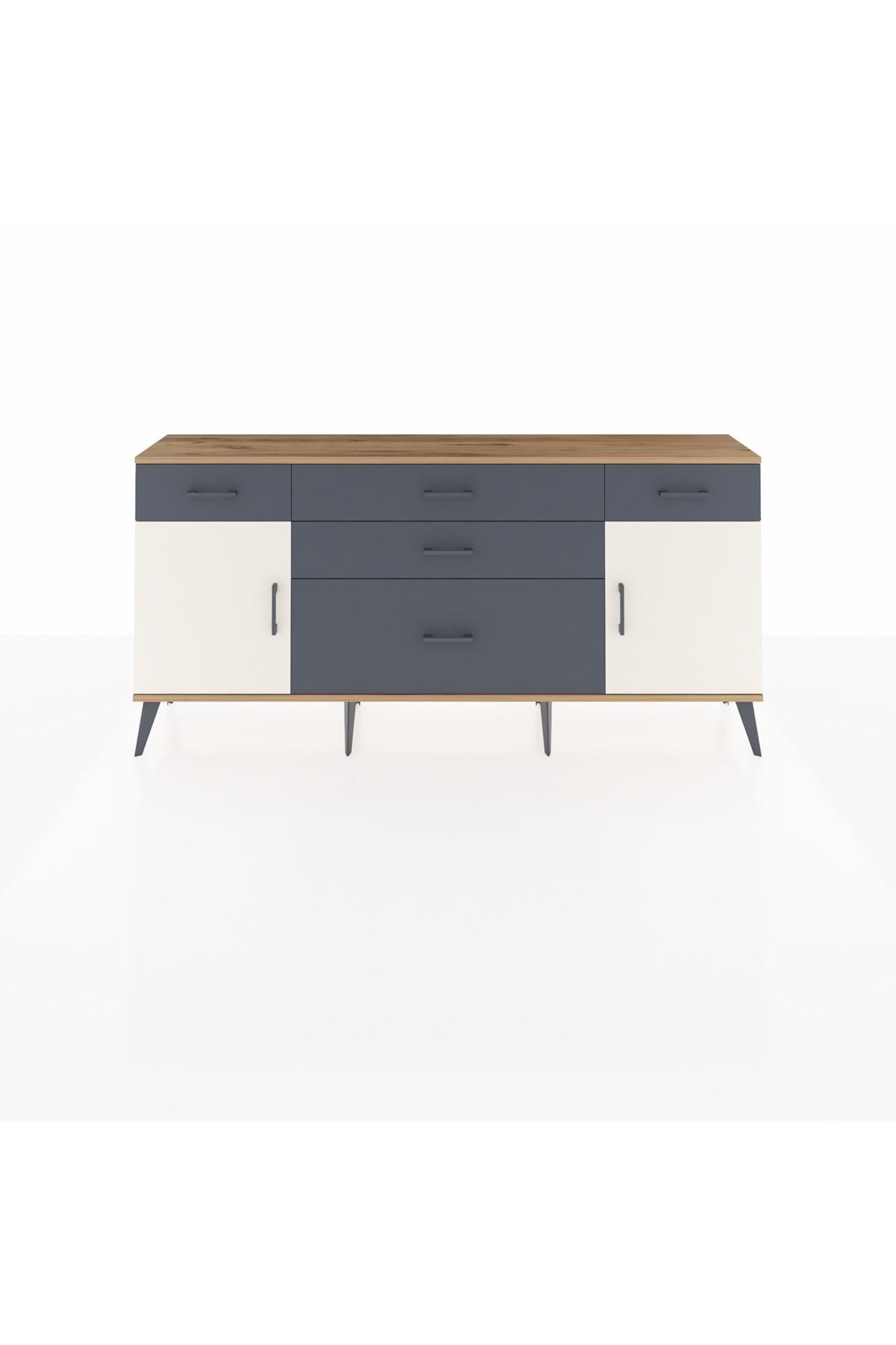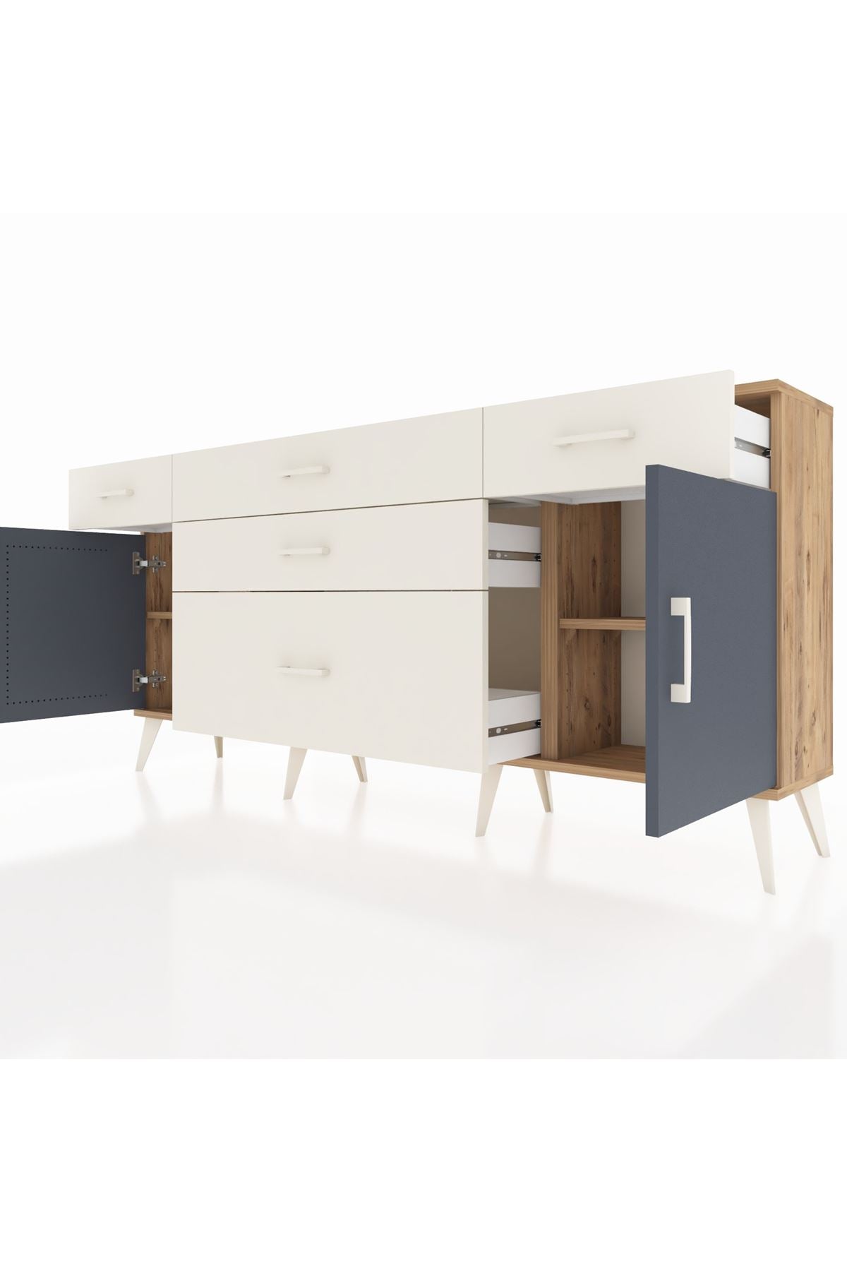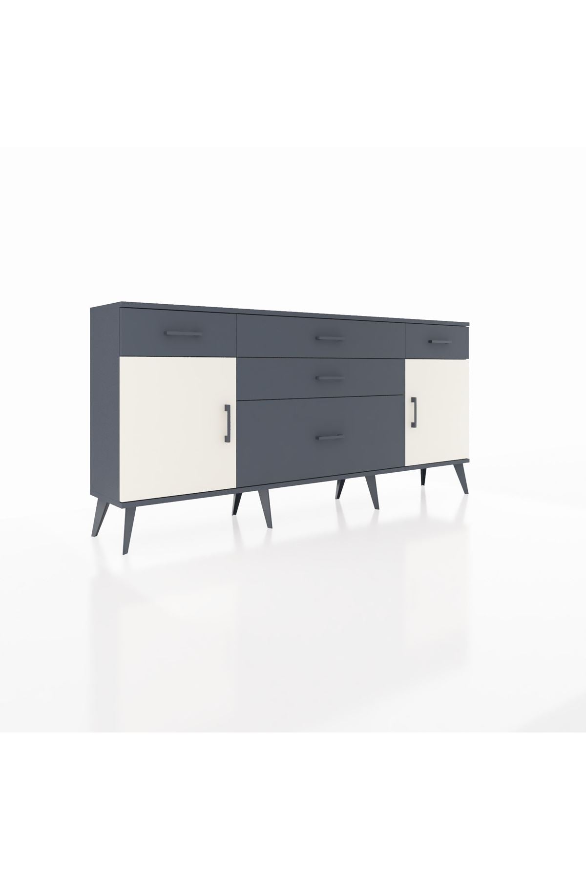 📌 Arges Konsol 2 Raflı 5 Çekmeceli 2 Kapaklı 176x30x83