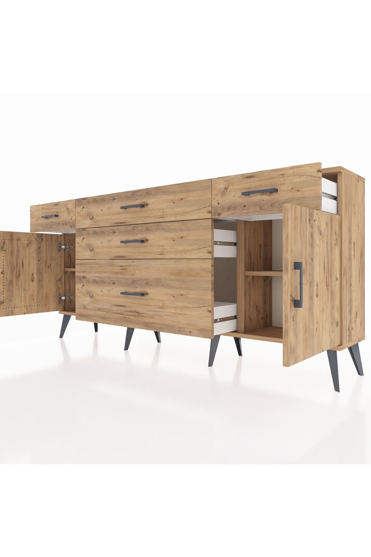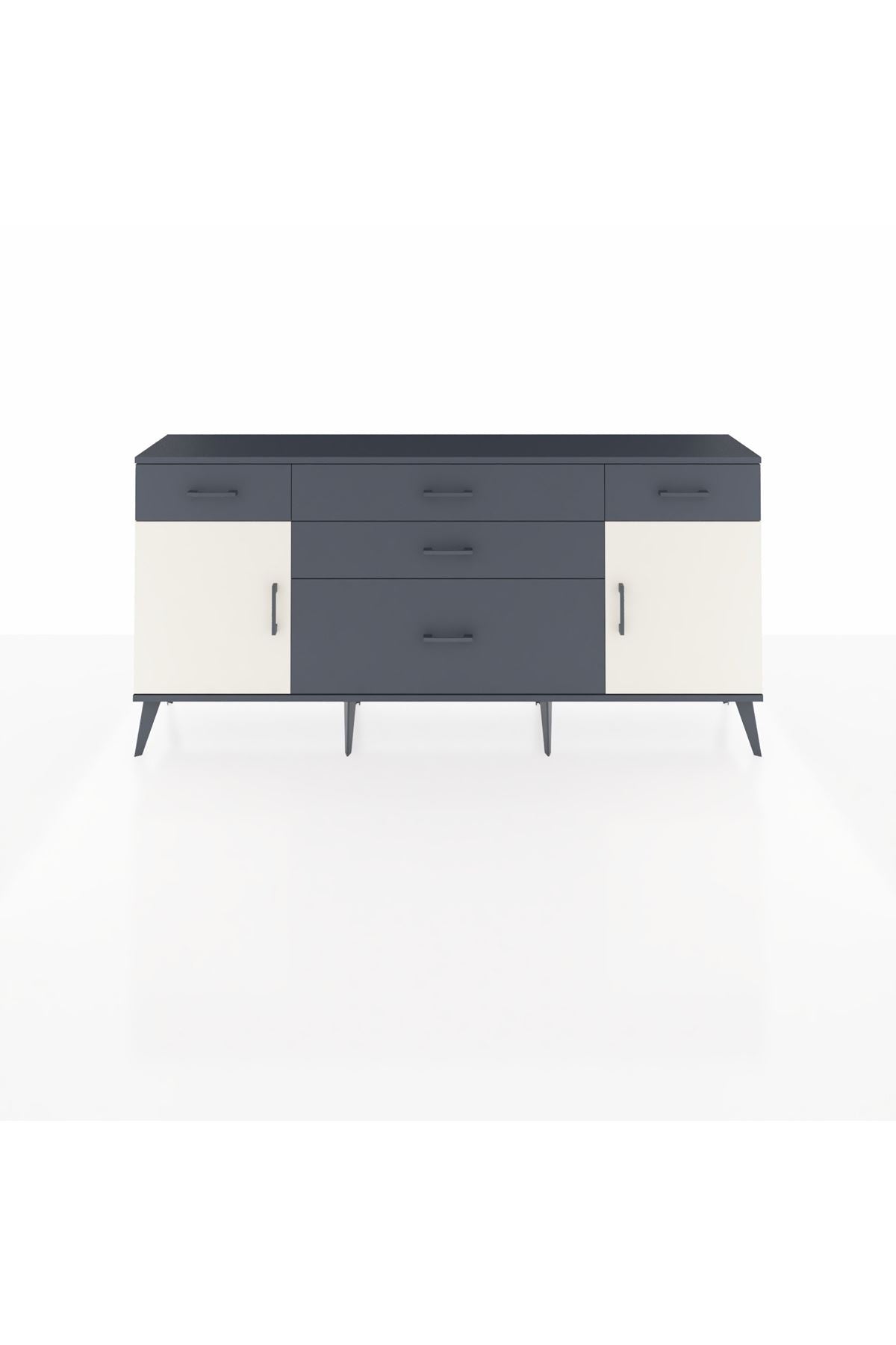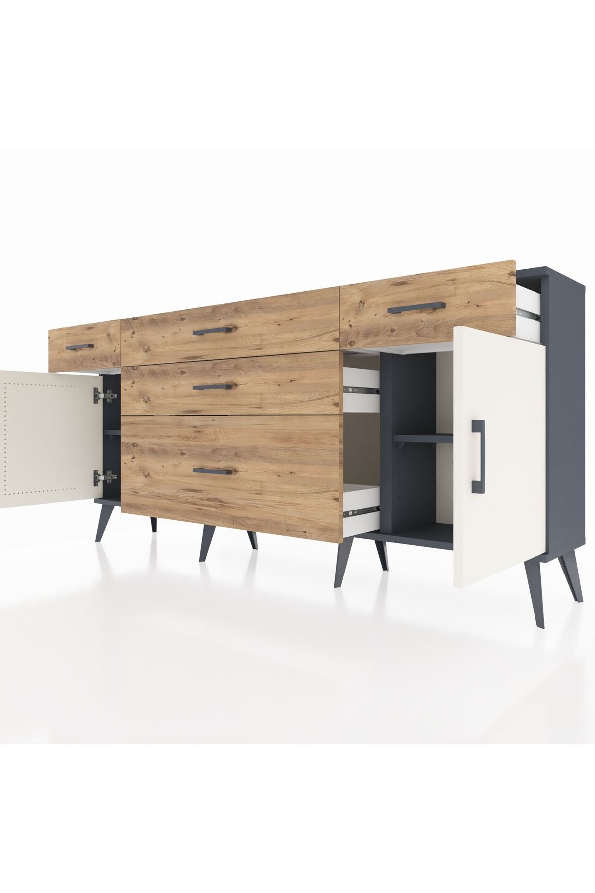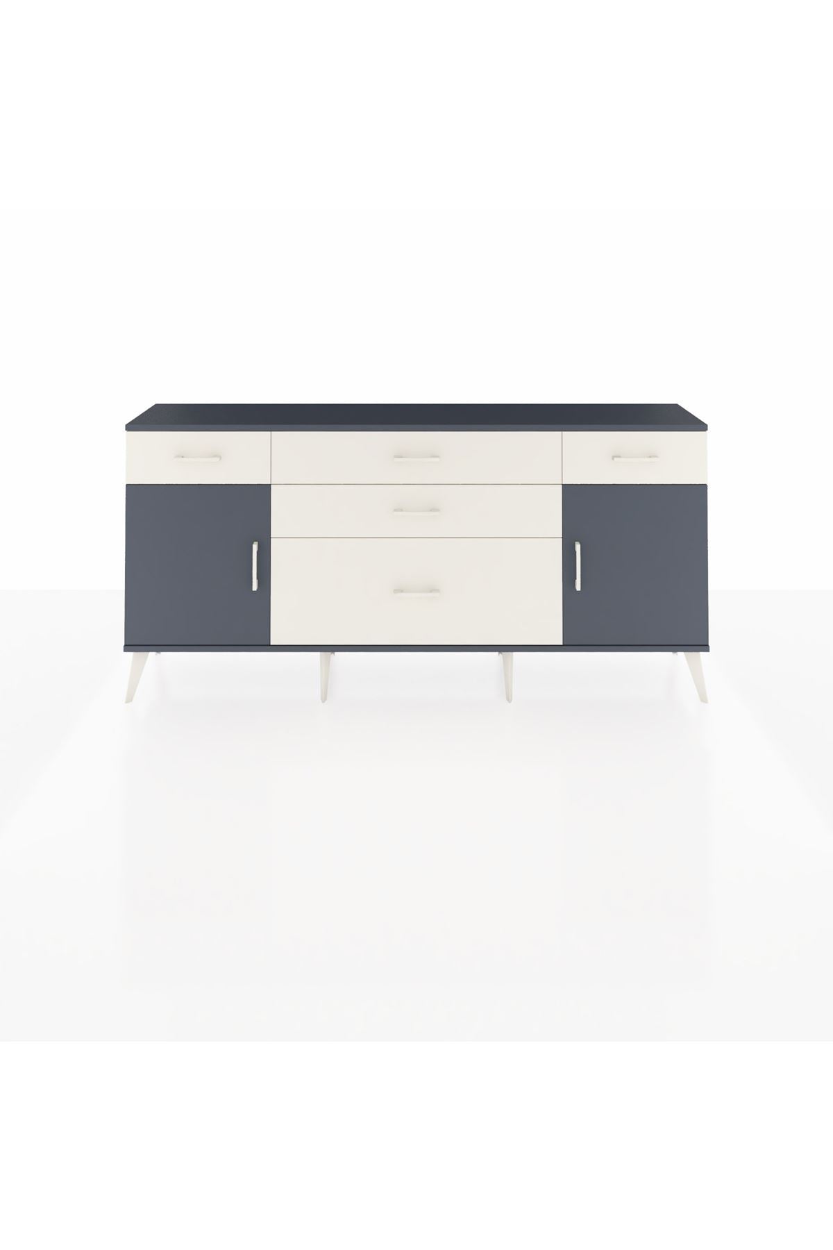 📌 Arges Konsol 2 Raflı 5 Çekmeceli 2 Kapaklı 176x30x83