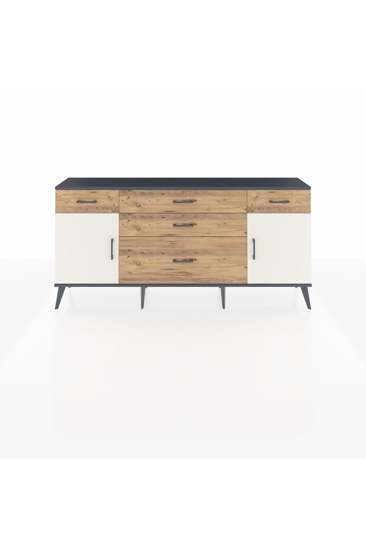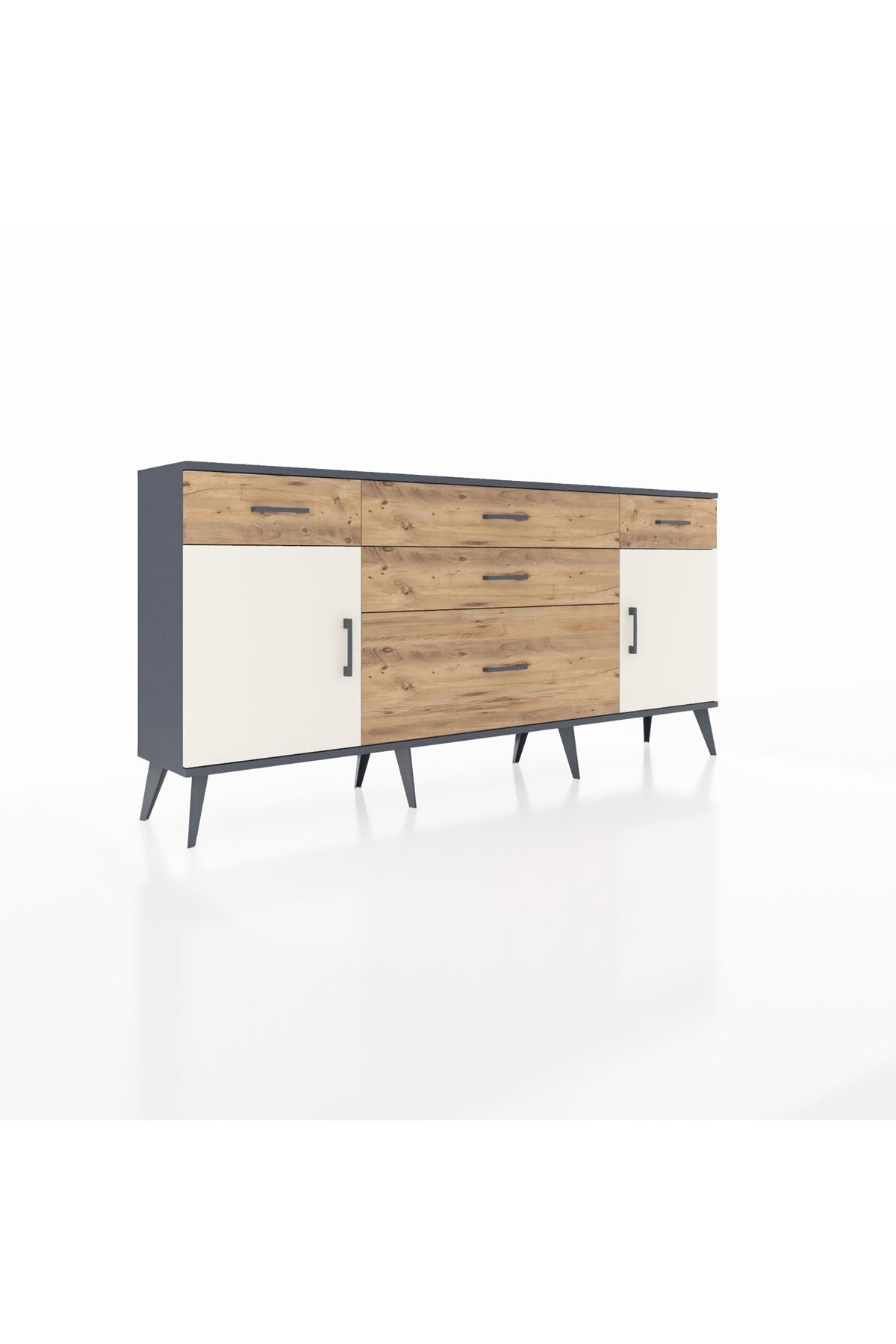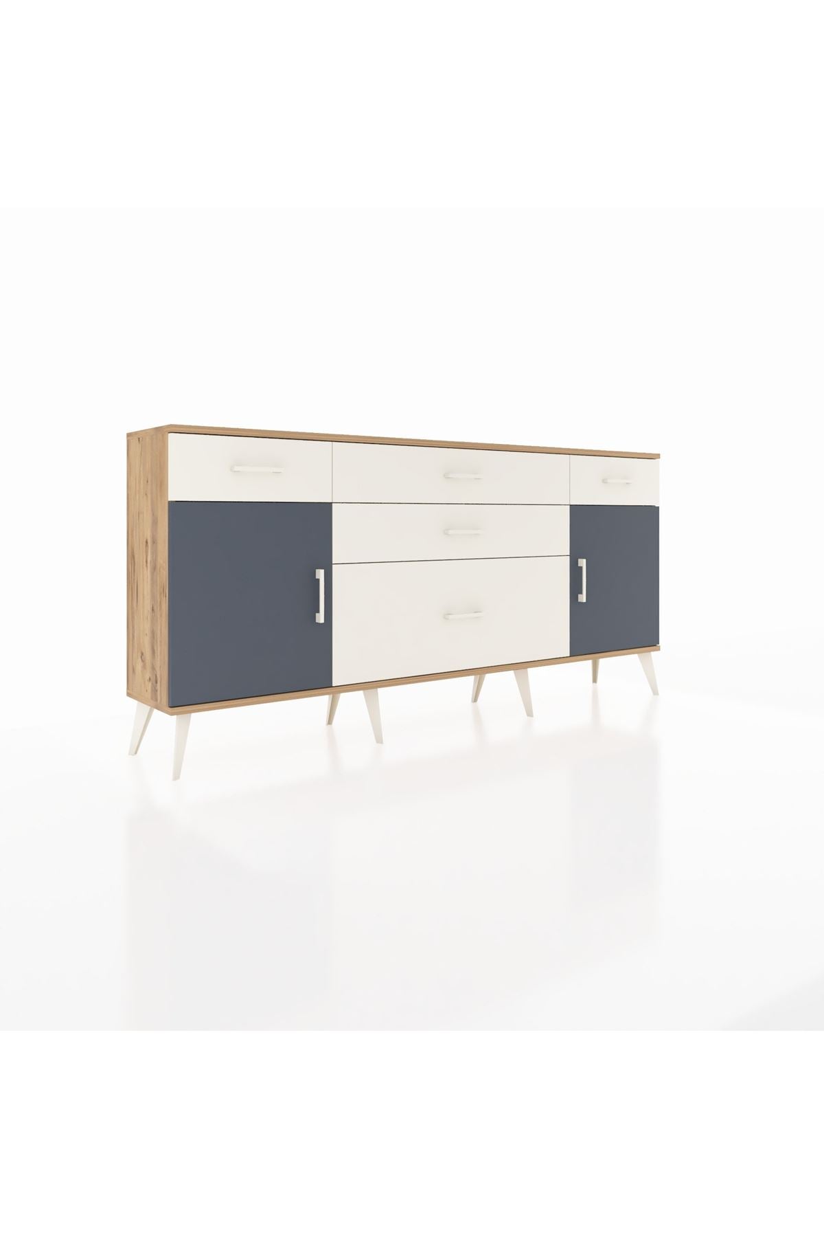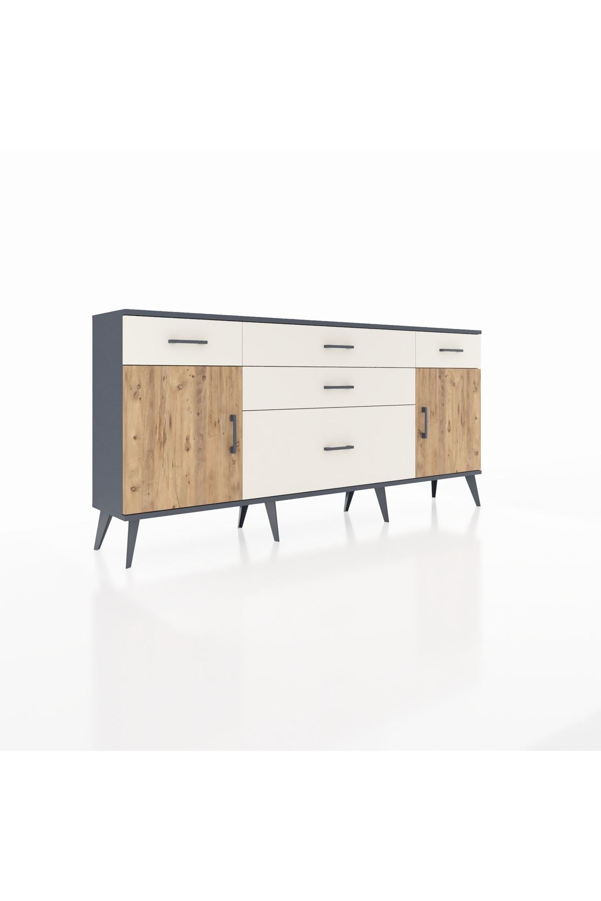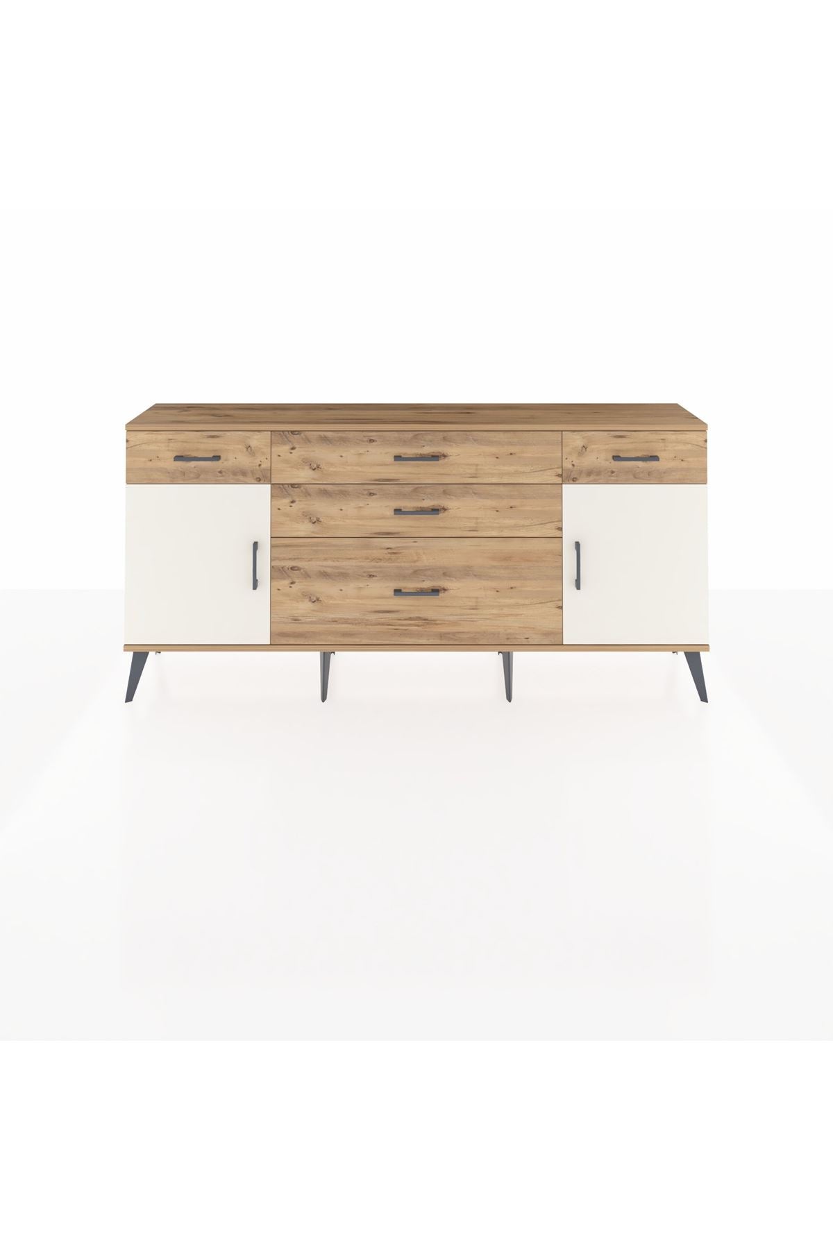 📌 Arges Konsol 2 Raflı 5 Çekmeceli 2 Kapaklı 176x30x83