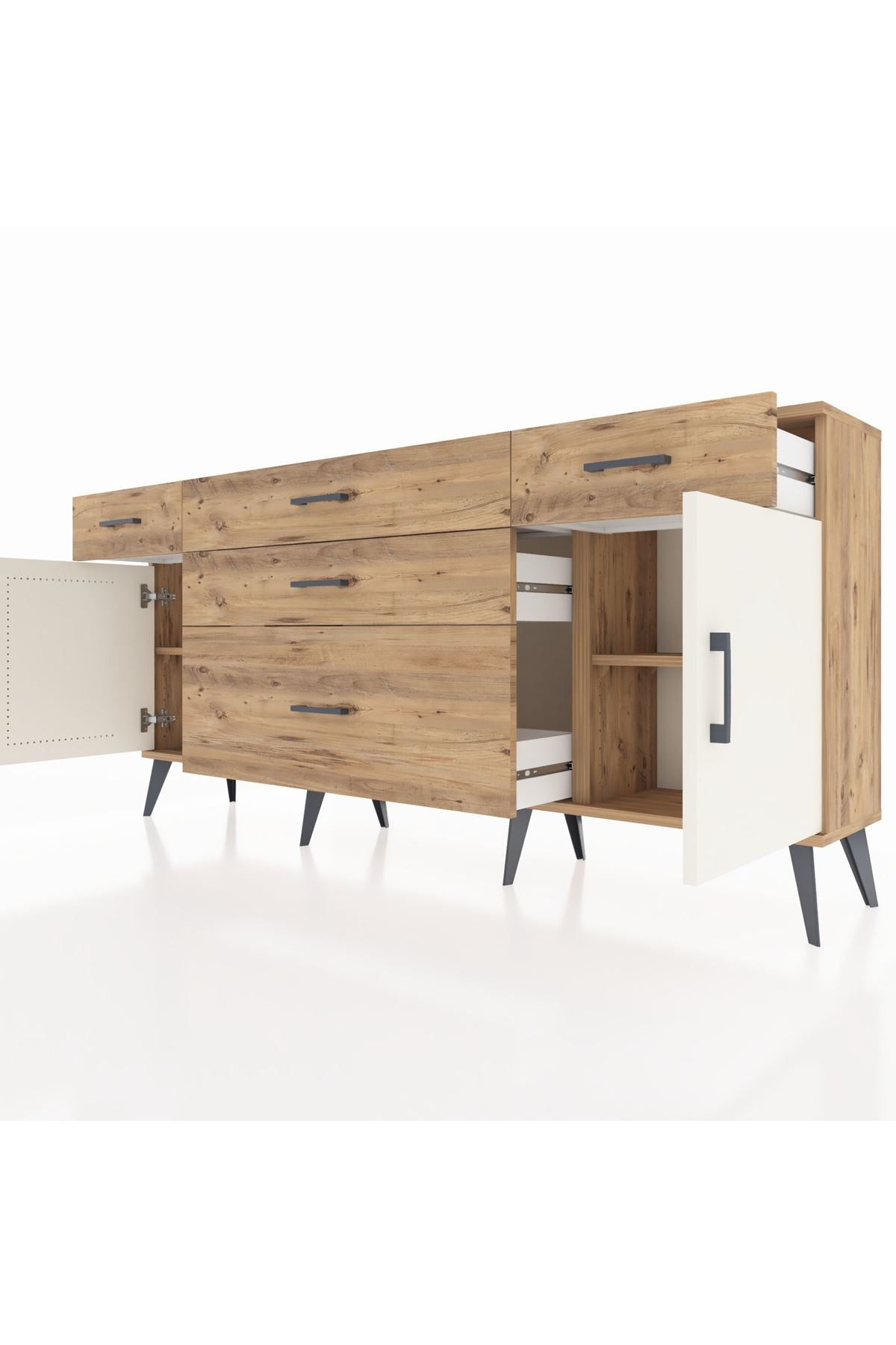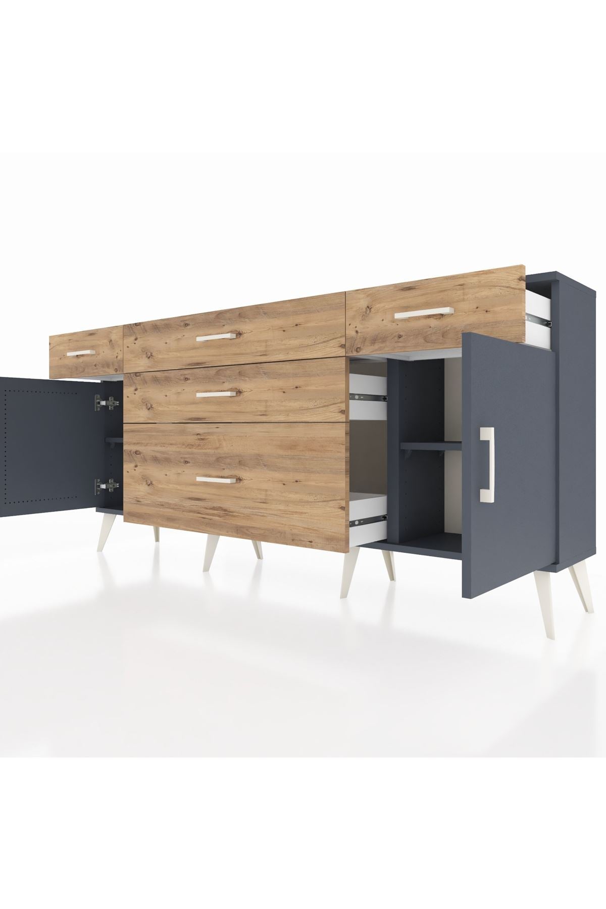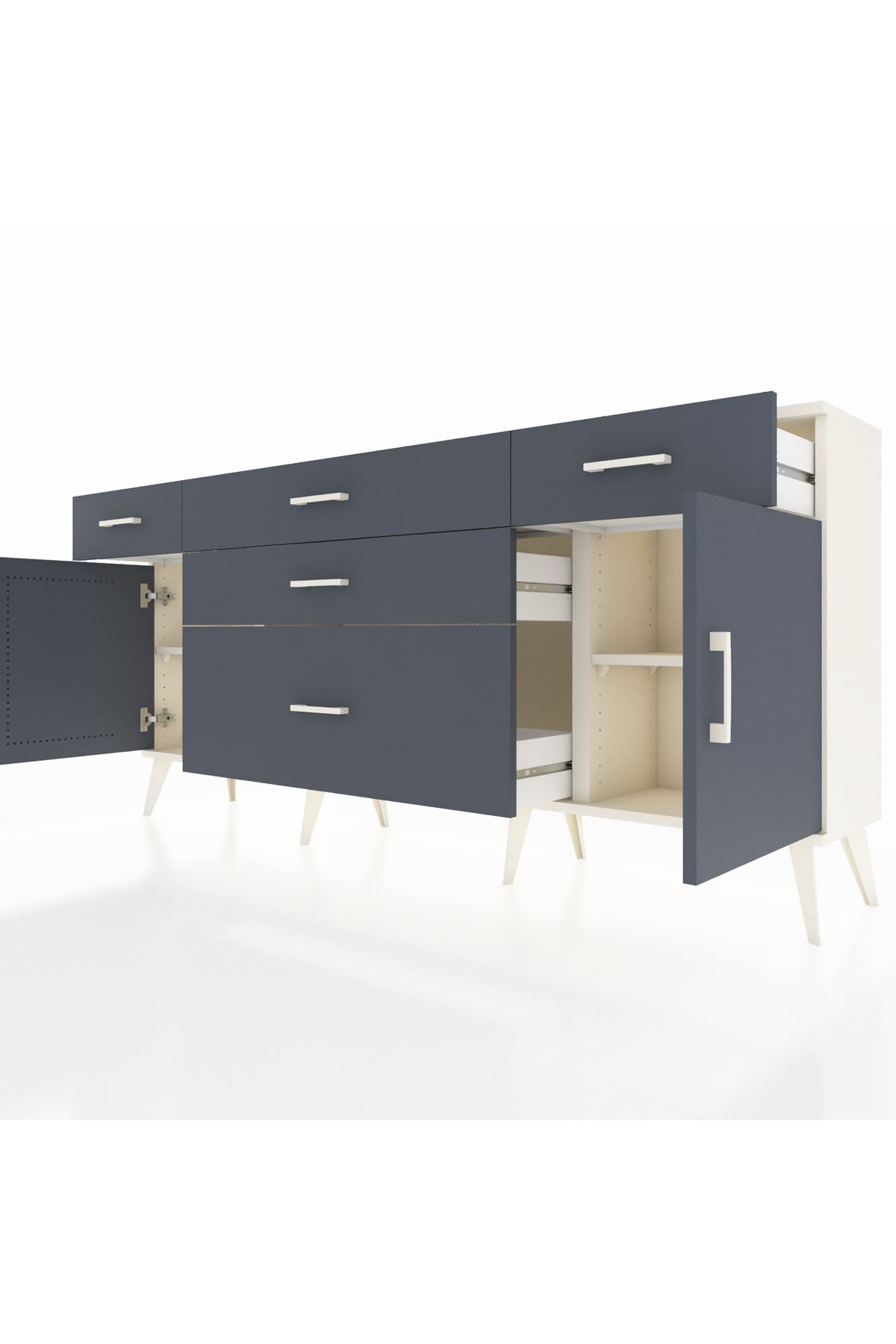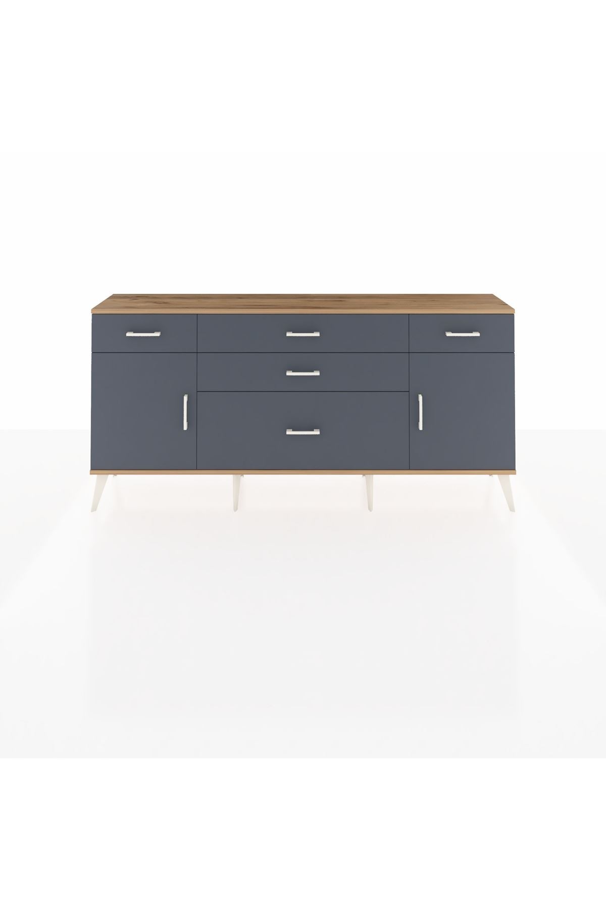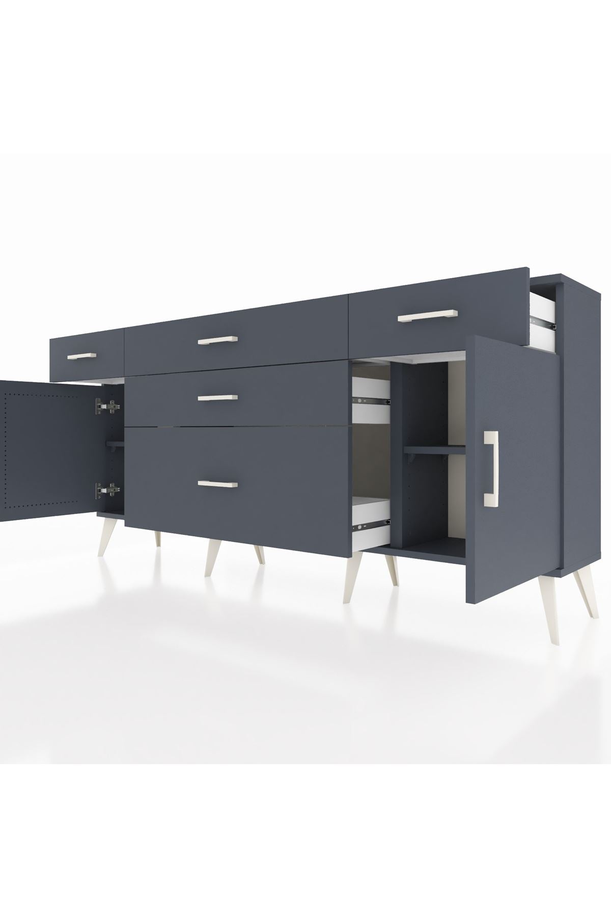 📌 Arges Konsol 2 Raflı 5 Çekmeceli 2 Kapaklı 176x30x83