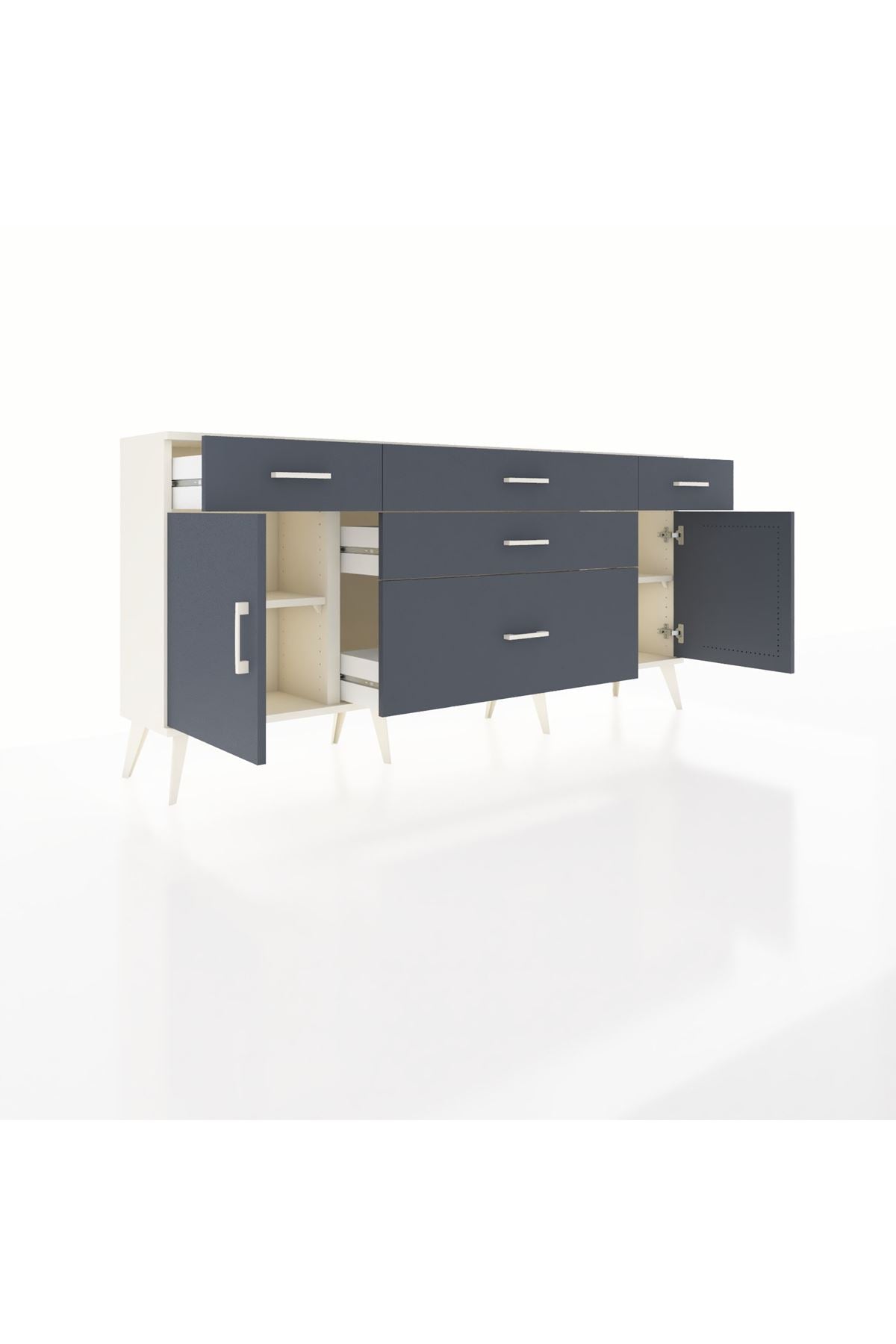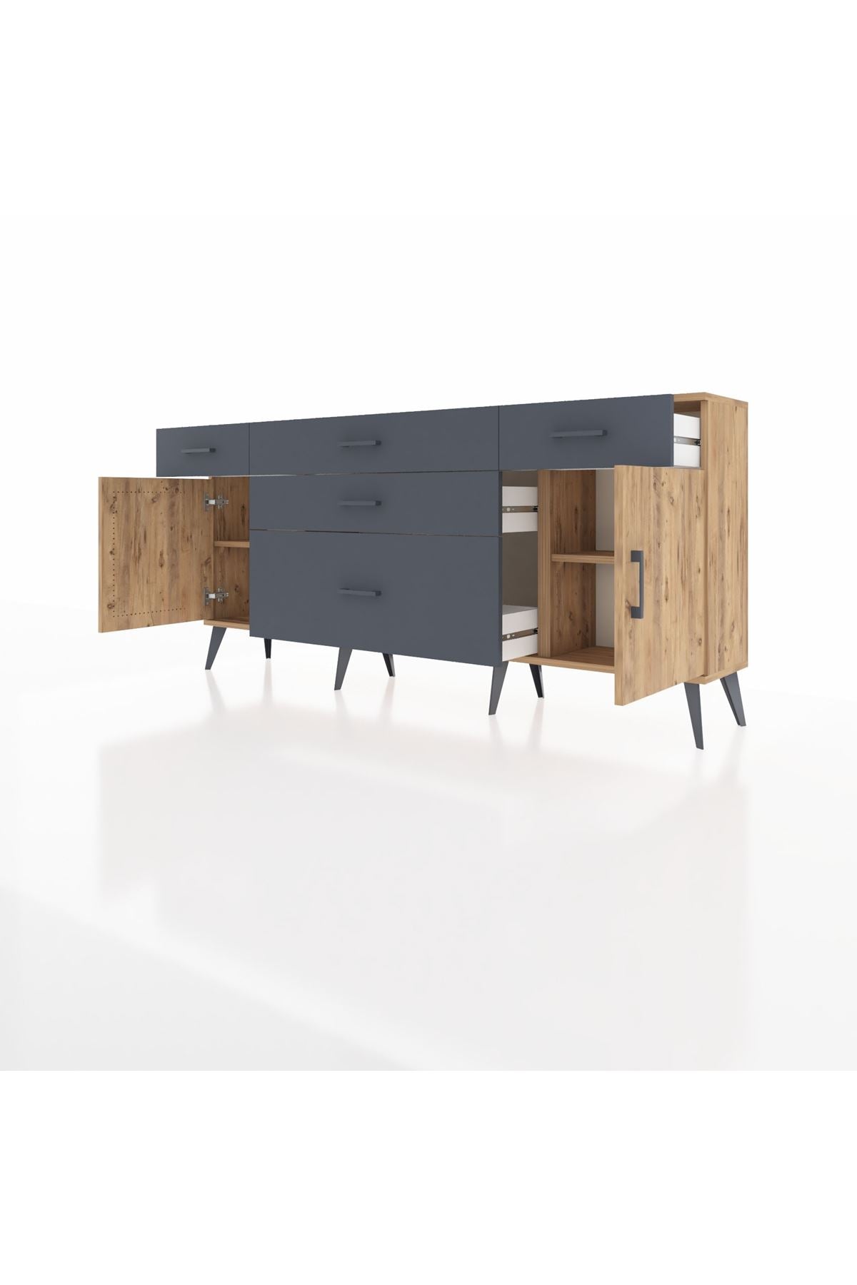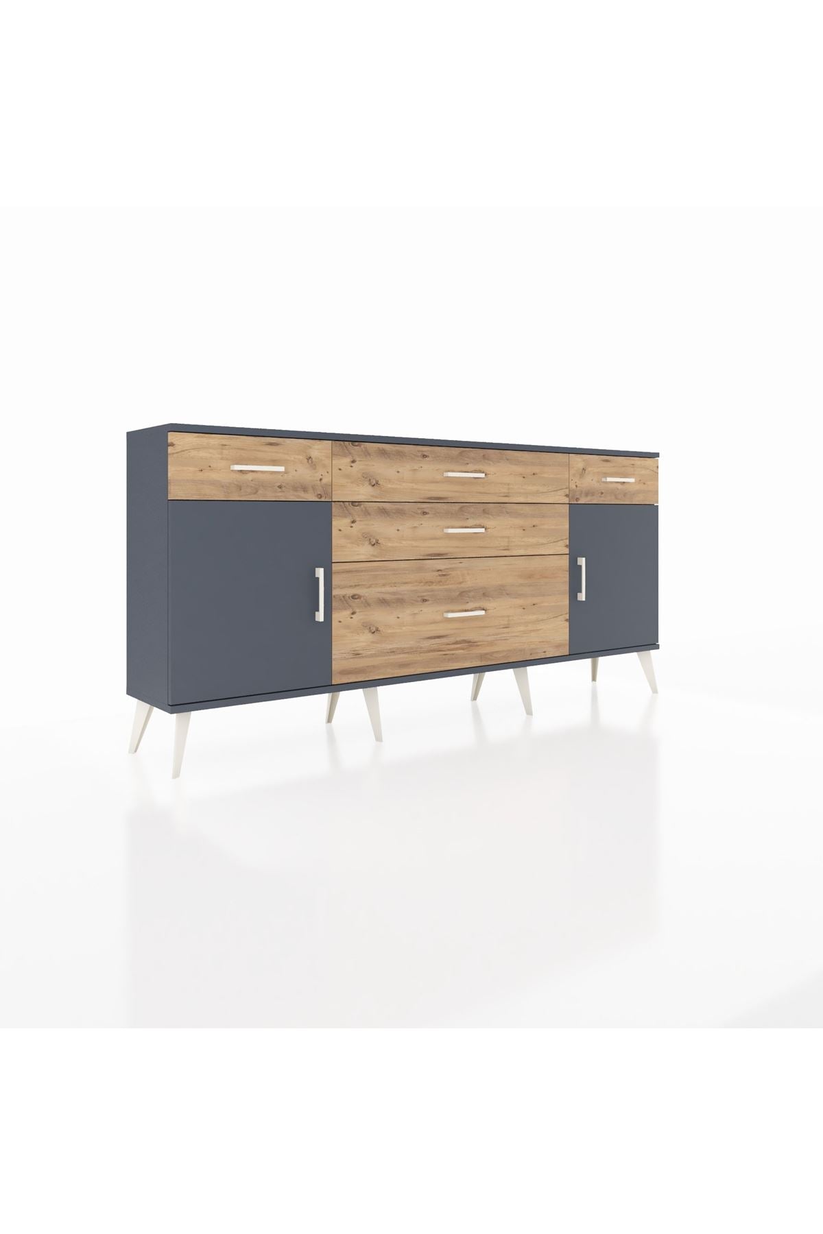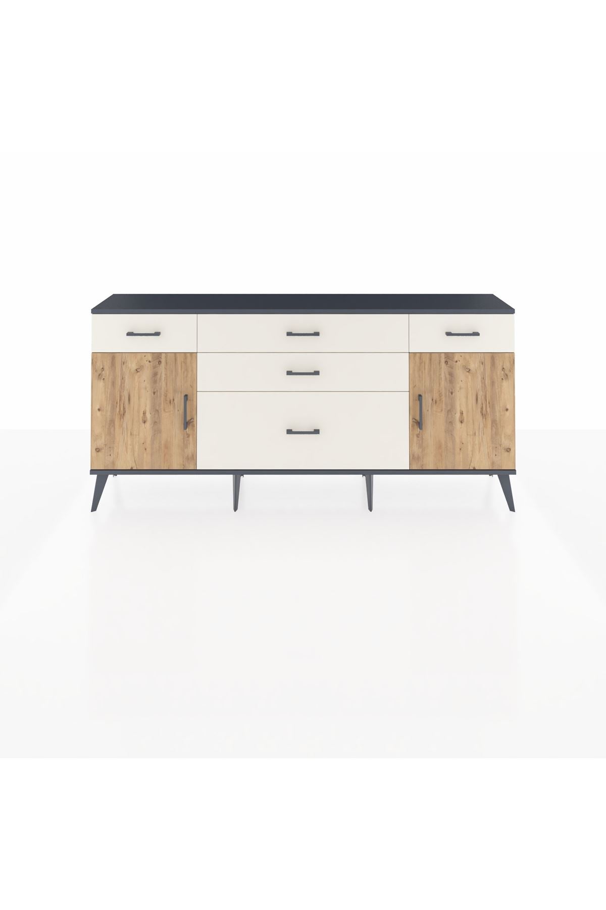 📌 Arges Konsol 2 Raflı 5 Çekmeceli 2 Kapaklı 176x30x83