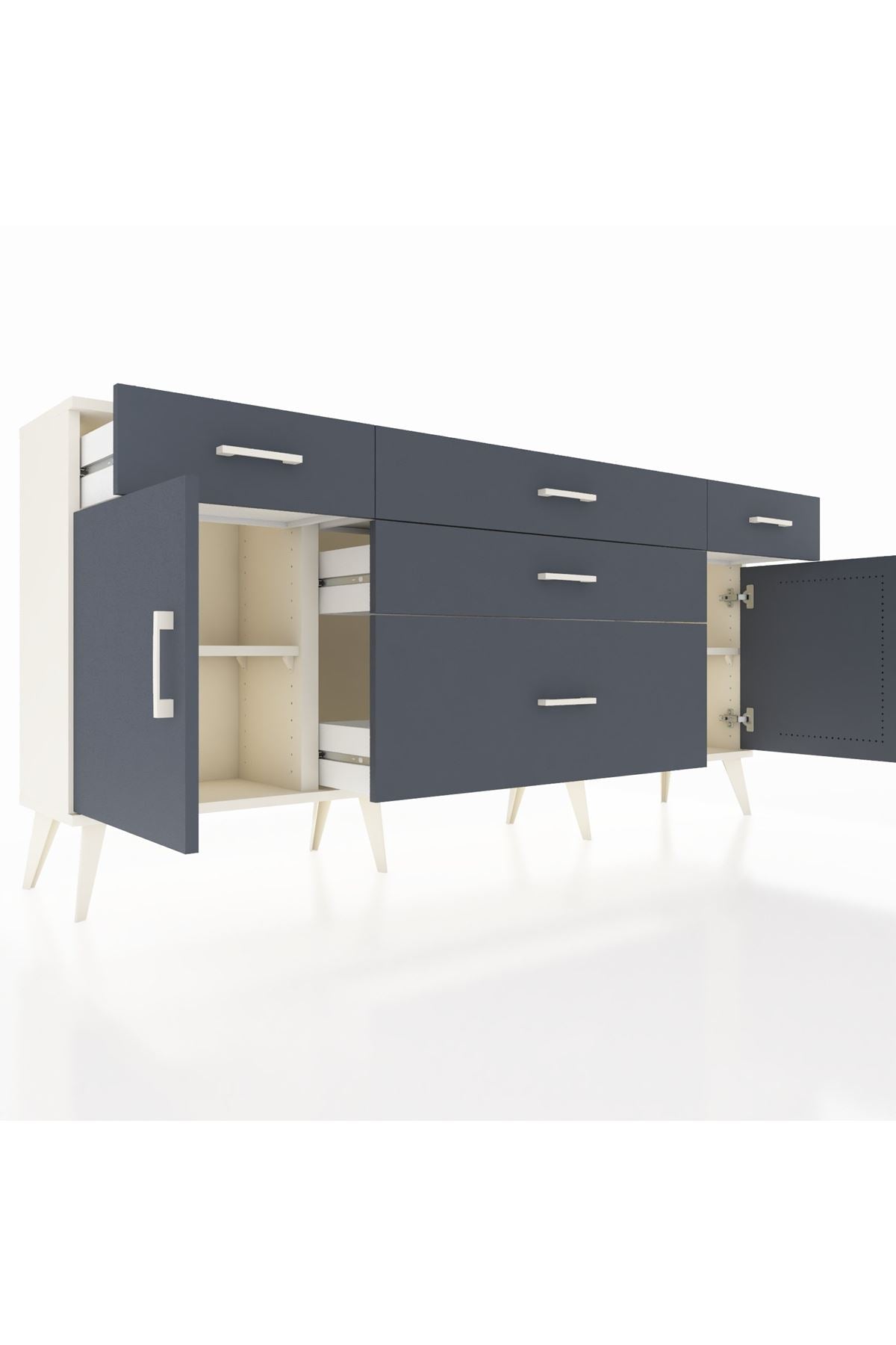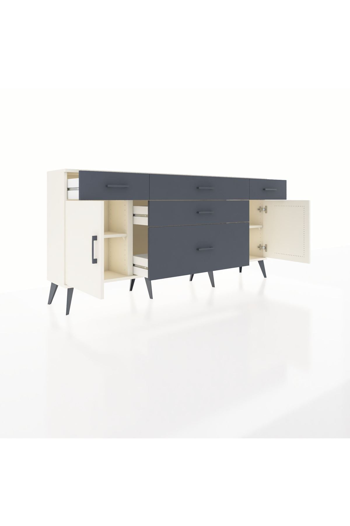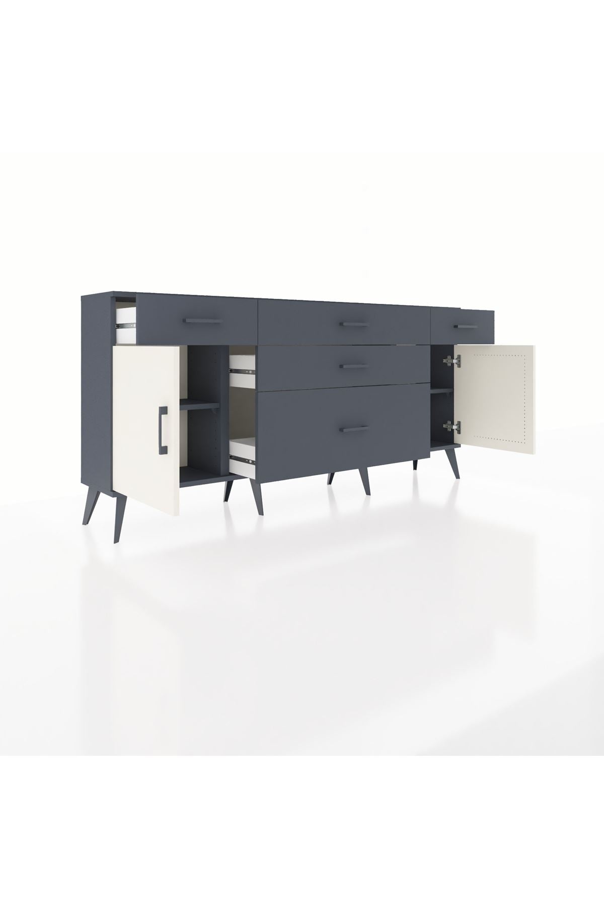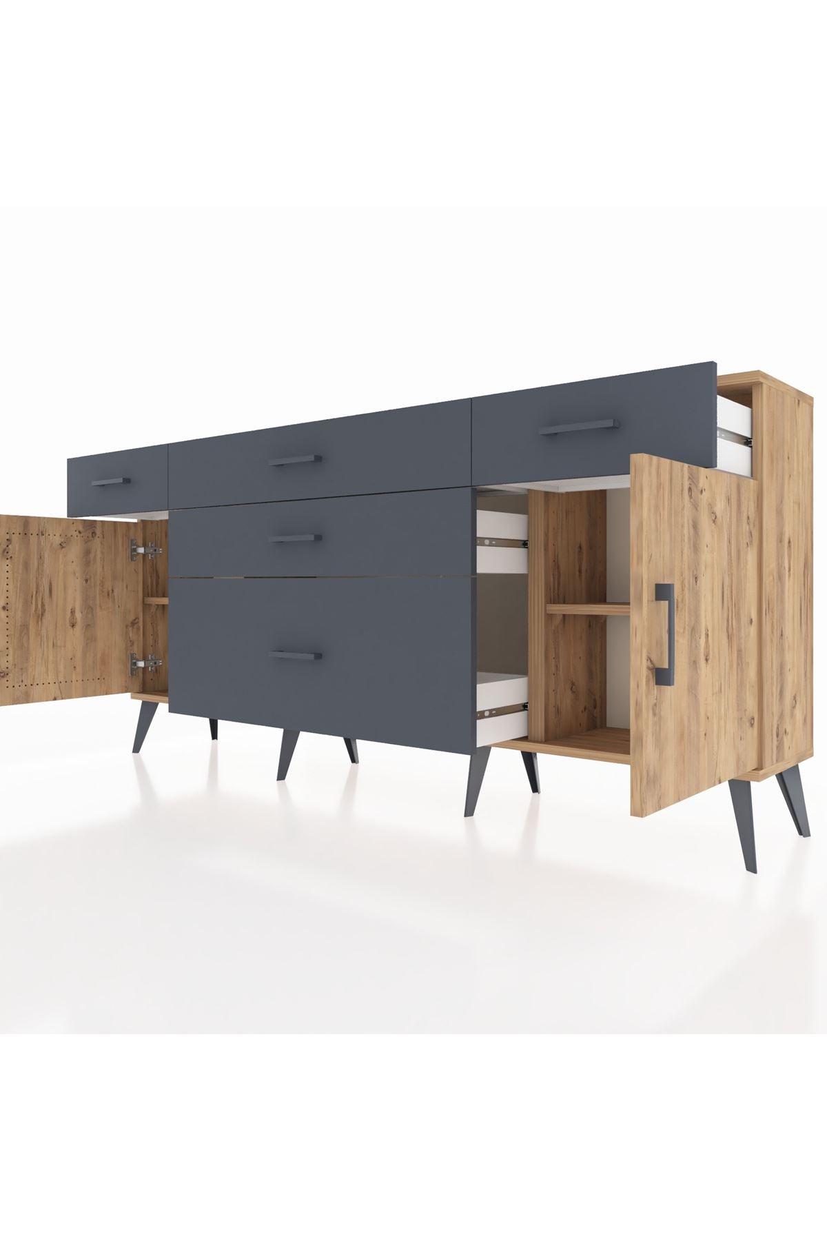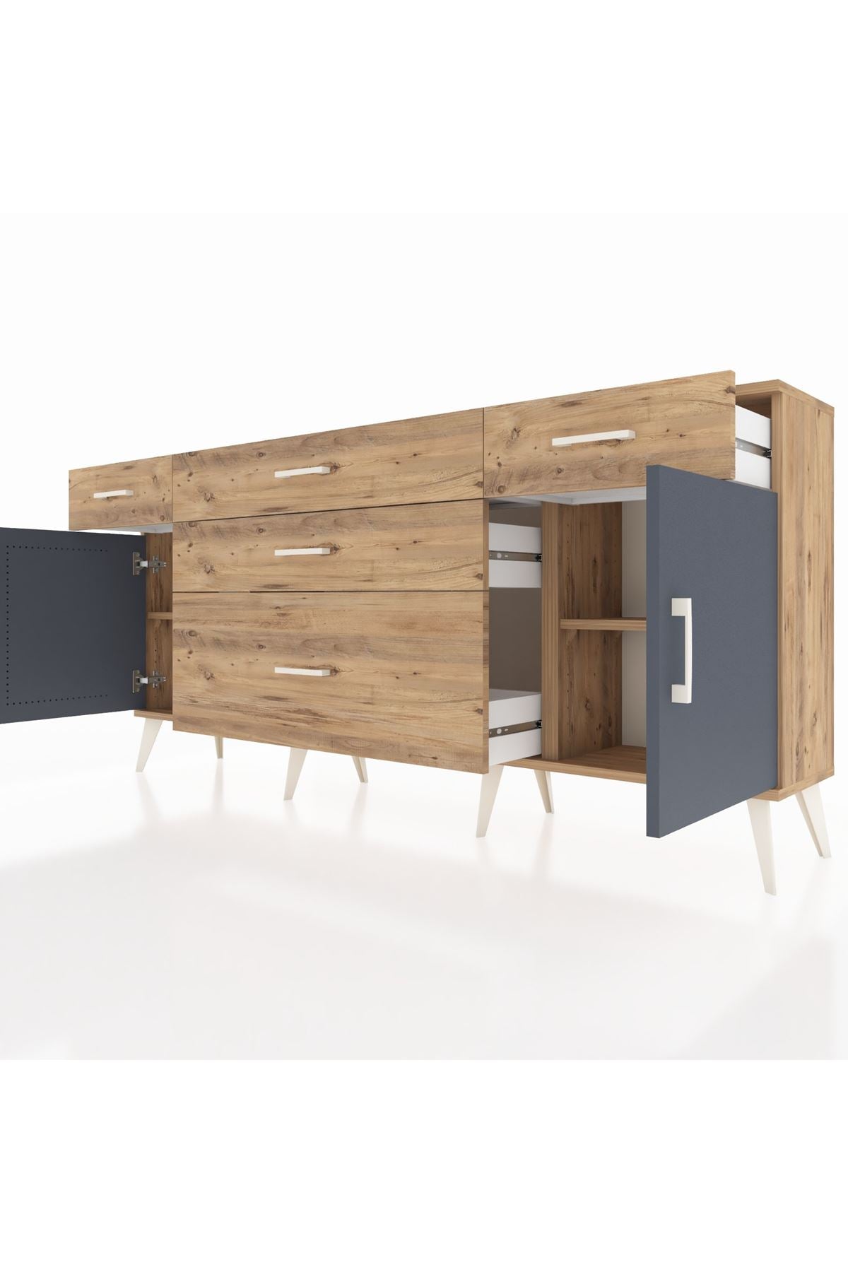 📌 Arges Konsol 2 Raflı 5 Çekmeceli 2 Kapaklı 176x30x83