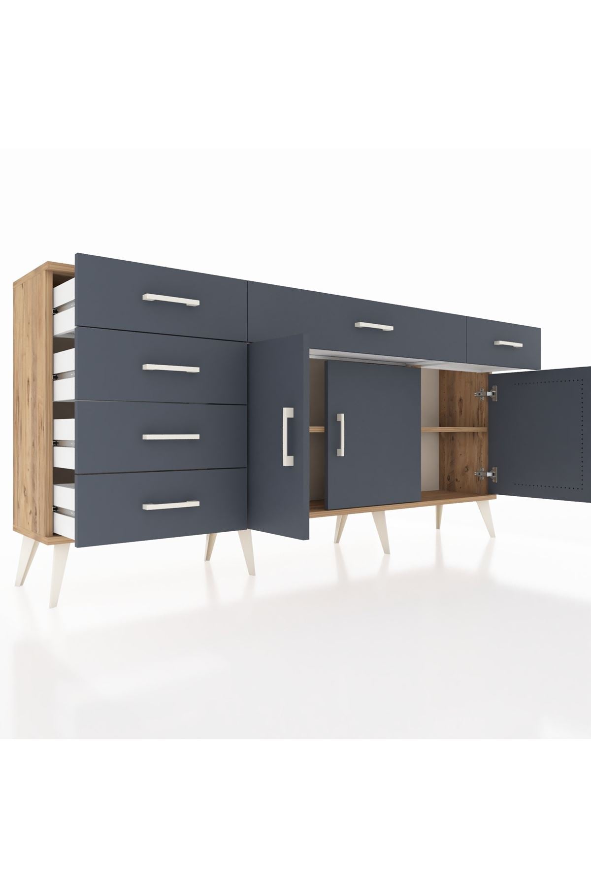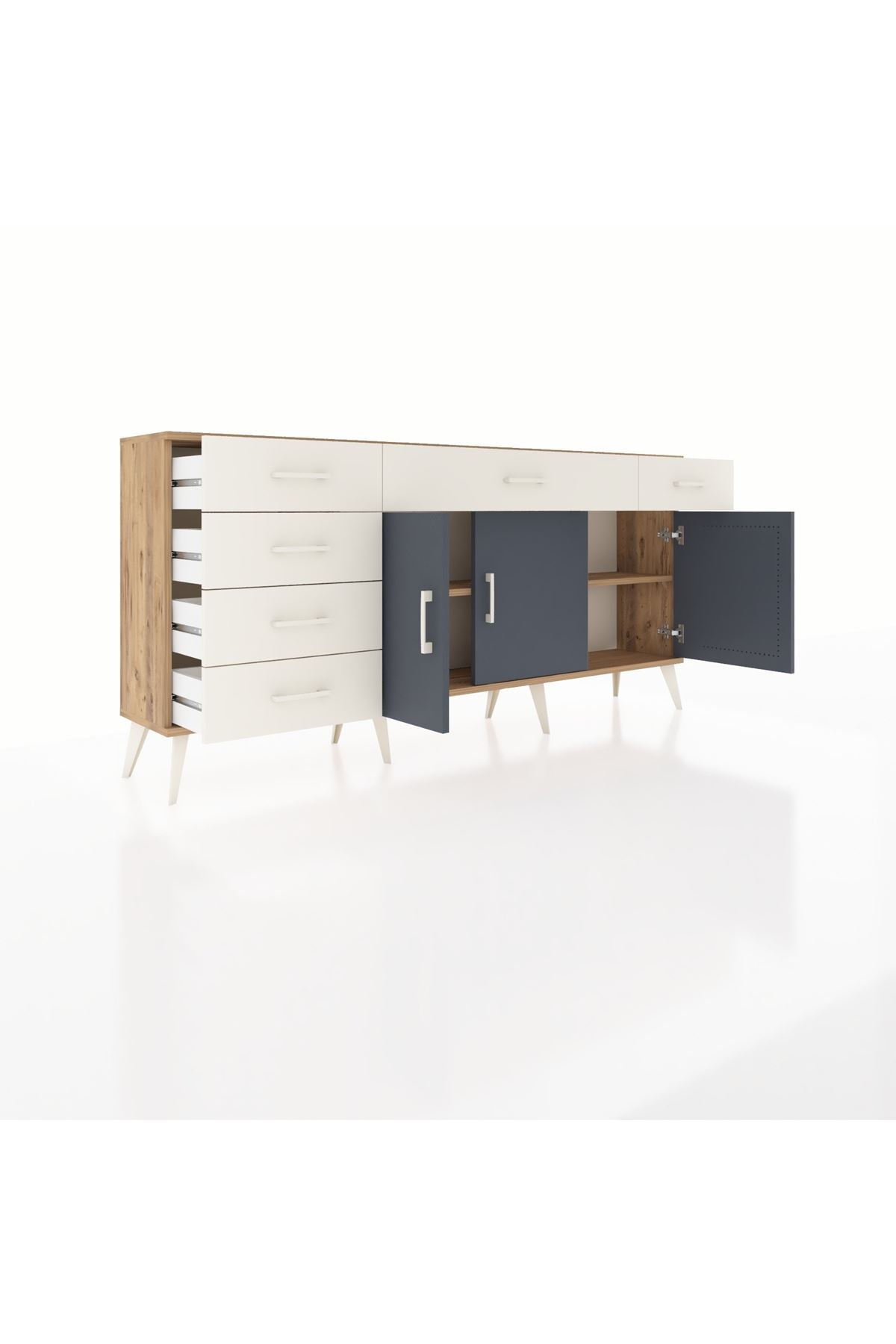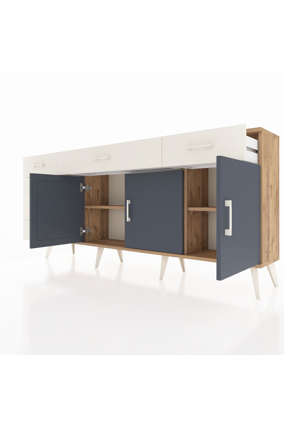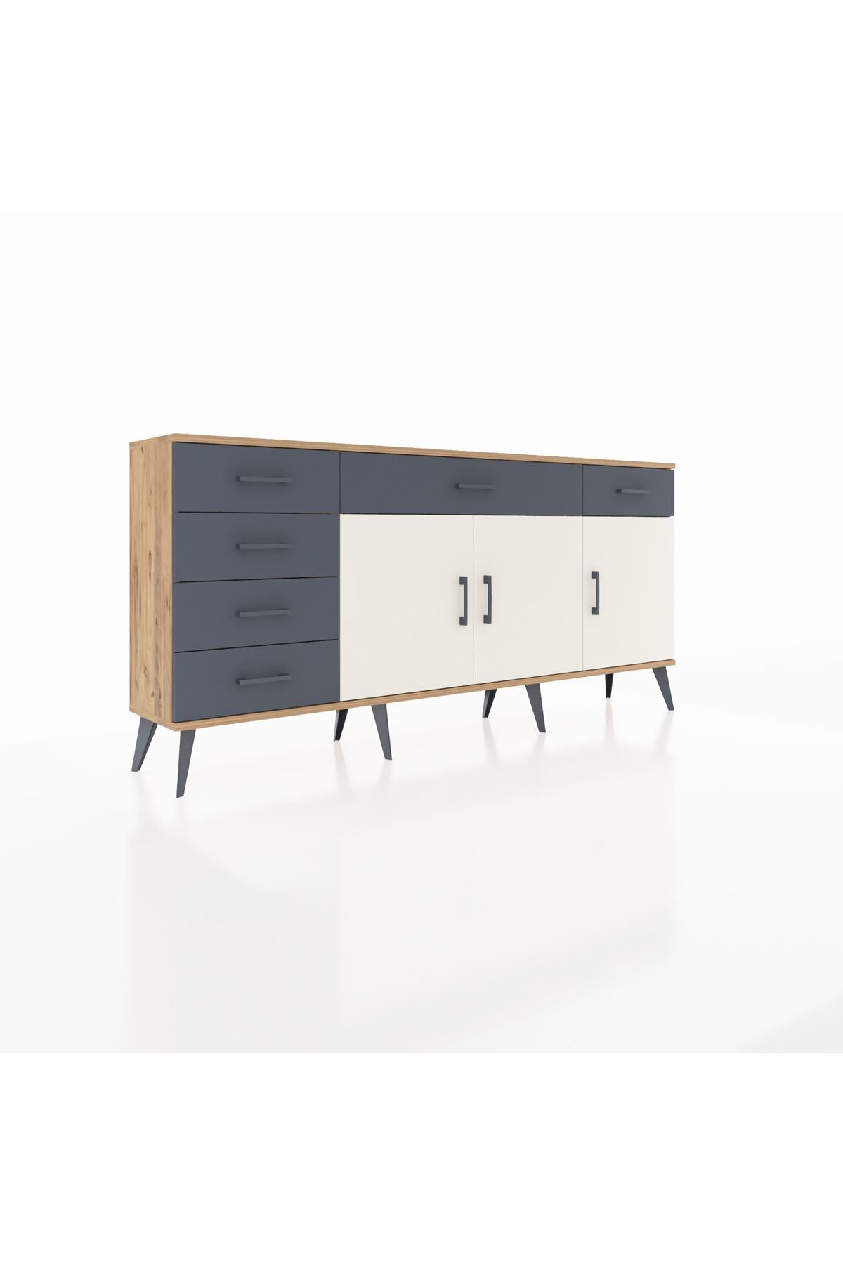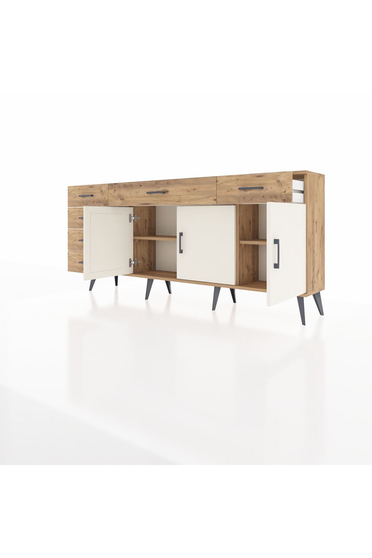 📌 Arges Konsol 2 Raflı 6 Çekmeceli 3 Kapaklı 176x30x83