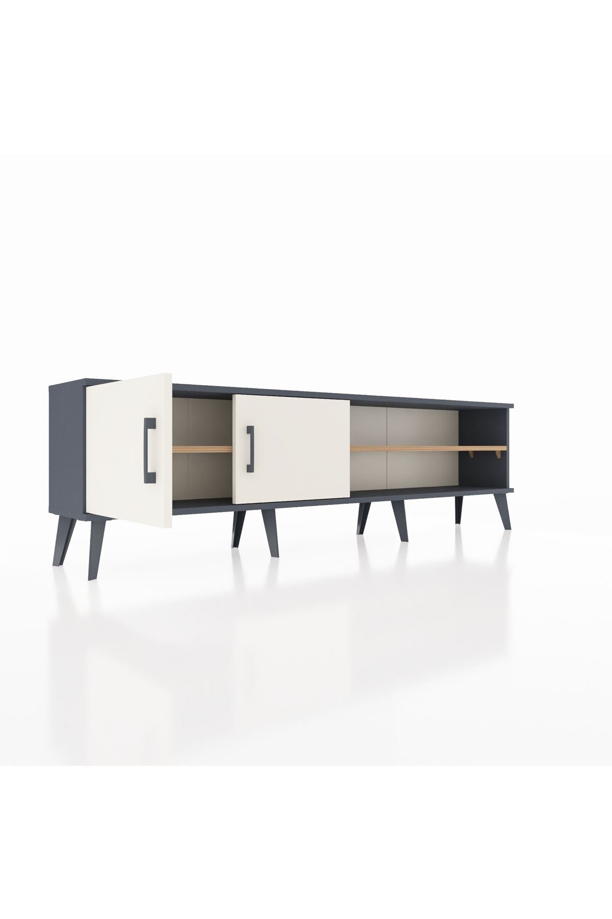 Arges TV Ünitesi 2 Raflı 2 Kapaklı 176x30x51 Antrasit-Aytaşı/Çam