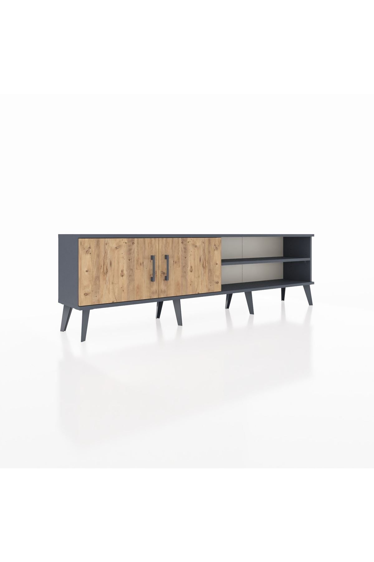 Arges TV Ünitesi 2 Raflı 2 Kapaklı 176x30x51 Antrasit-Çam/Antrasit