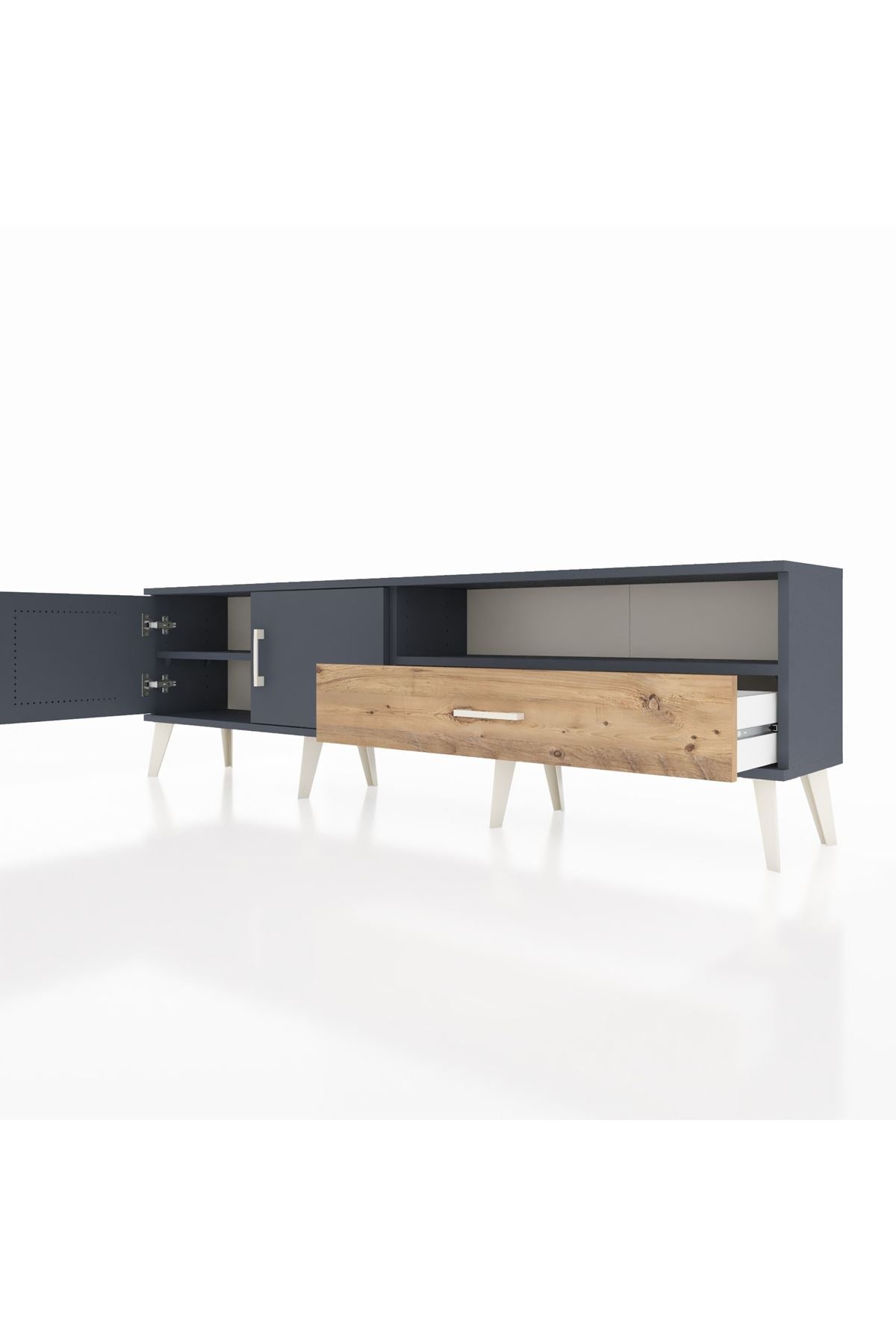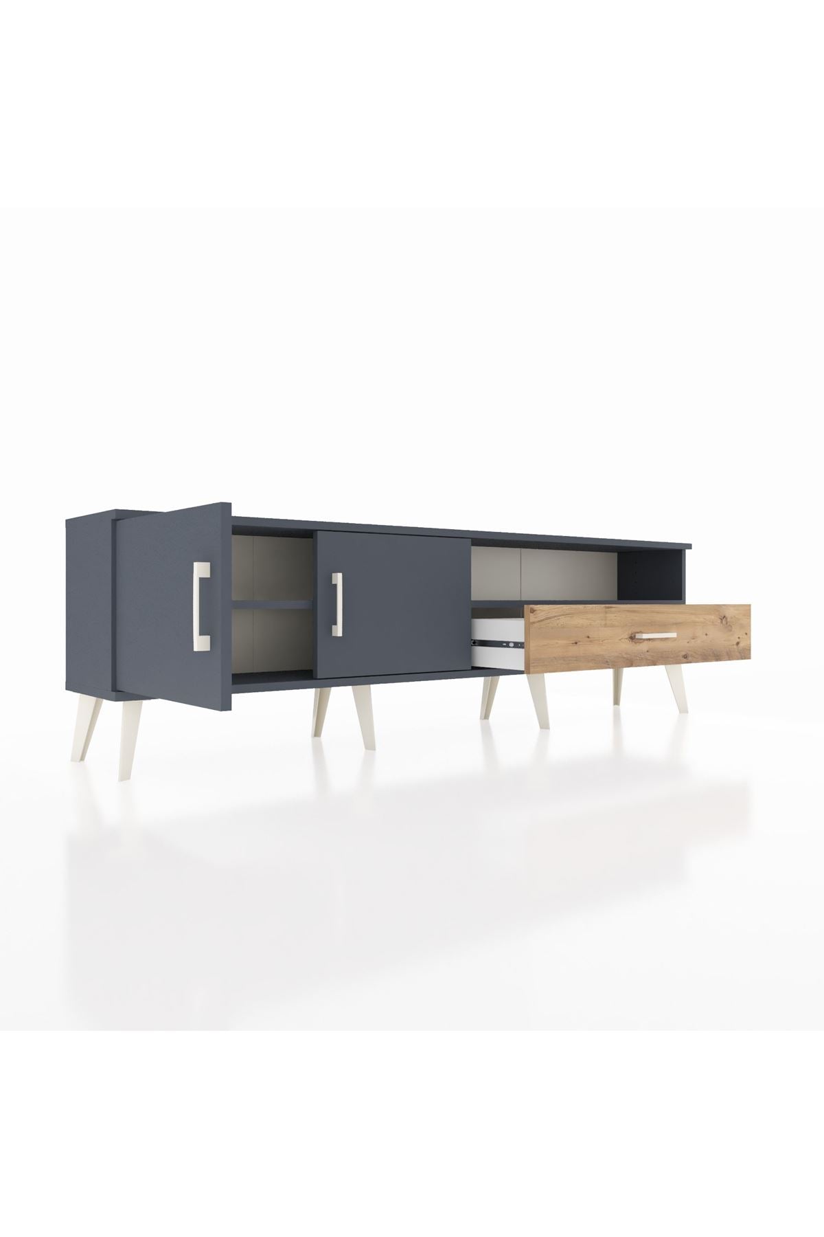 Arges TV Ünitesi 2 Raflı Tek Çekmeceli 2 Kapaklı 176x30x51 Antrasit-Antrasit/Çam