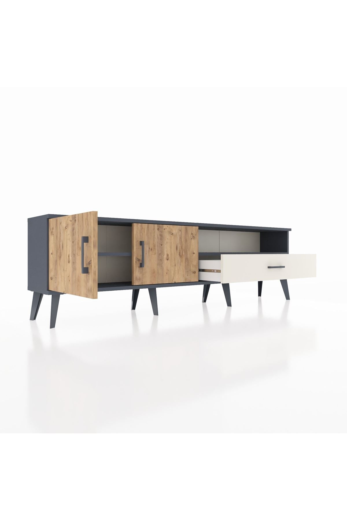 Arges TV Ünitesi 2 Raflı Tek Çekmeceli 2 Kapaklı 176x30x51 Antrasit-Çam/Aytaşı