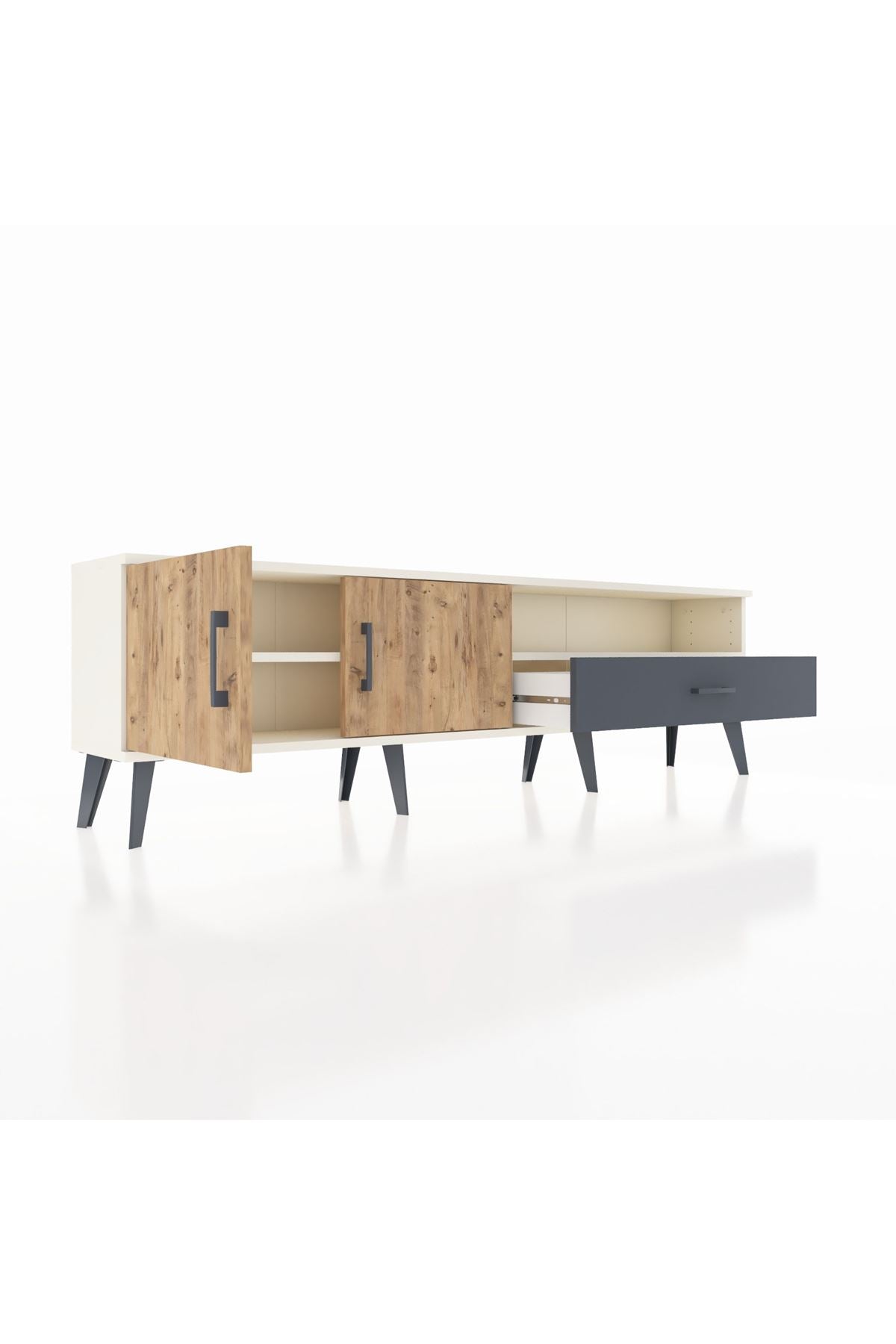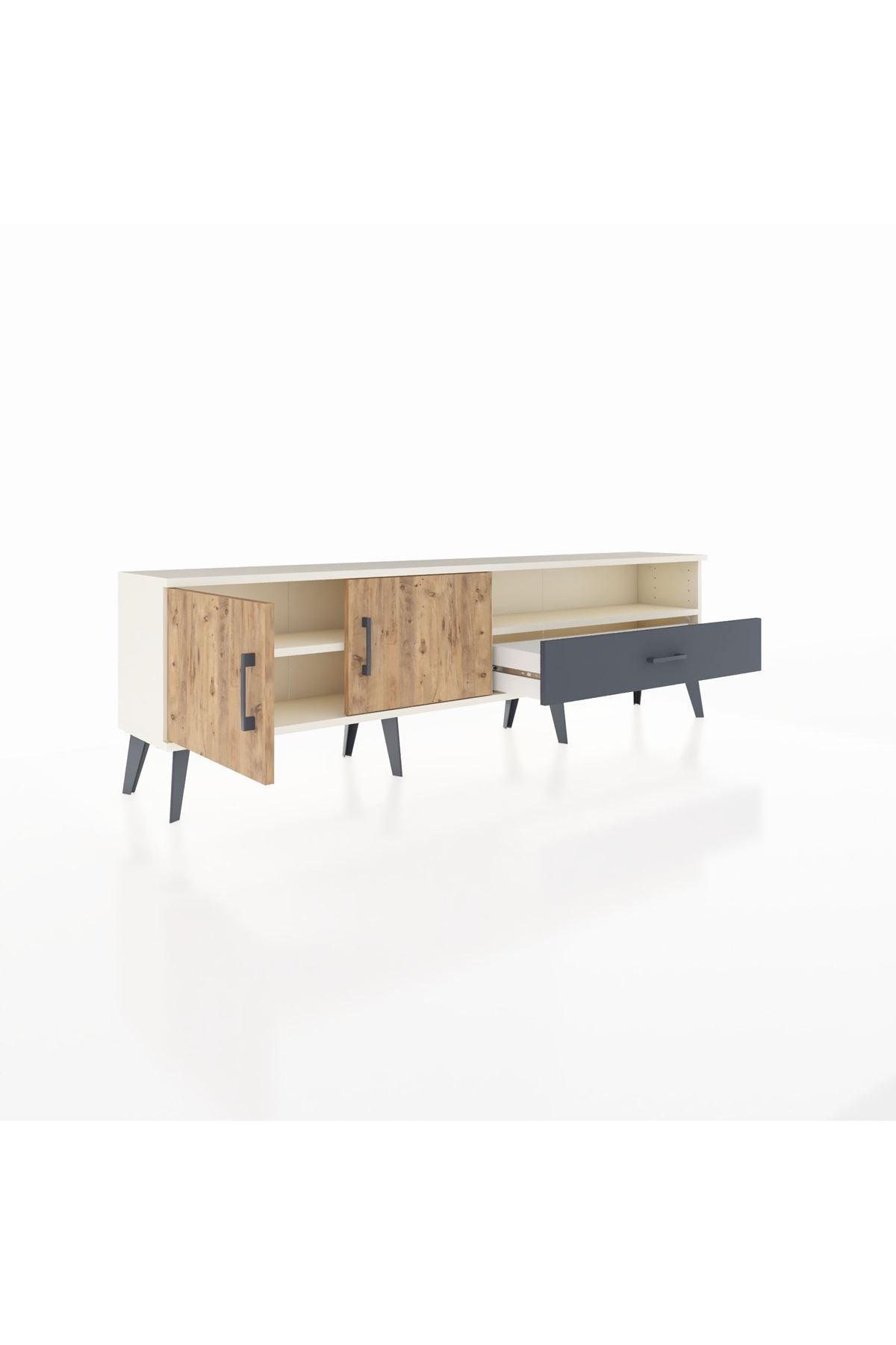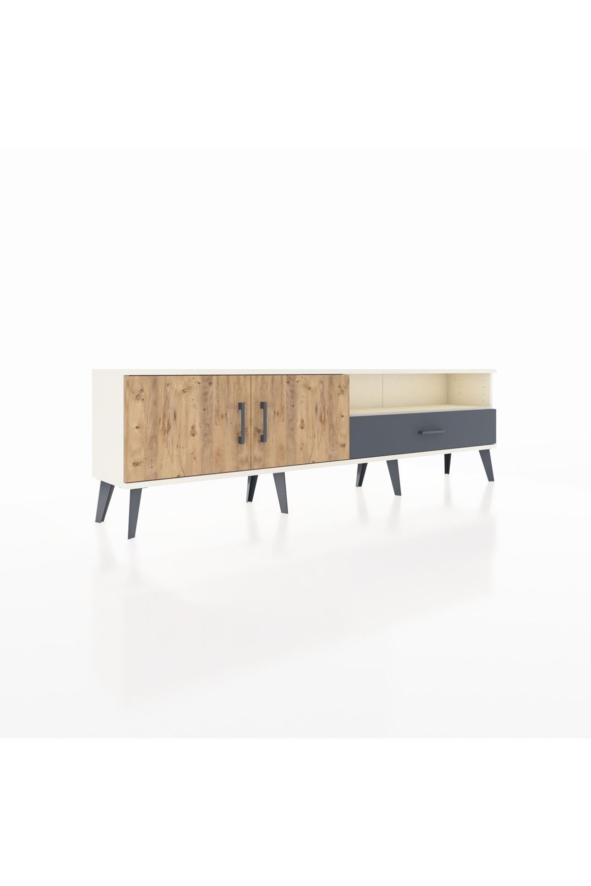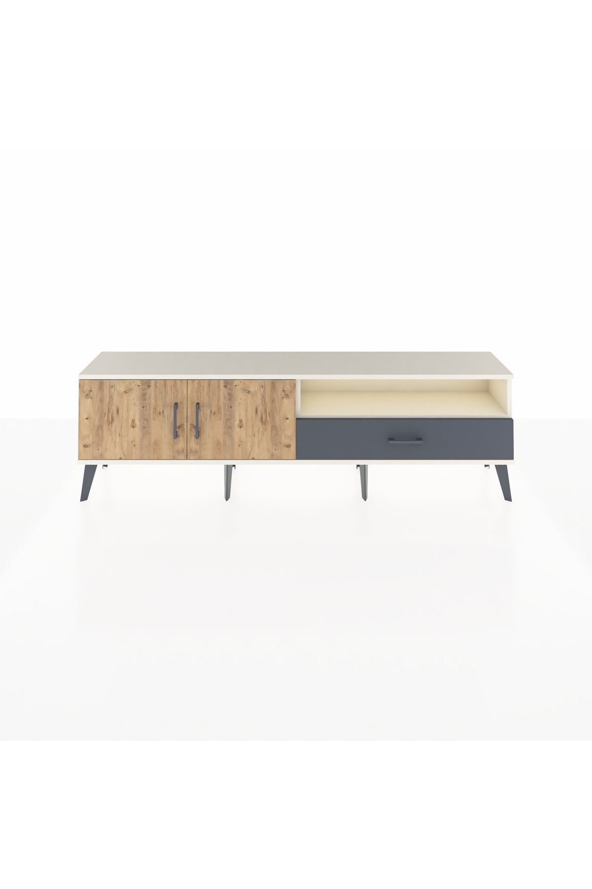 Arges TV Ünitesi 2 Raflı Tek Çekmeceli 2 Kapaklı 176x30x51 Aytaşı-Çam/Antrasit