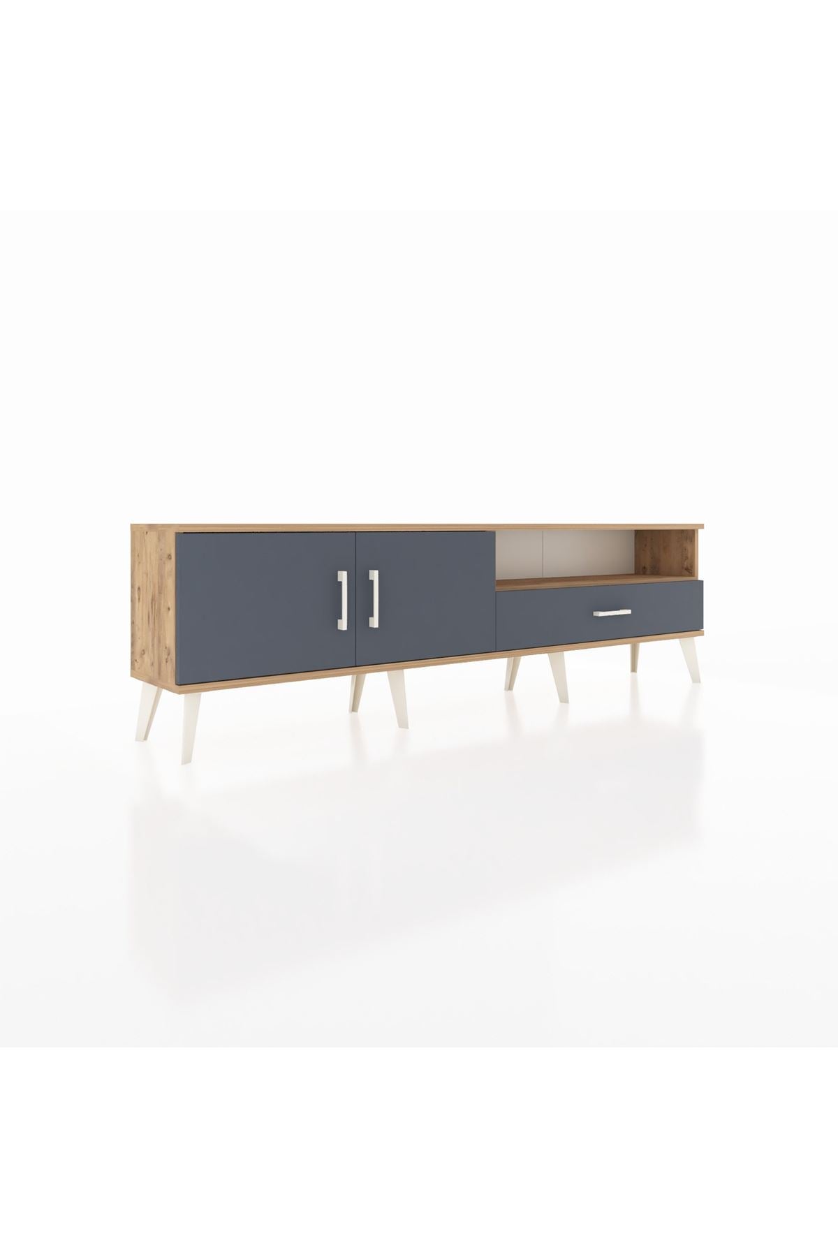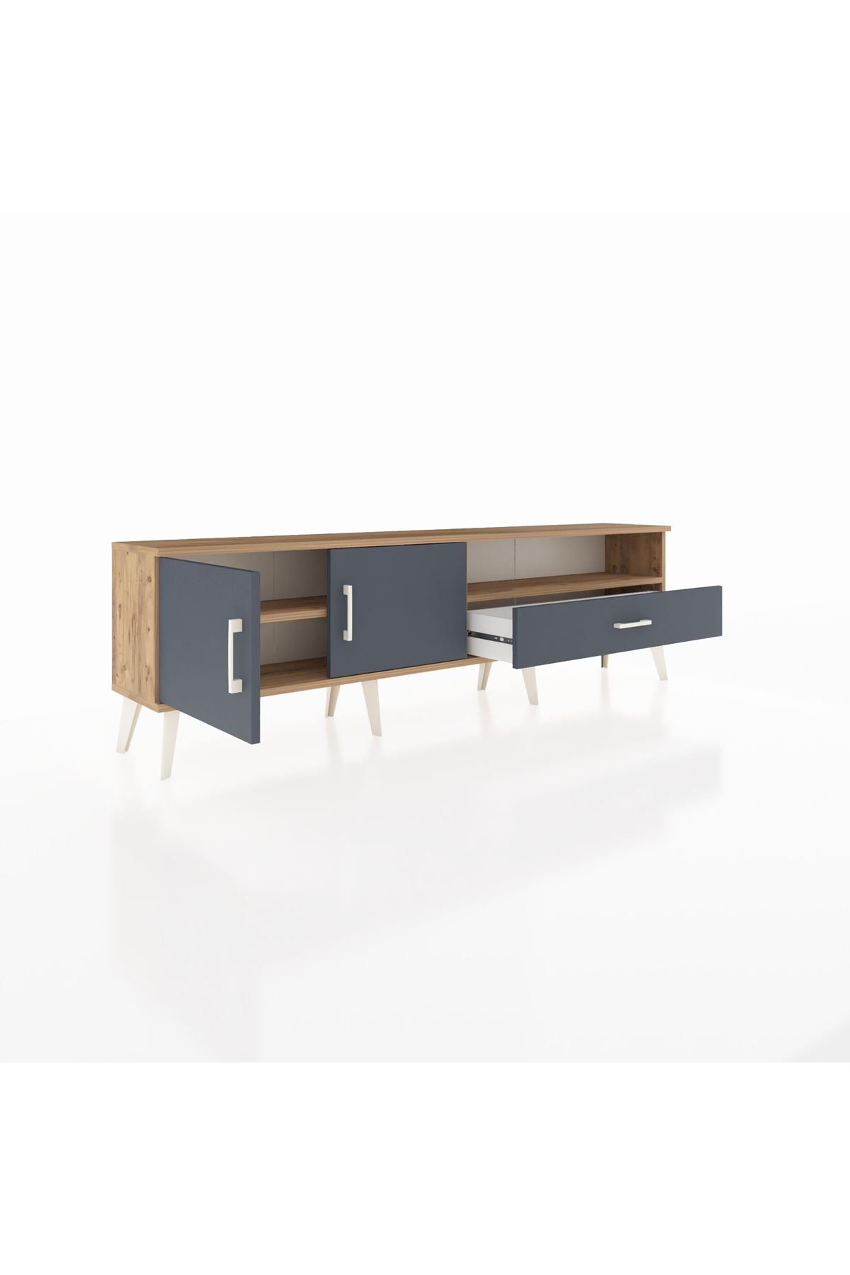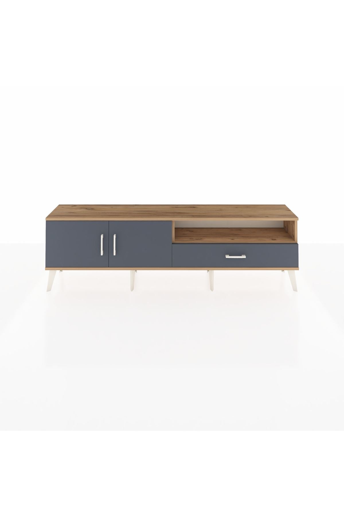 Arges TV Ünitesi 2 Raflı Tek Çekmeceli 2 Kapaklı 176x30x51 Çam-Antrasit/Antrasit