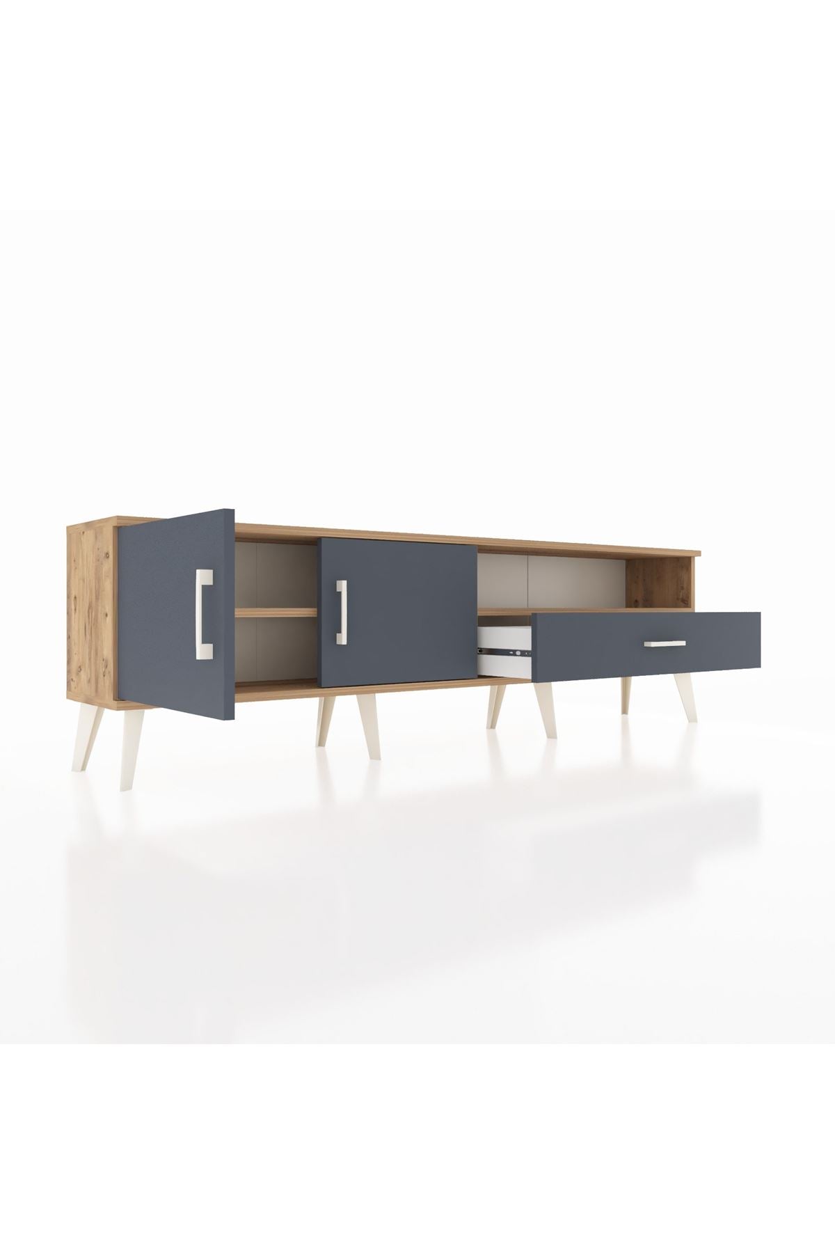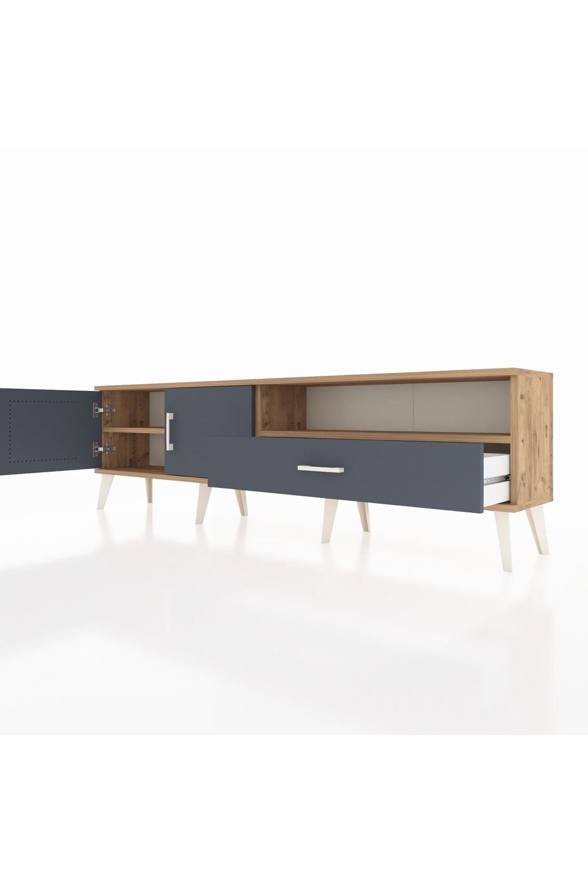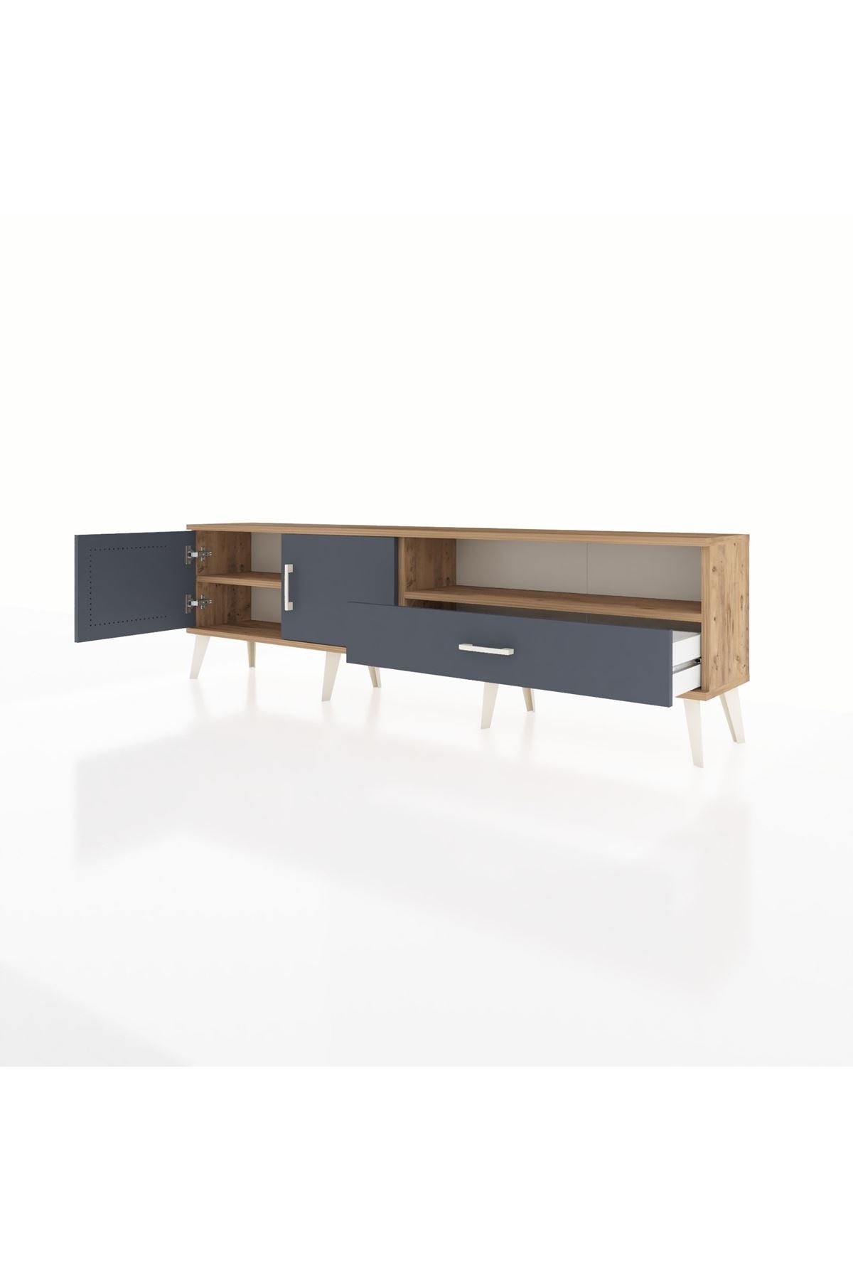 Arges TV Ünitesi 2 Raflı Tek Çekmeceli 2 Kapaklı 176x30x51 Çam-Antrasit/Antrasit