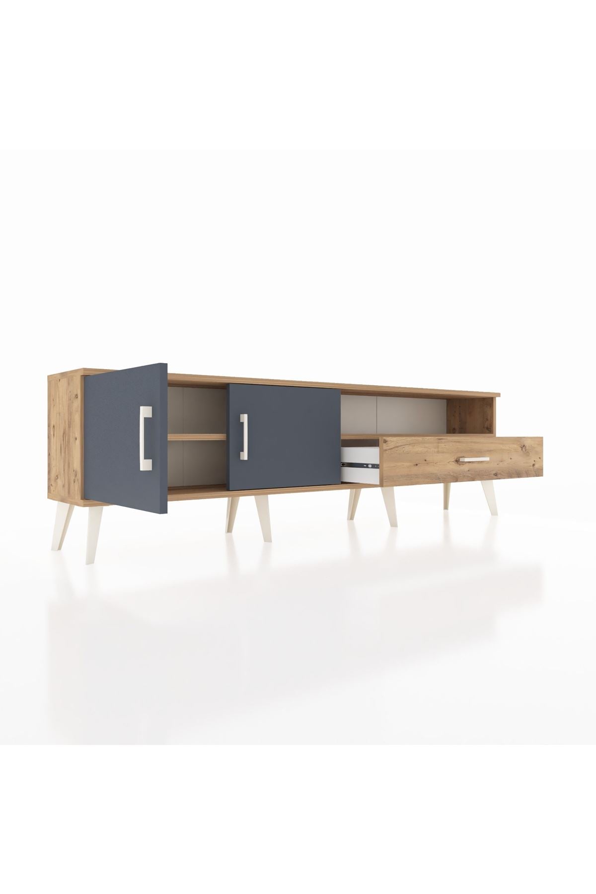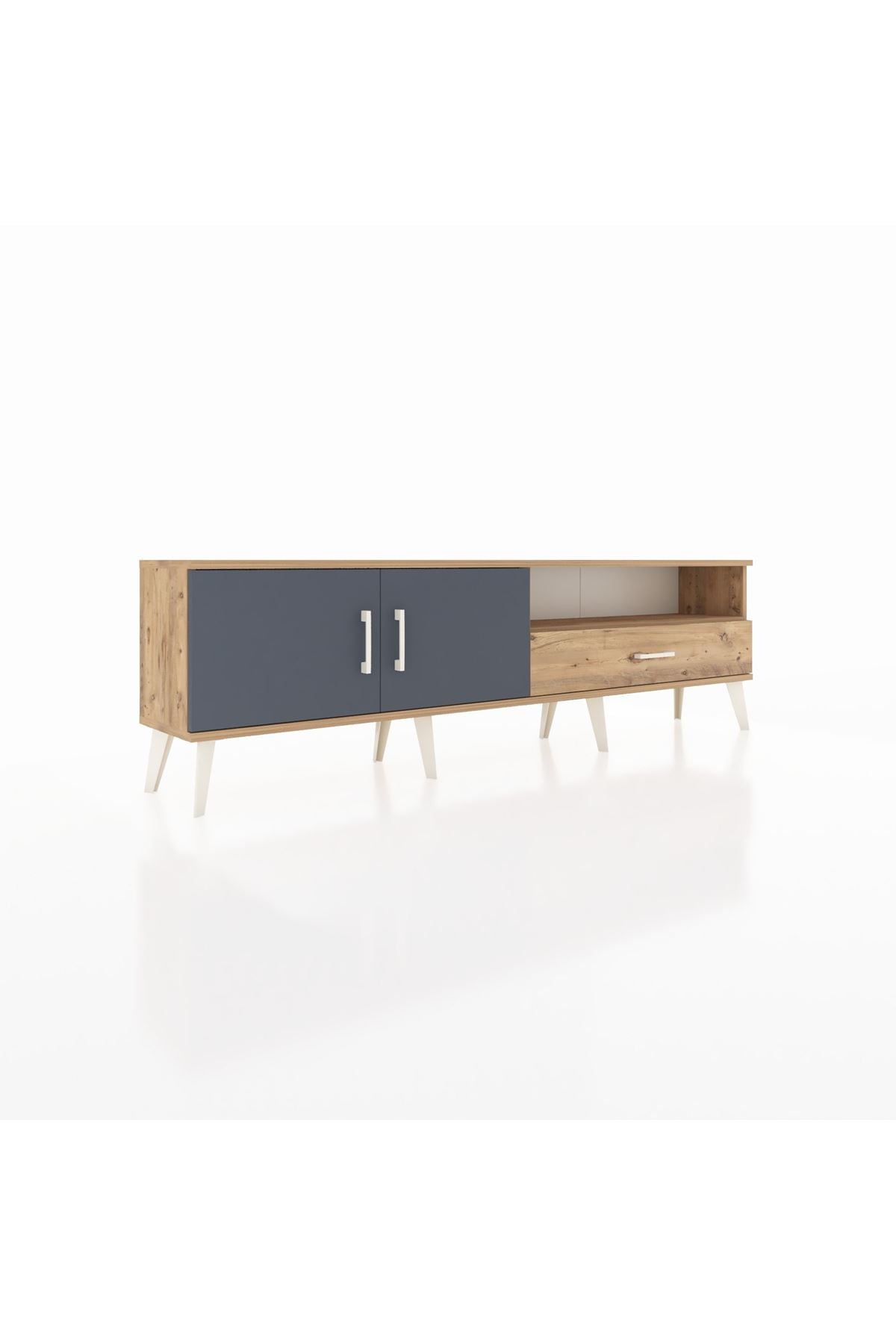 Arges TV Ünitesi 2 Raflı Tek Çekmeceli 2 Kapaklı 176x30x51 Çam-Antrasit/Çam