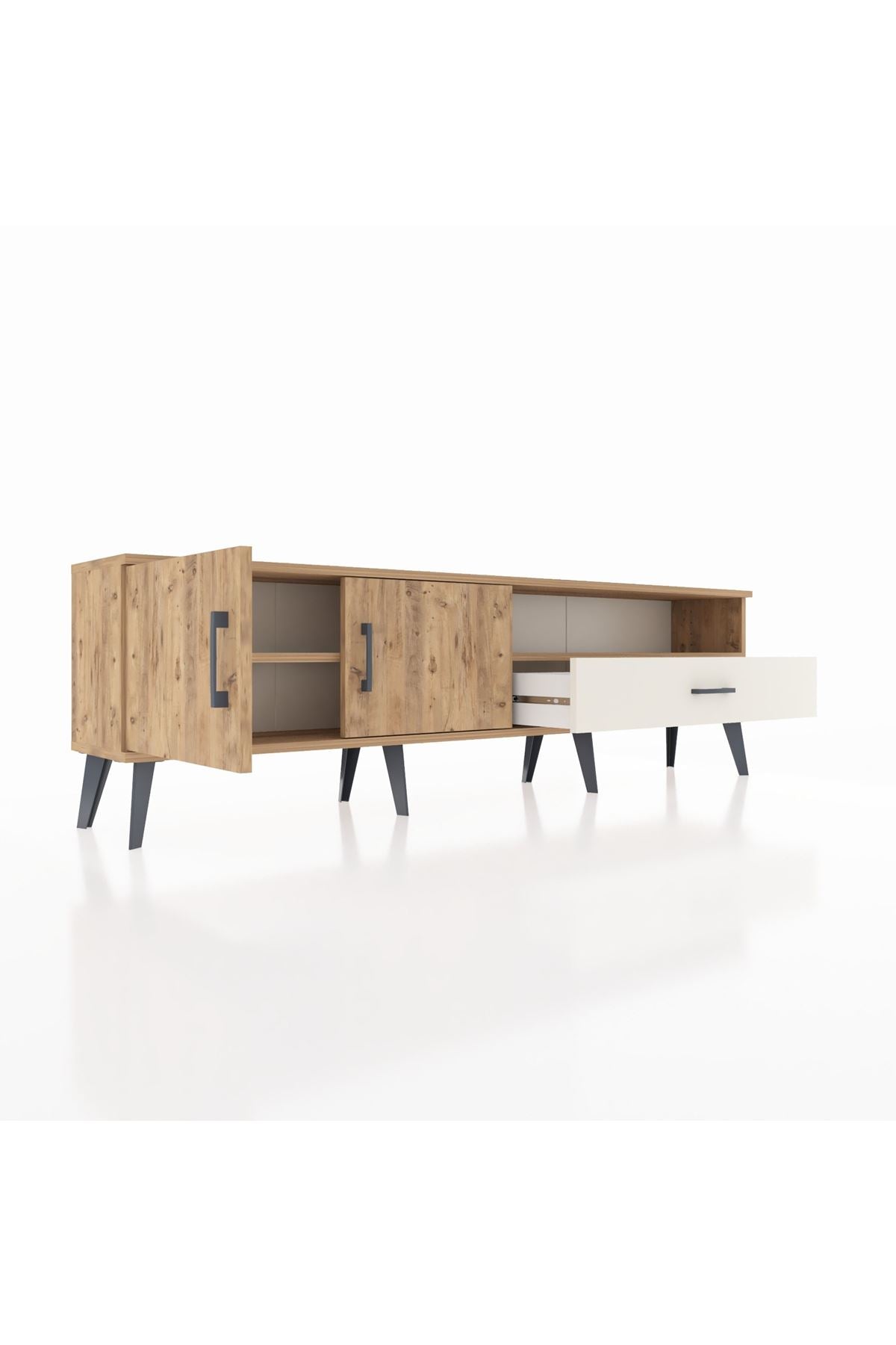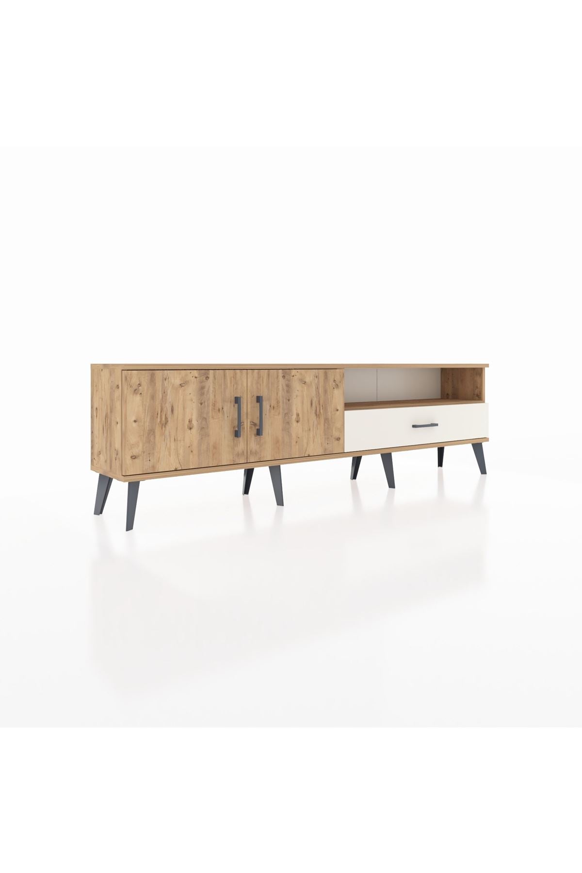 Arges TV Ünitesi 2 Raflı Tek Çekmeceli 2 Kapaklı 176x30x51 Çam-Çam/Aytaşı