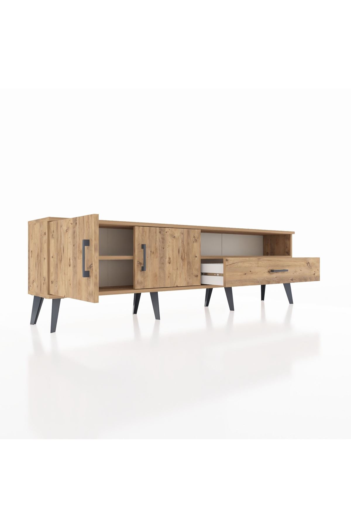 Arges TV Ünitesi 2 Raflı Tek Çekmeceli 2 Kapaklı 176x30x51 Çam-Çam/Çam