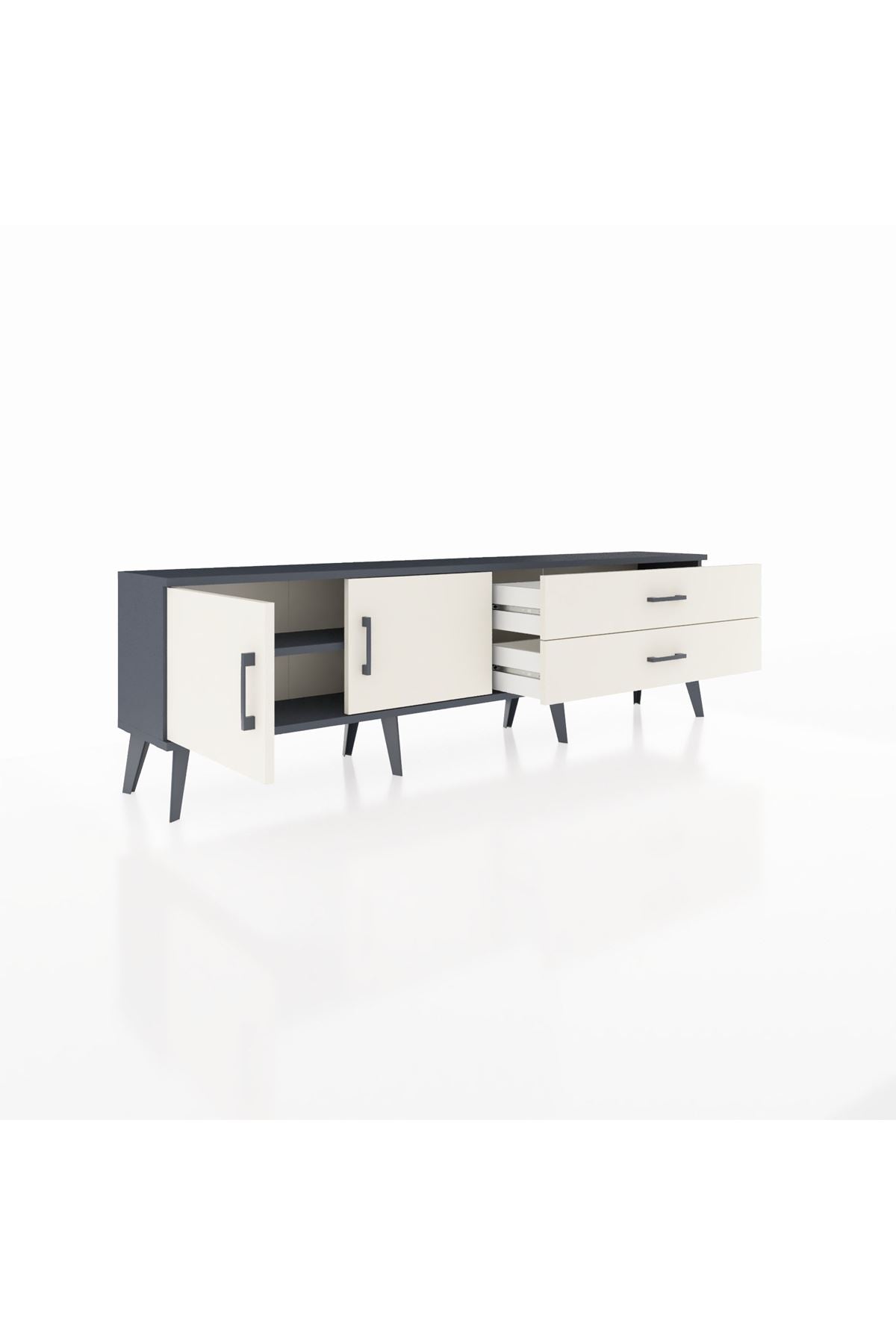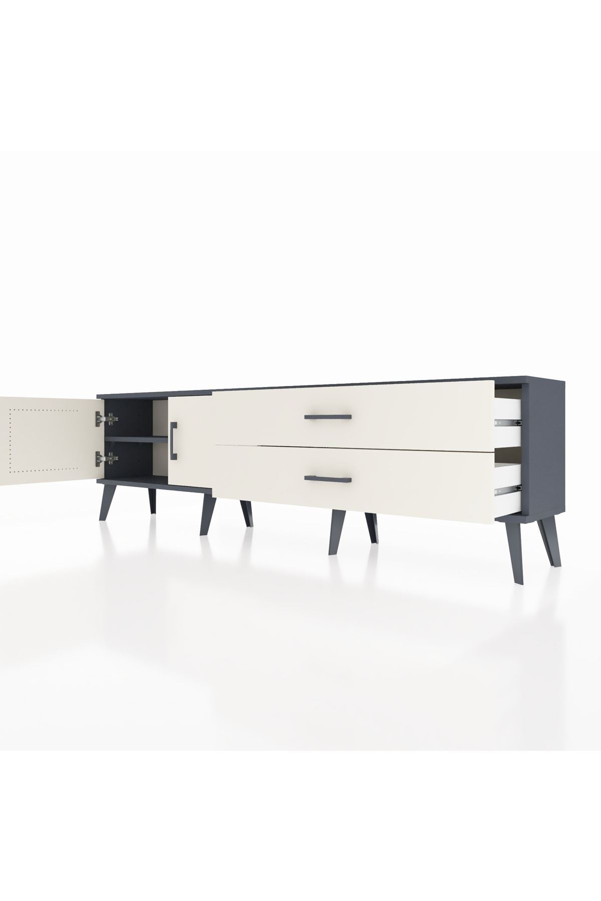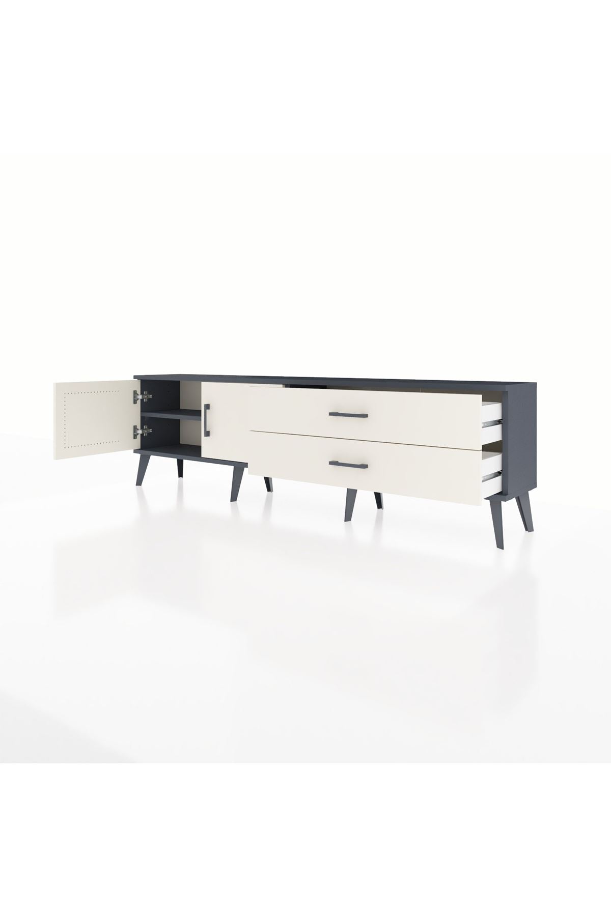 Arges TV Ünitesi Tek Raflı 2 Çekmeceli 2 Kapaklı 176x30x51 Antrasit-Aytaşı/Aytaşı