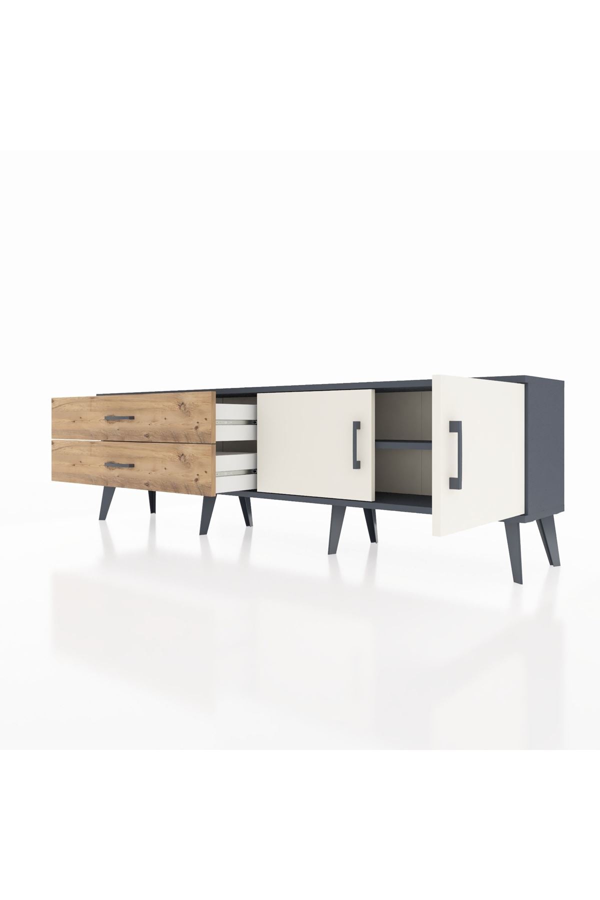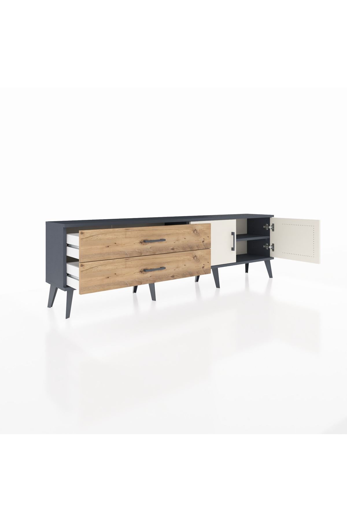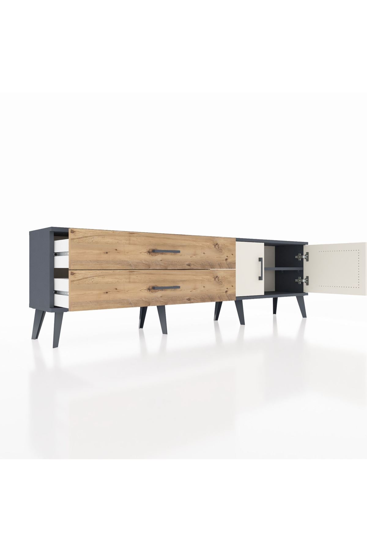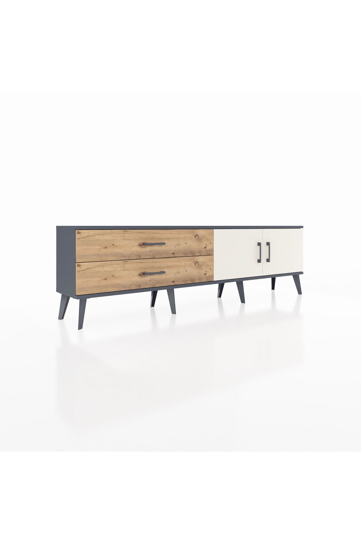 Arges TV Ünitesi Tek Raflı 2 Çekmeceli 2 Kapaklı 176x30x51 Antrasit-Aytaşı/Çam