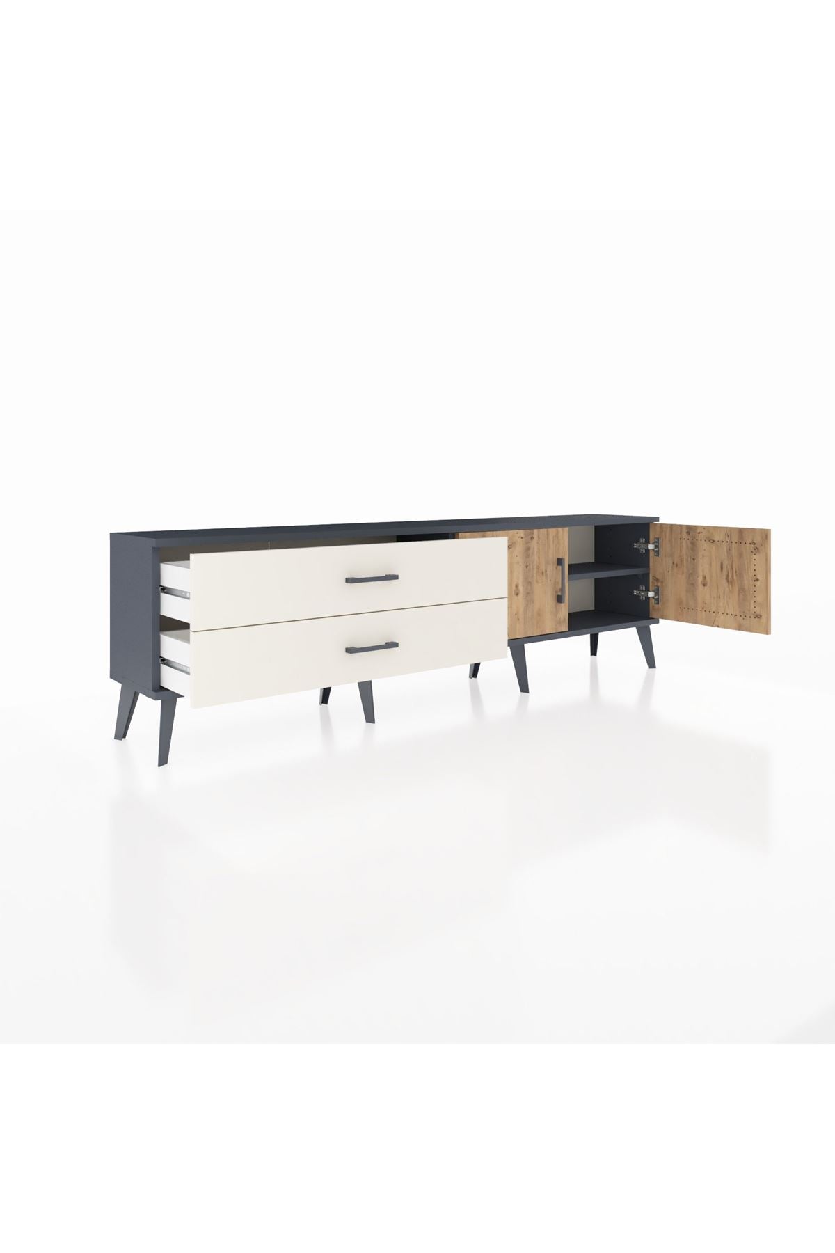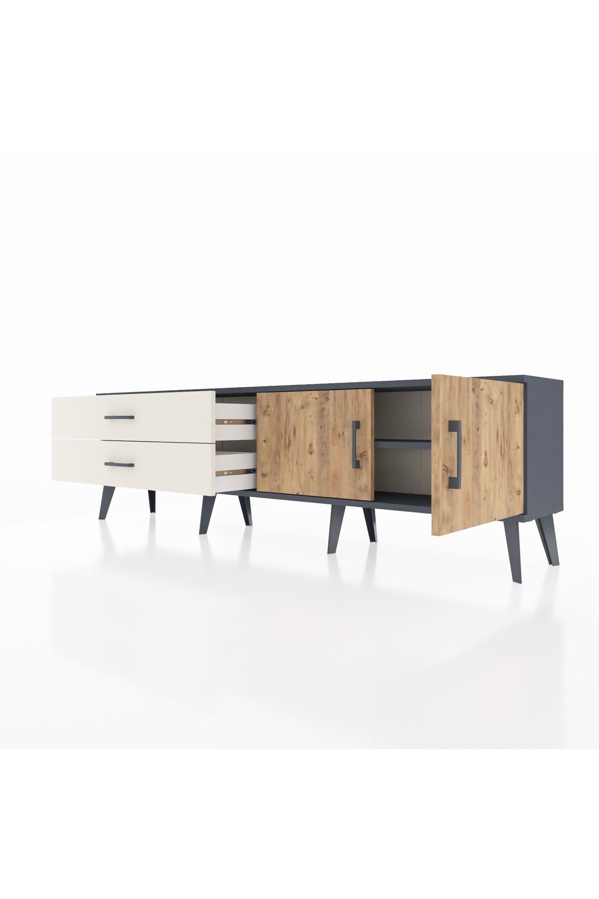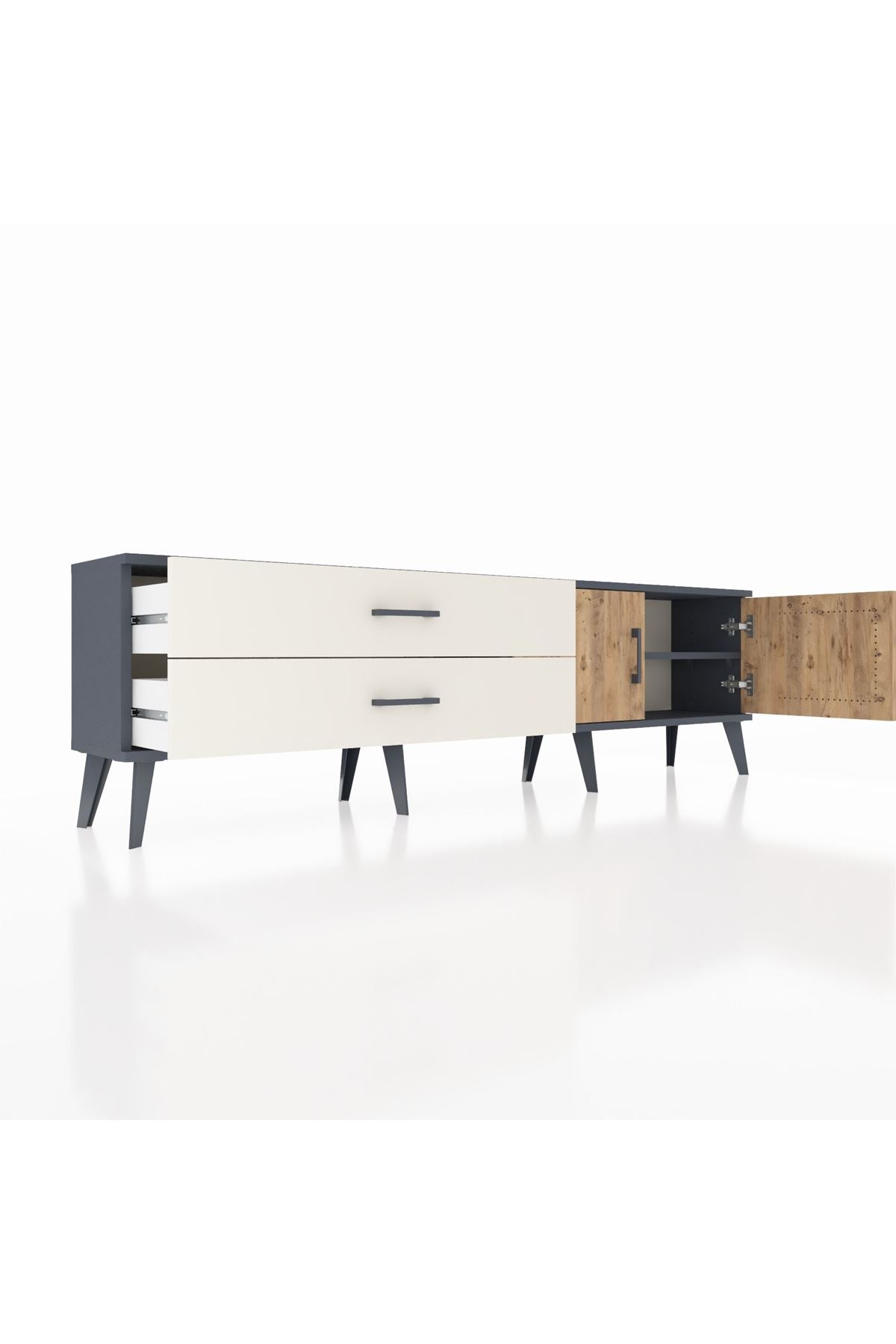 Arges TV Ünitesi Tek Raflı 2 Çekmeceli 2 Kapaklı 176x30x51 Antrasit-Çam/Aytaşı