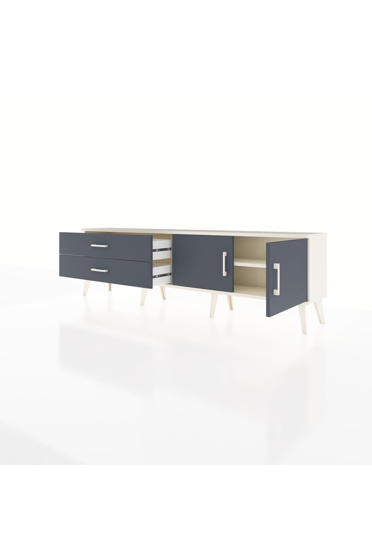 Arges TV Ünitesi Tek Raflı 2 Çekmeceli 2 Kapaklı 176x30x51 Aytaşı-Antrasit/Antrasit