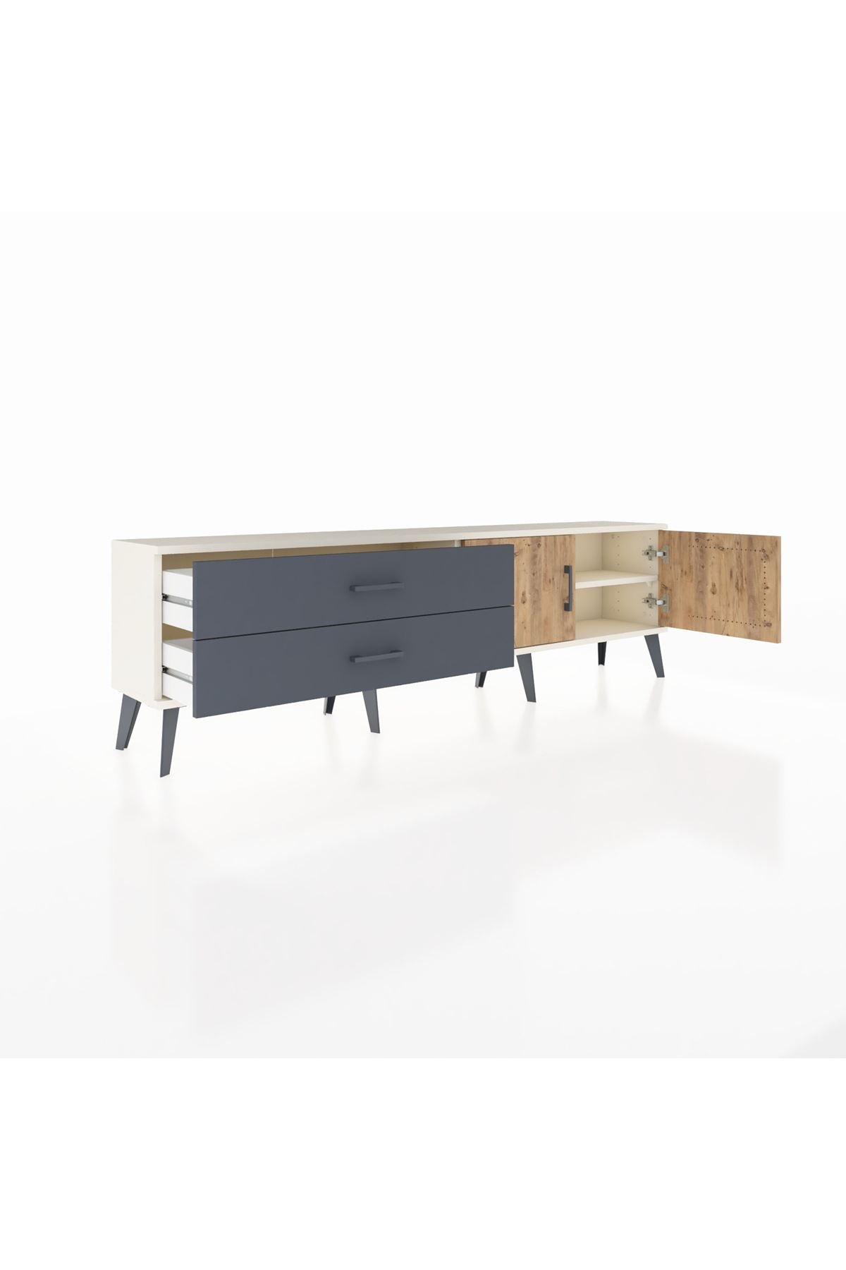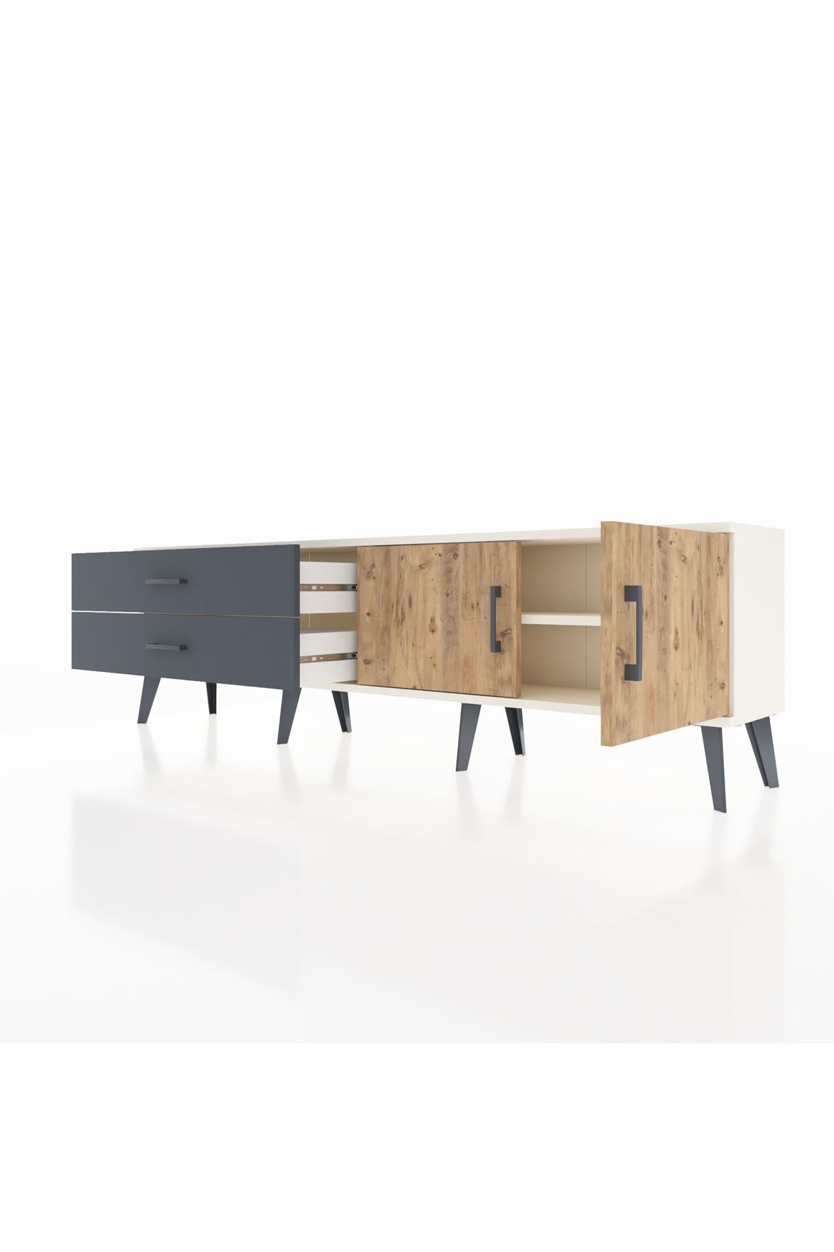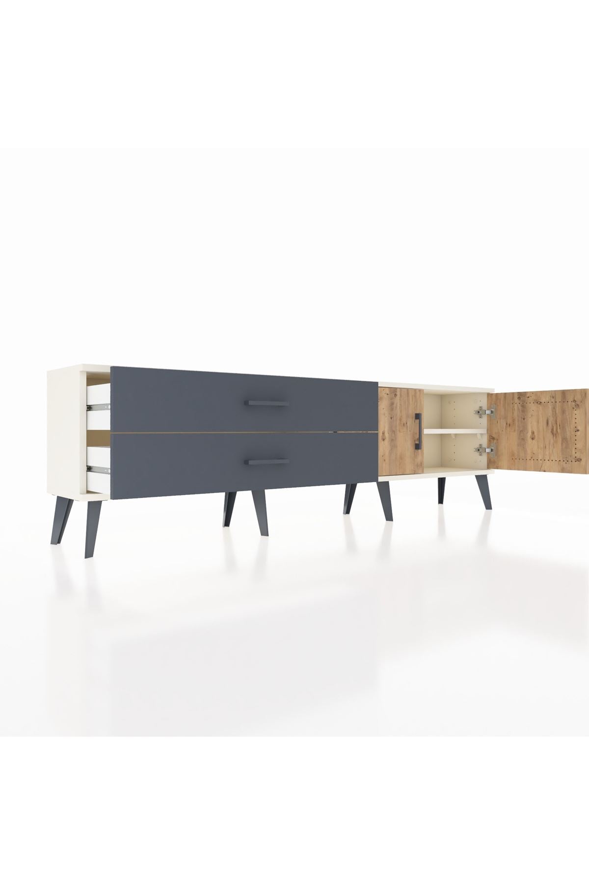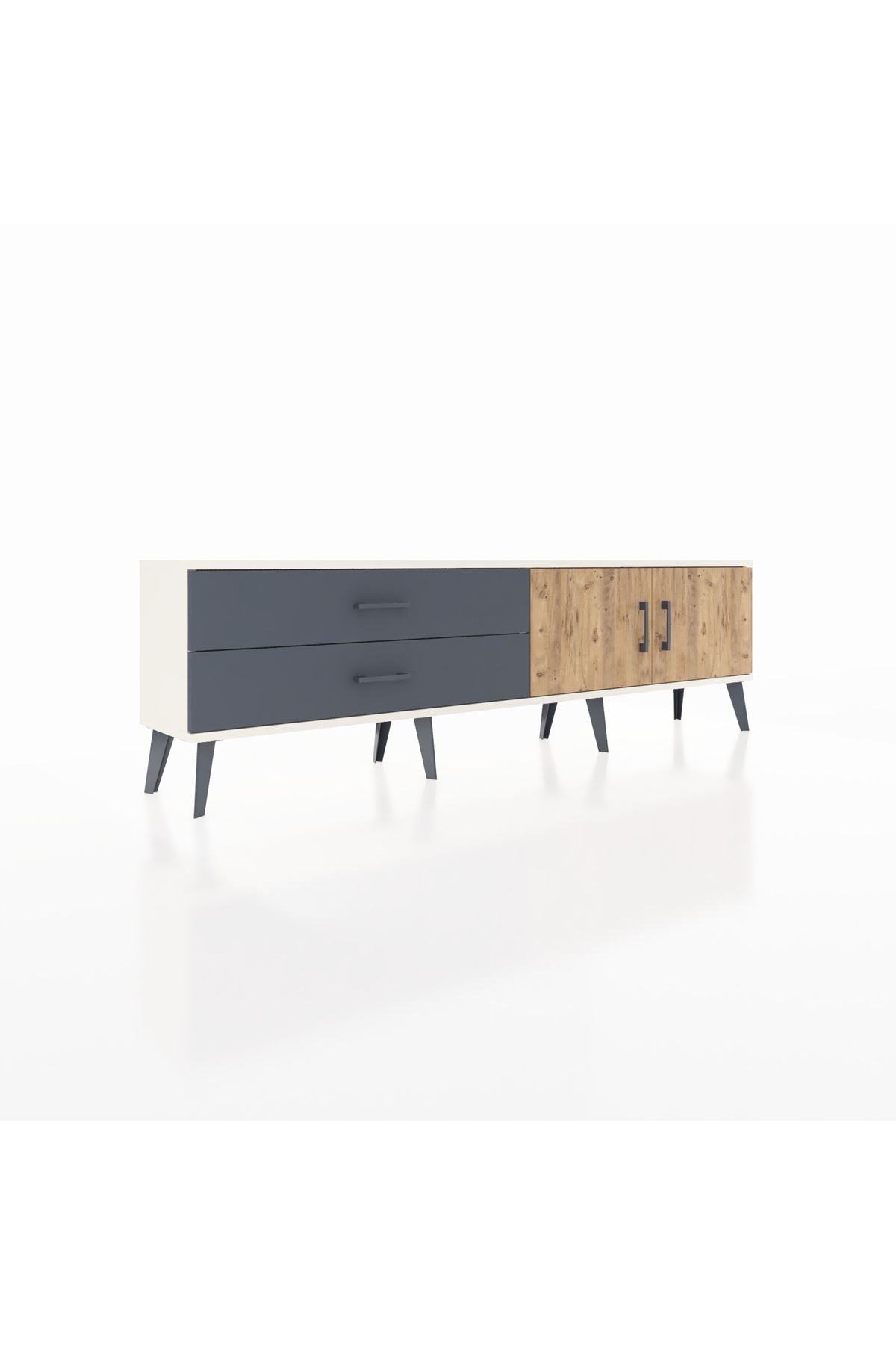 Arges TV Ünitesi Tek Raflı 2 Çekmeceli 2 Kapaklı 176x30x51 Aytaşı-Çam/Antrasit