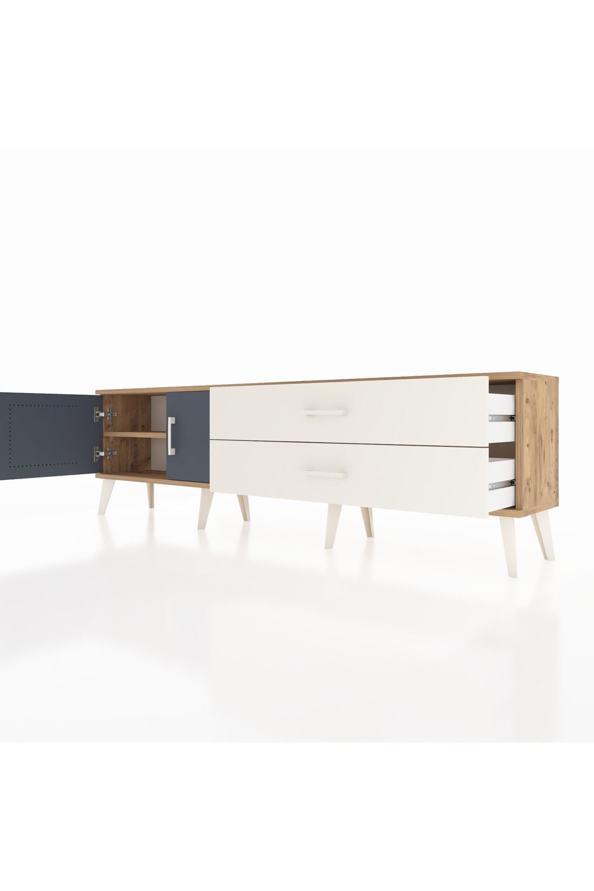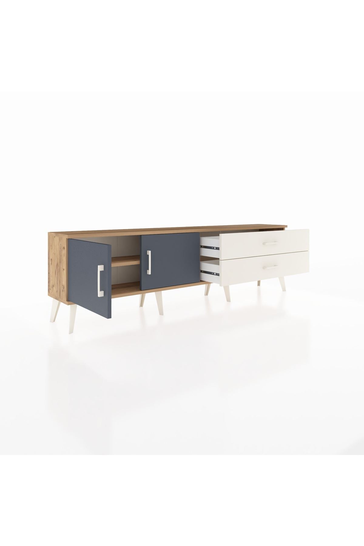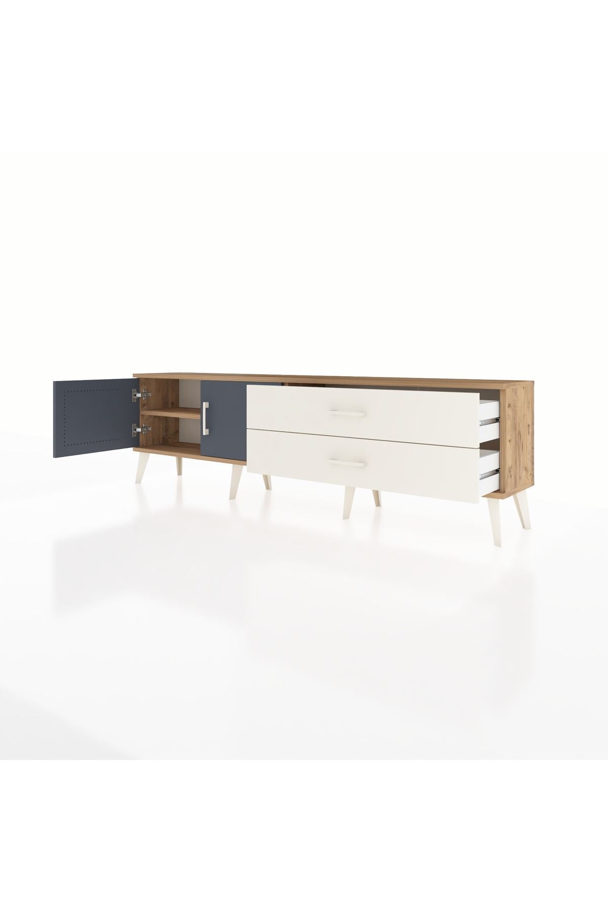 Arges TV Ünitesi Tek Raflı 2 Çekmeceli 2 Kapaklı 176x30x51 Çam-Antrasit/Aytaşı