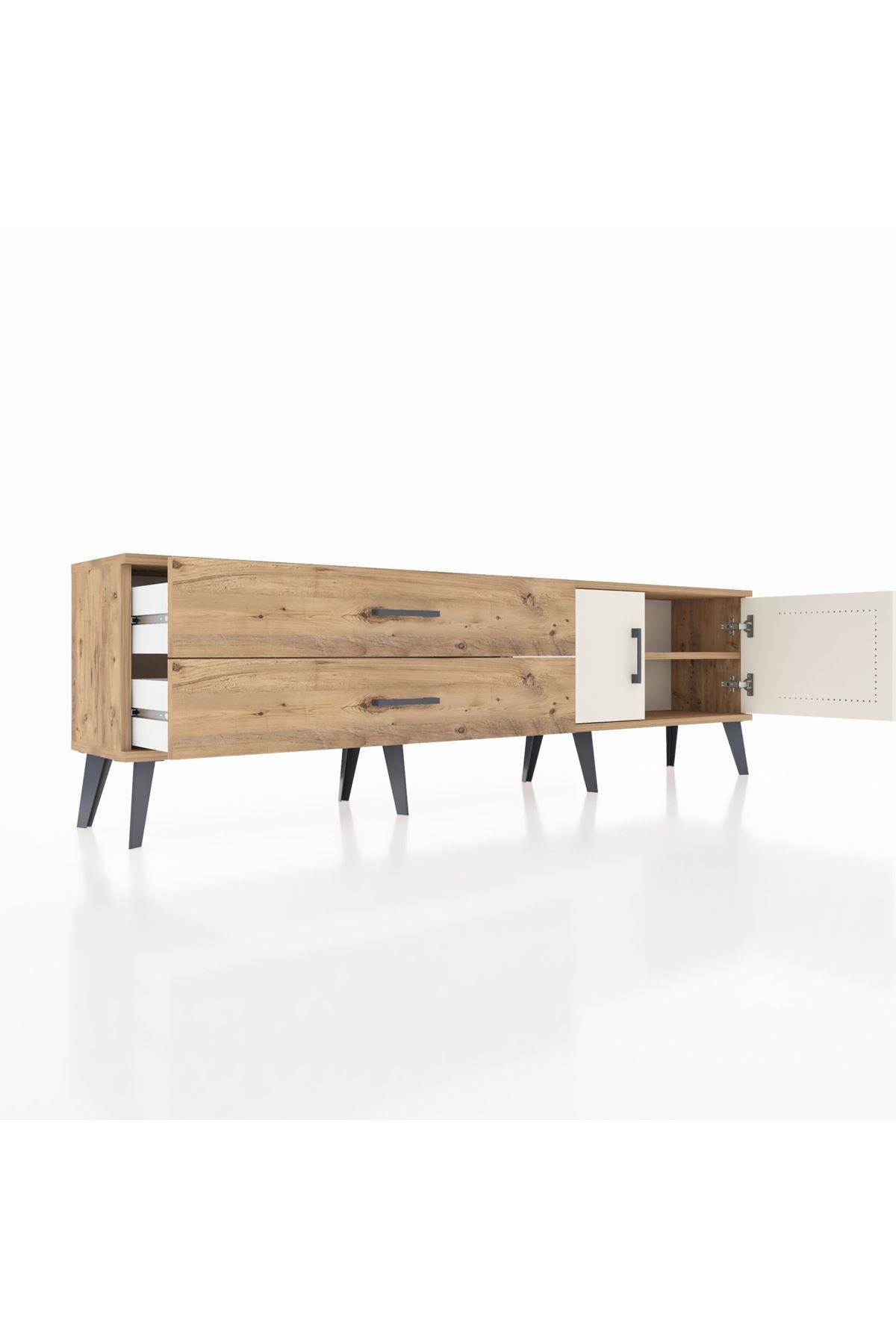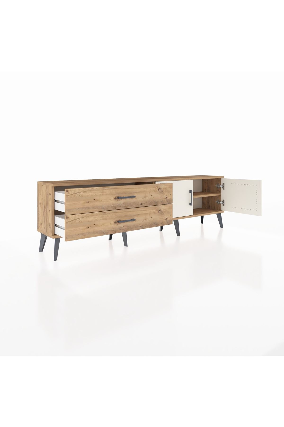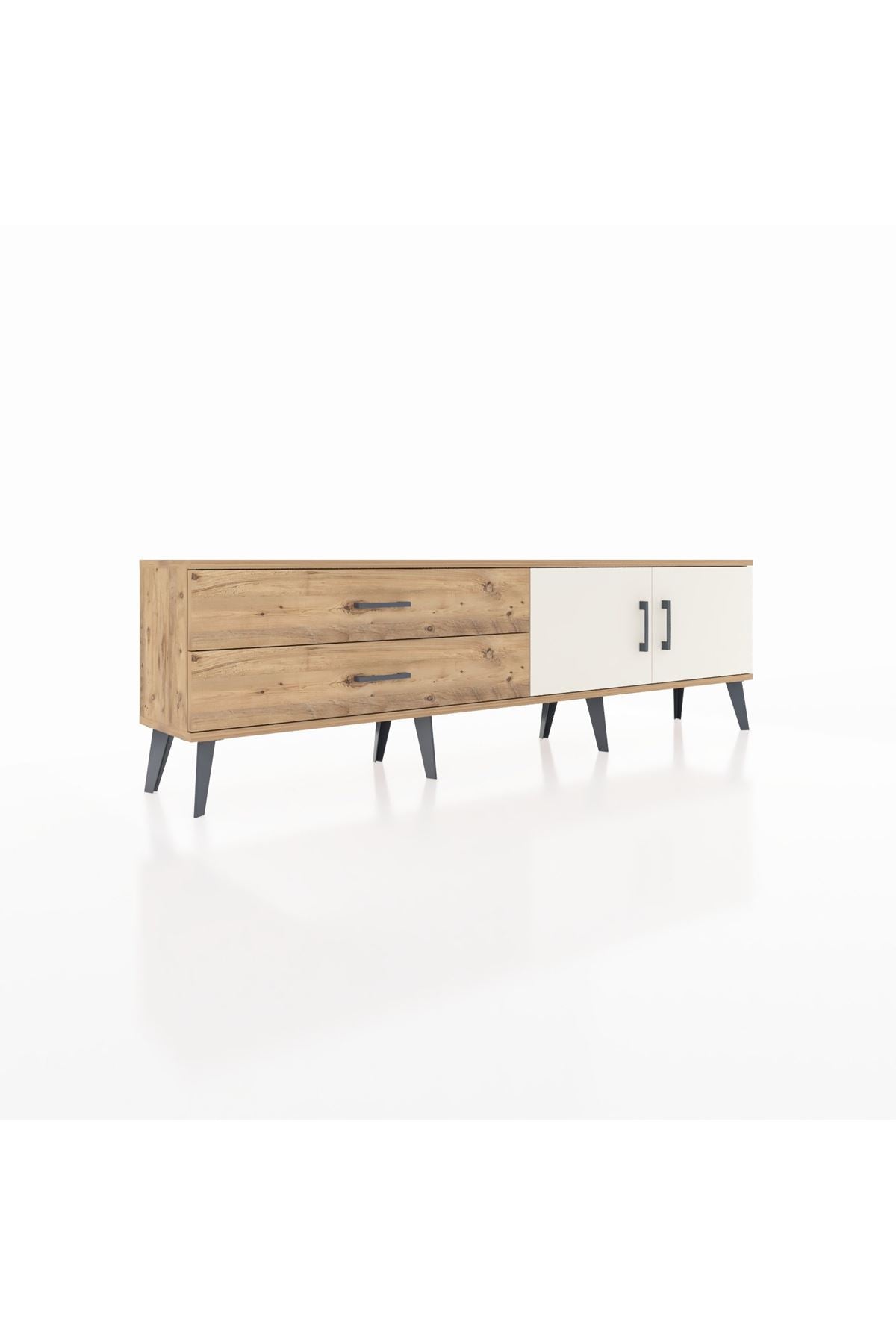 Arges TV Ünitesi Tek Raflı 2 Çekmeceli 2 Kapaklı 176x30x51 Çam-Aytaşı/Çam