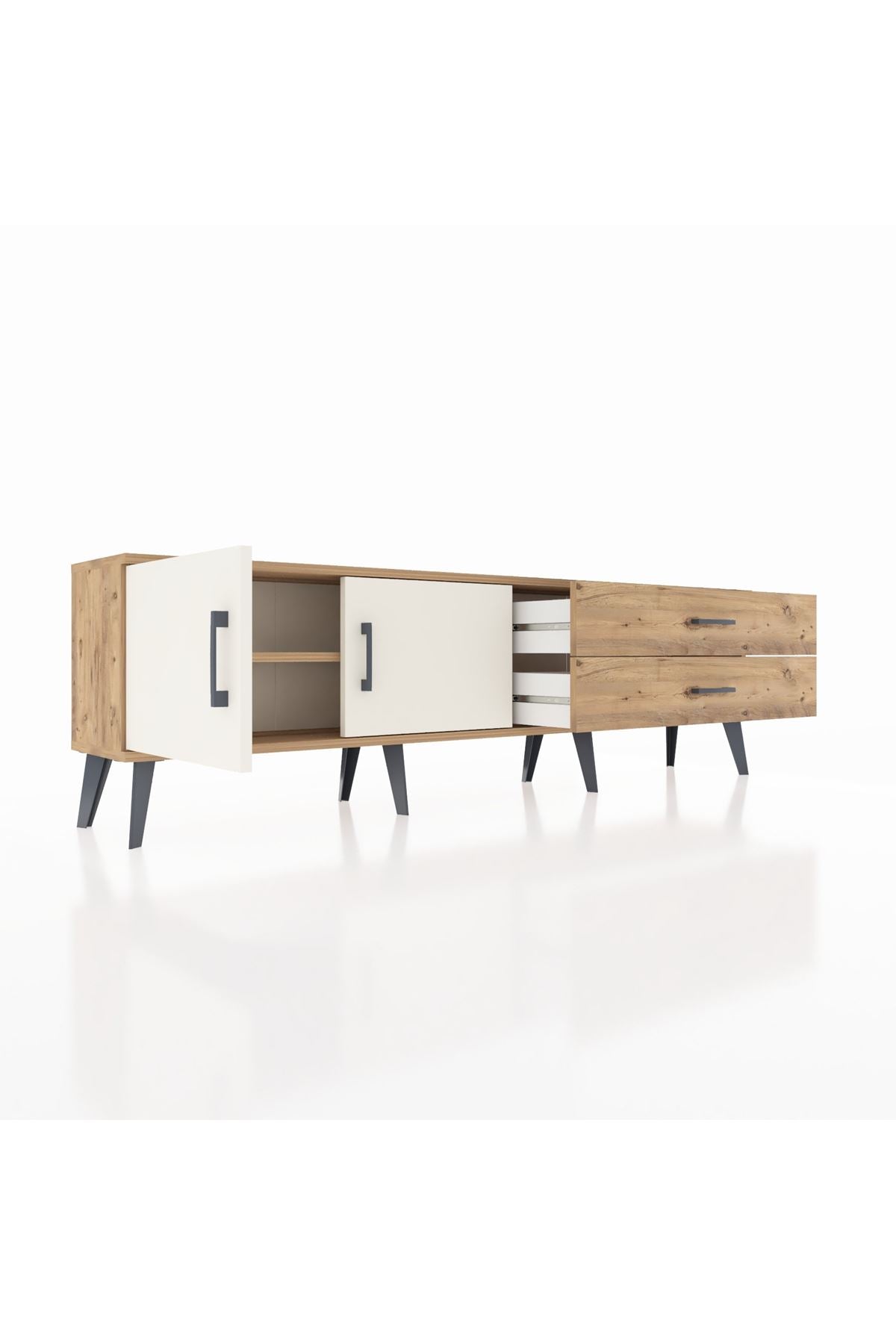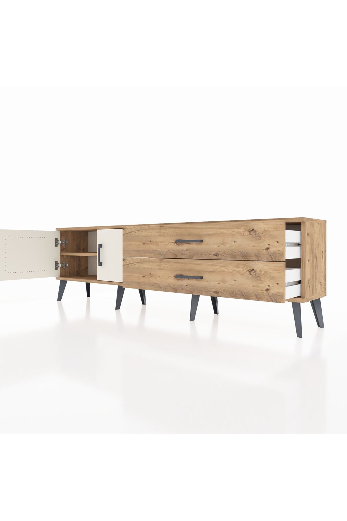 Arges TV Ünitesi Tek Raflı 2 Çekmeceli 2 Kapaklı 176x30x51 Çam-Aytaşı/Çam