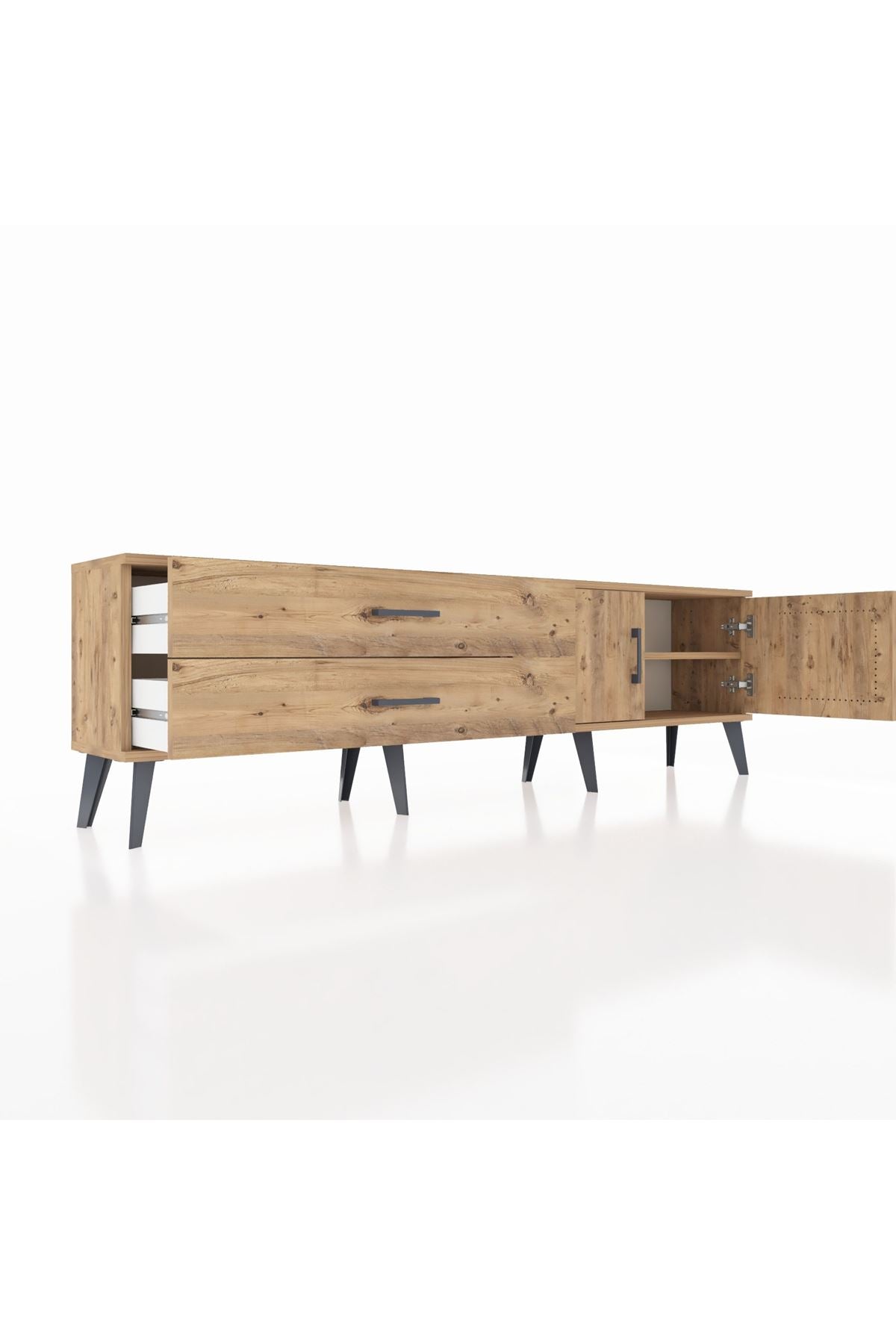 Arges TV Ünitesi Tek Raflı 2 Çekmeceli 2 Kapaklı 176x30x51 Çam-Çam/Çam