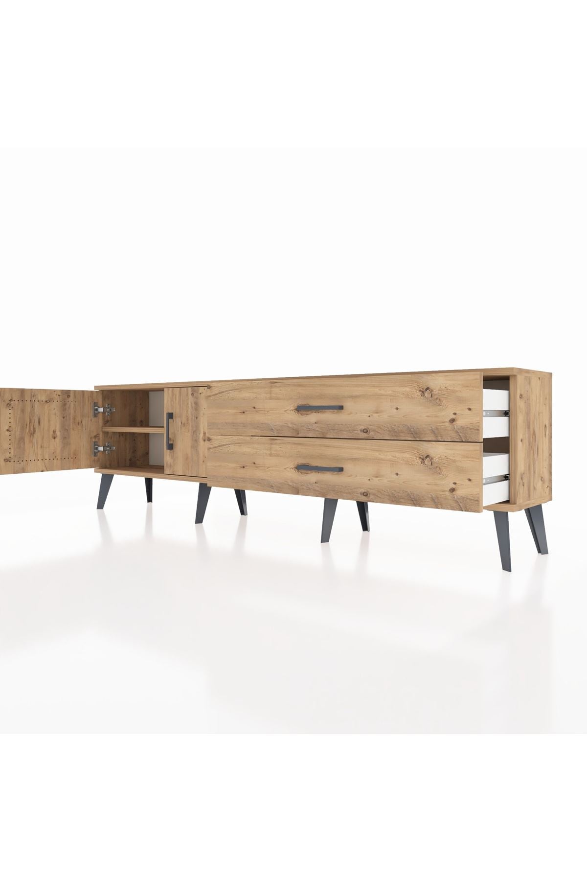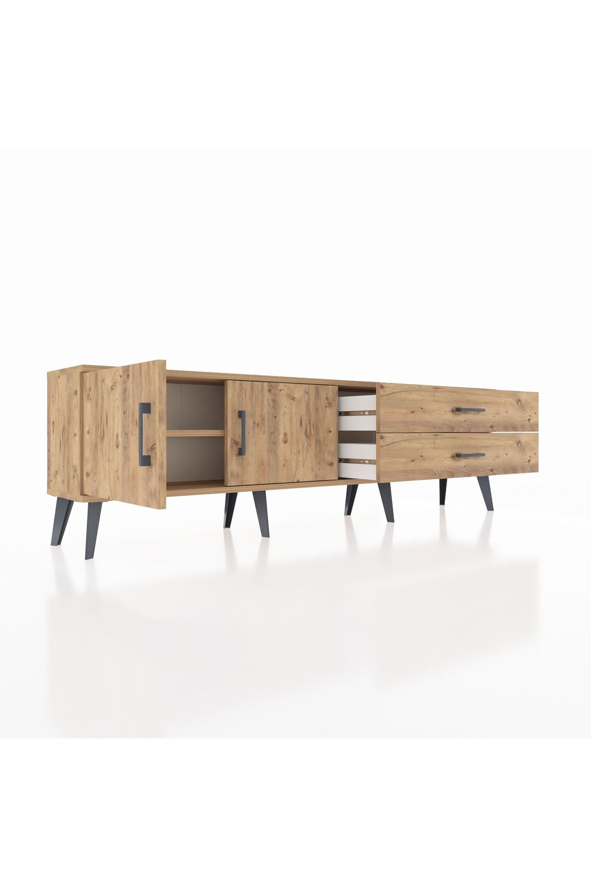 Arges TV Ünitesi Tek Raflı 2 Çekmeceli 2 Kapaklı 176x30x51 Çam-Çam/Çam