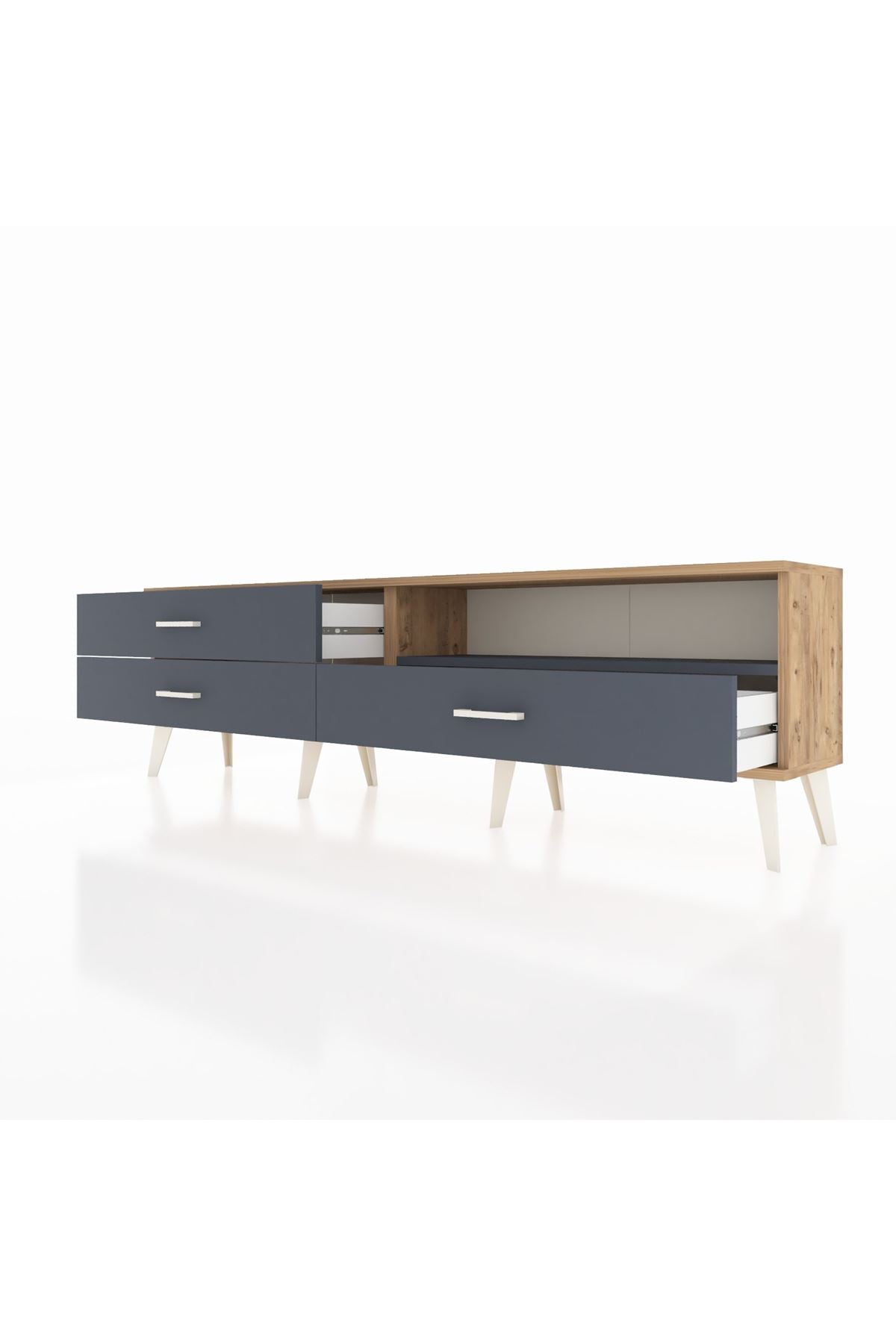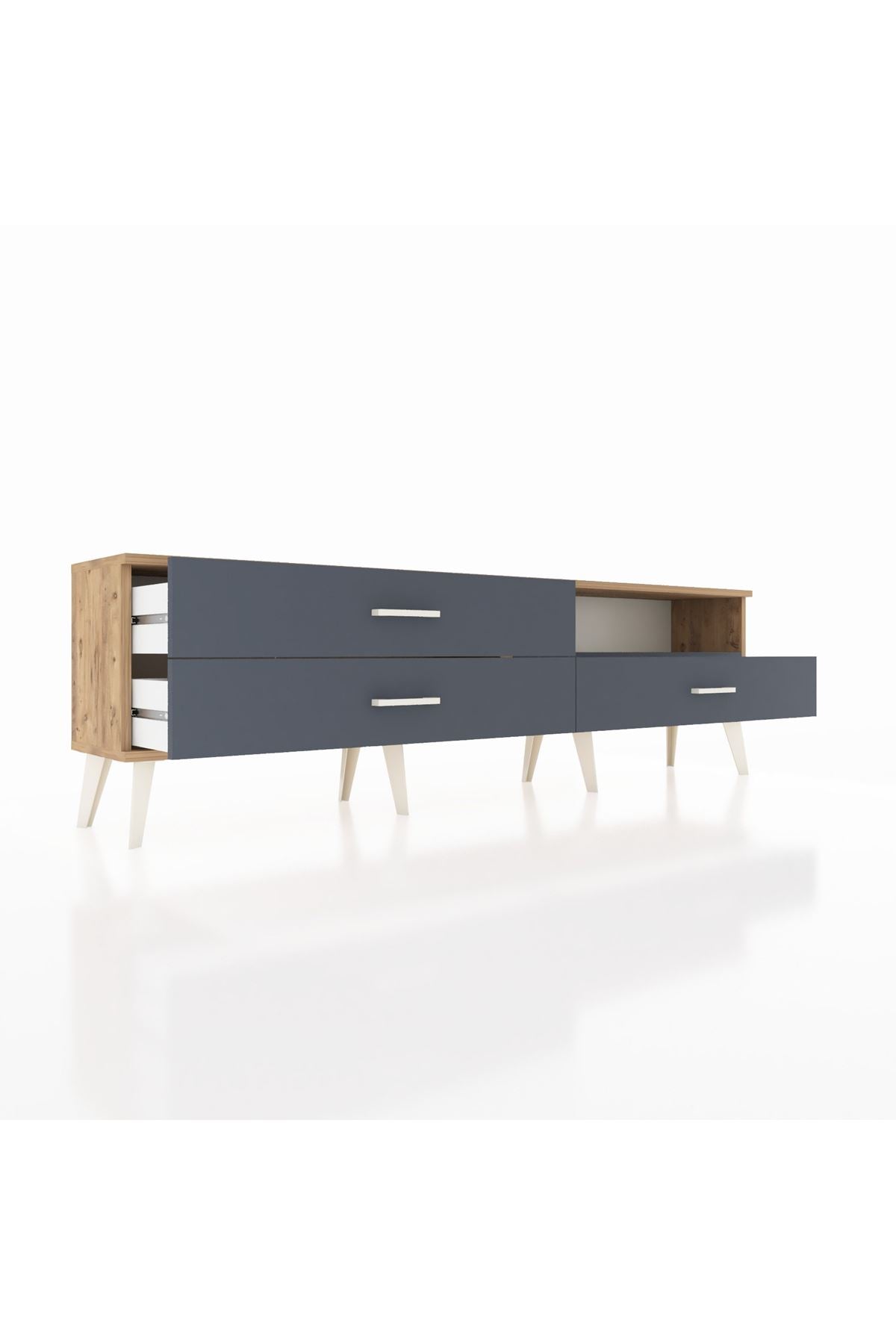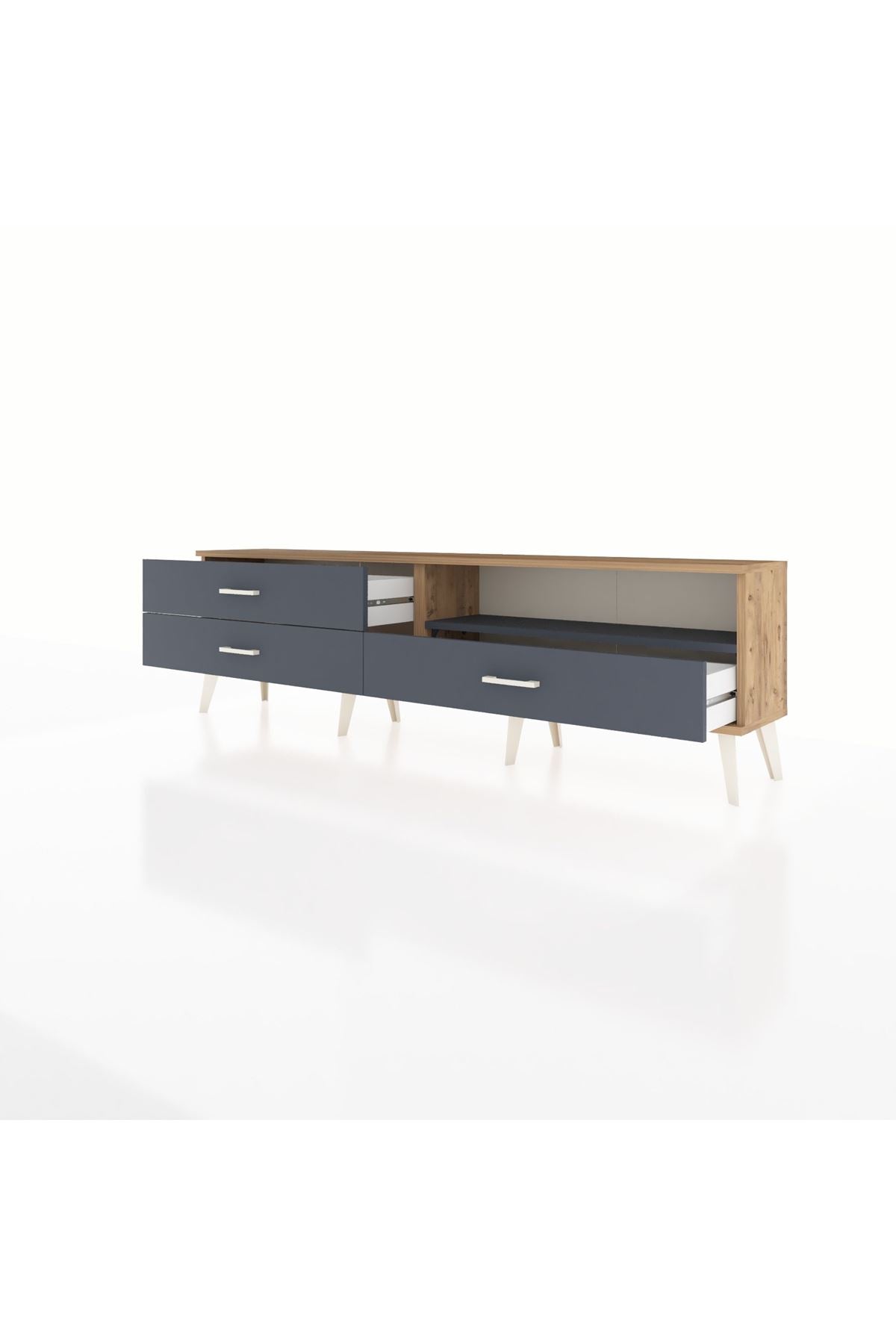 Arges TV Ünitesi Tek Raflı 3 Çekmeceli 176x30x51 Çam-Antrasit/Antrasit