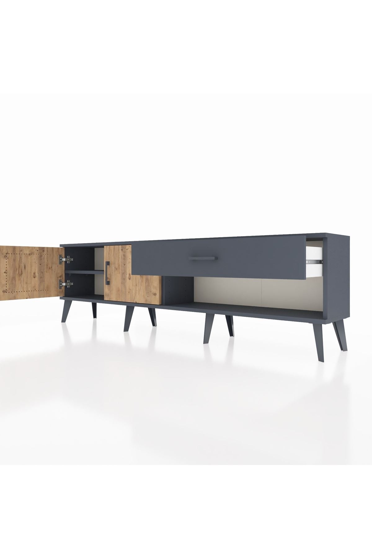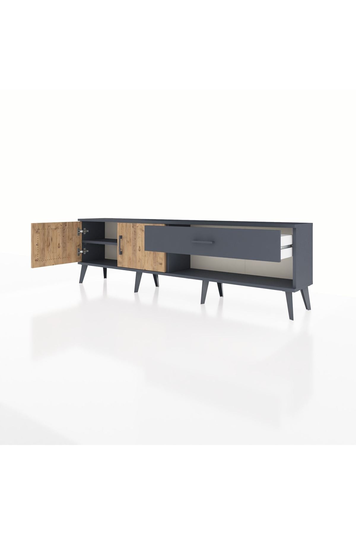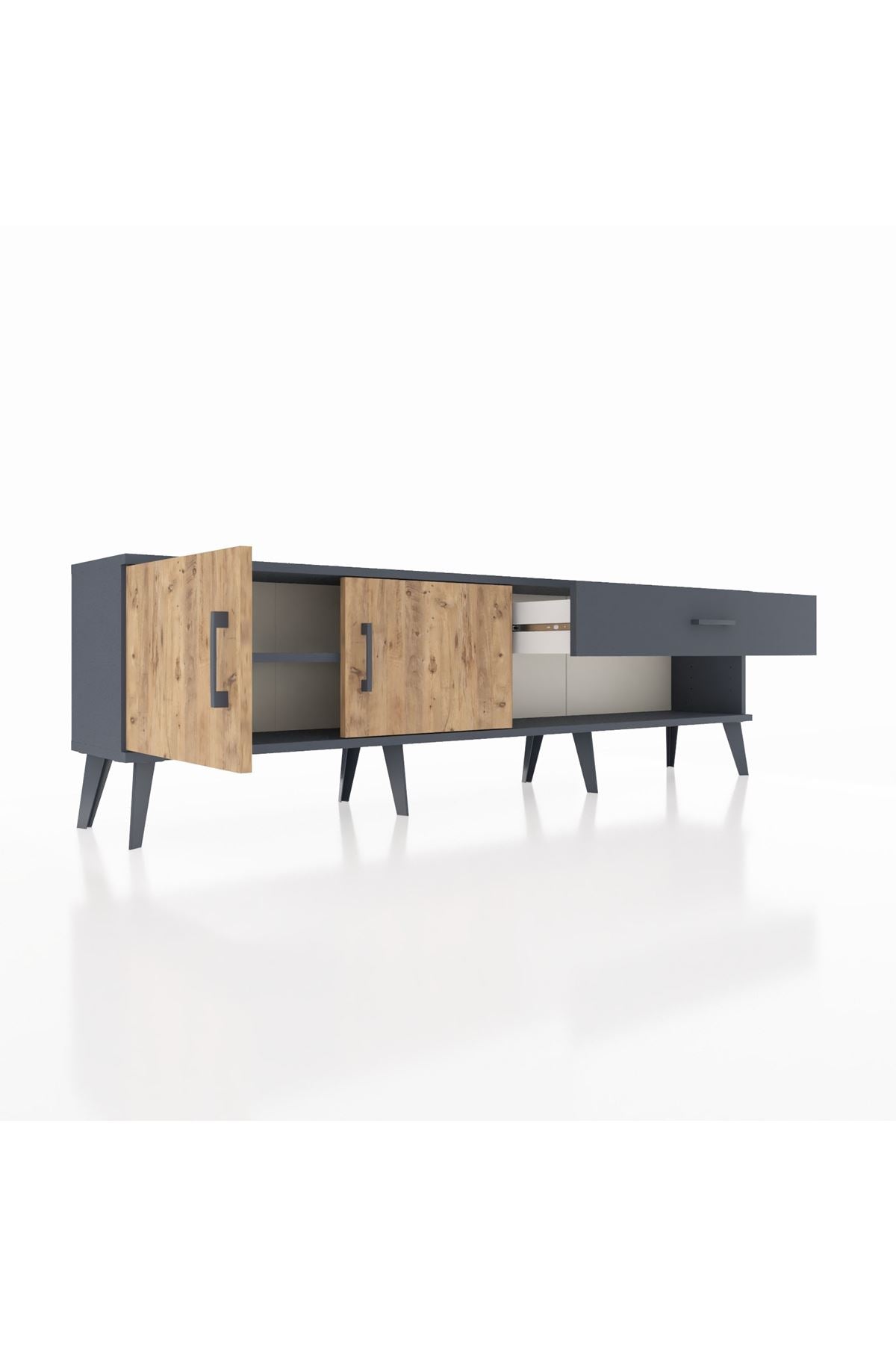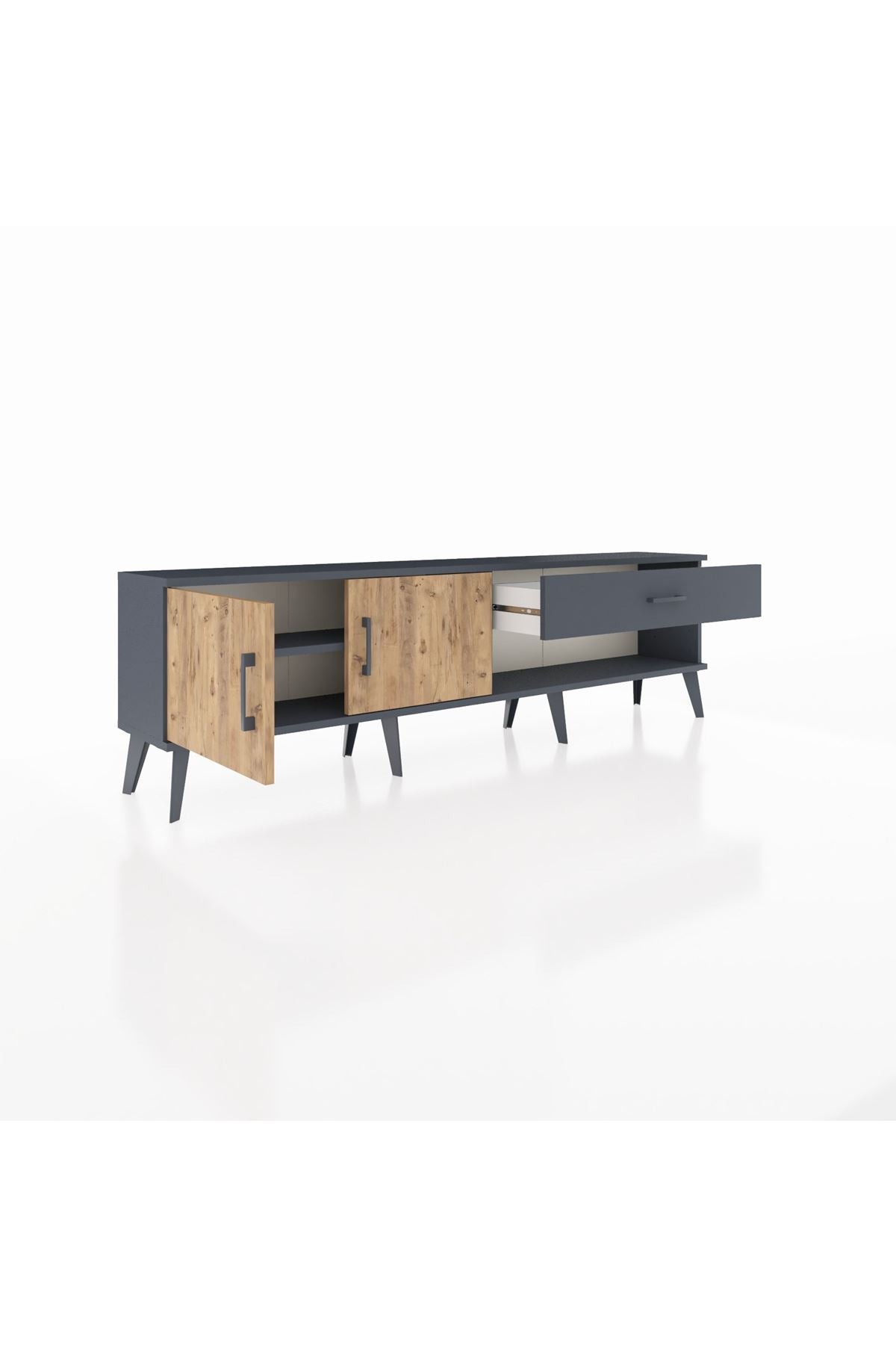 Arges TV Ünitesi Tek Raflı Tek Çekmeceli 2 Kapaklı 176x30x51 Antrasit-Çam/Antrasit