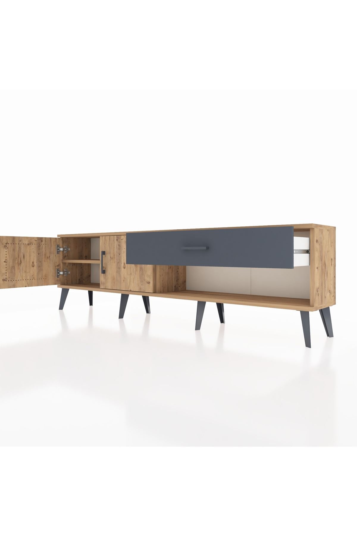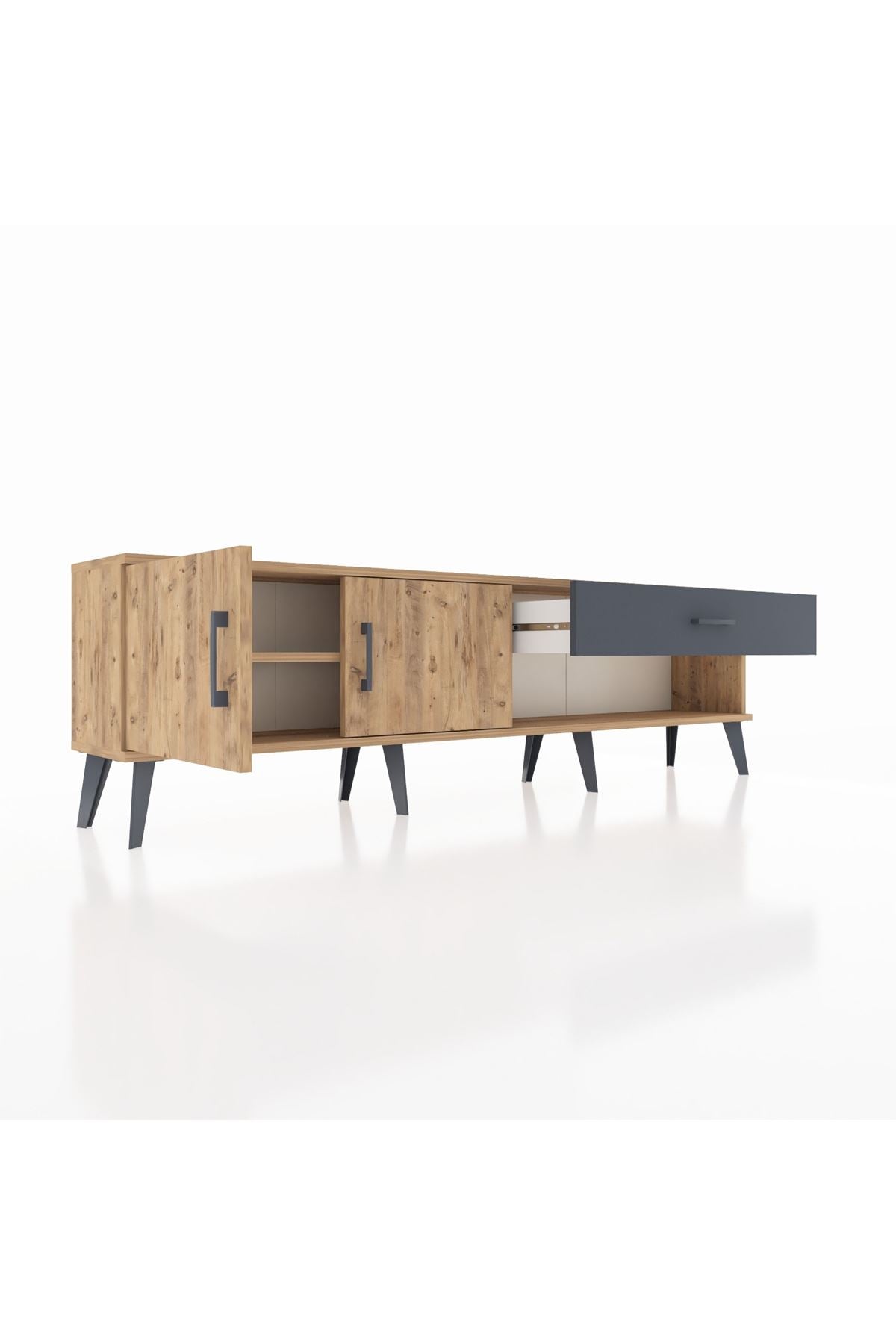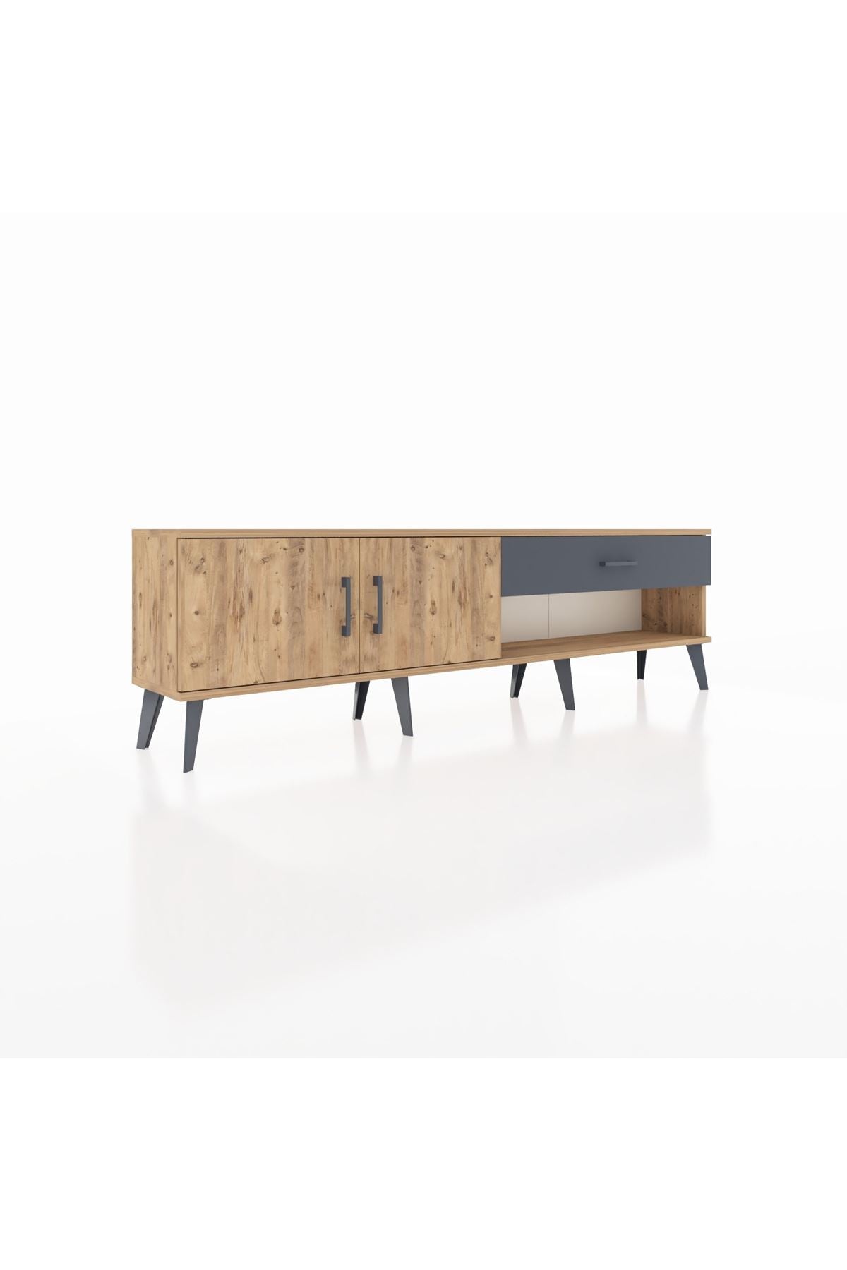 Arges TV Ünitesi Tek Raflı Tek Çekmeceli 2 Kapaklı 176x30x51 Çam-Çam/Antrasit