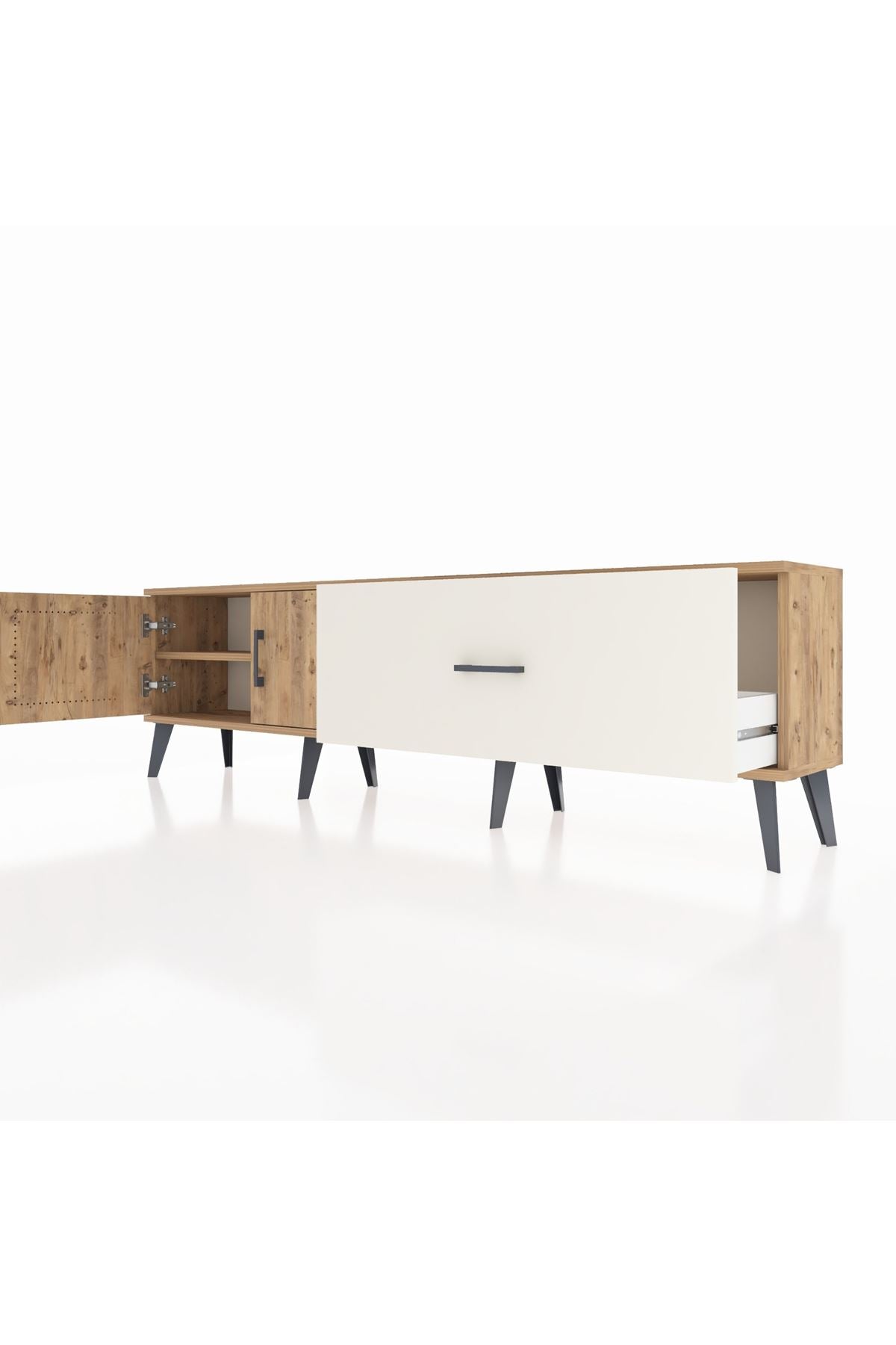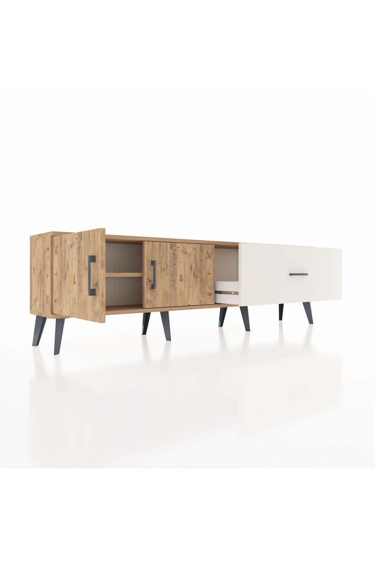 Arges TV Ünitesi Tek Raflı Tek Çekmeceli 2 Kapaklı 176x30x51 Çam-Çam/Aytaşı