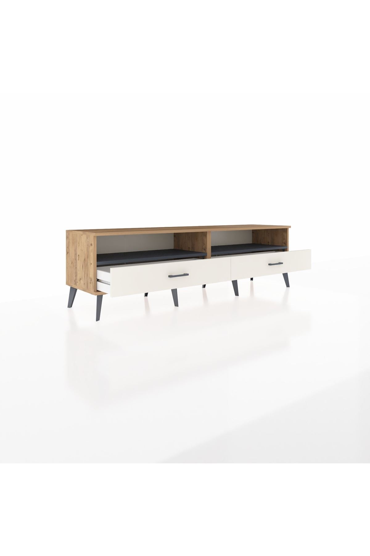 🔧 Ünitenin 2 raf ve 2 çekmece tasarımı, geniş depolama kapasitesi sunarken, pratiklikten de ödün vermiyor. Çekmeceler 23 cm açılma mesafesi sunar. Robot süpürge uyumlu ayak yüksekliği, temizlikte konfor sağlıyor.