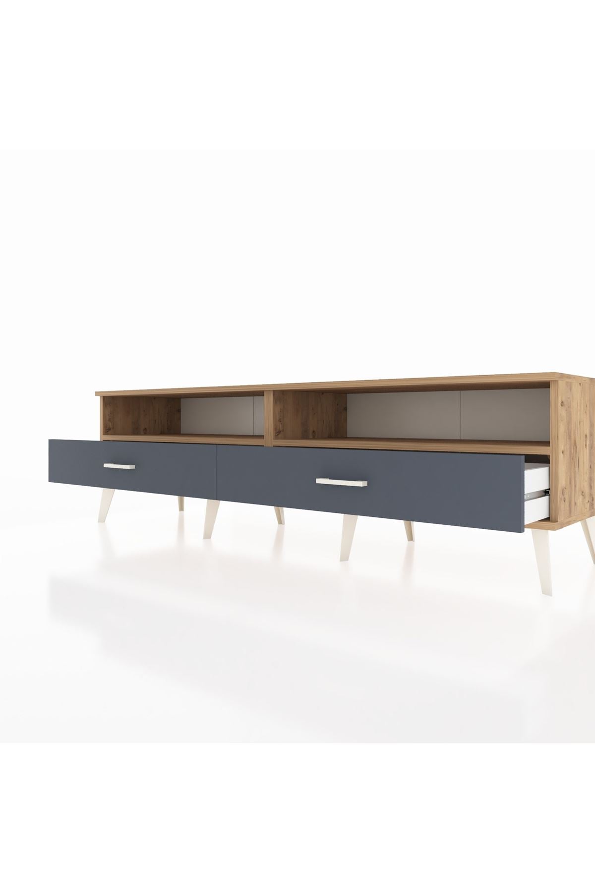 Hyperion TV Ünitesi 2 Raflı 2 Çekmeceli 176x44x51 Çam-Çam/Antrasit