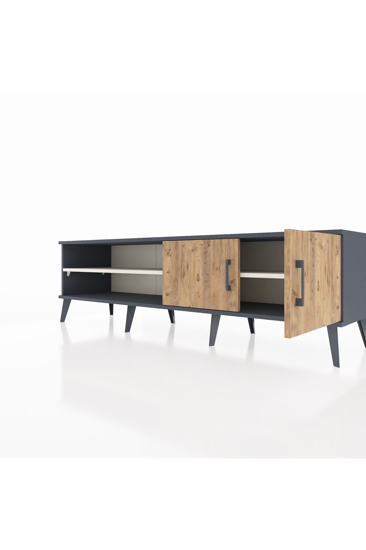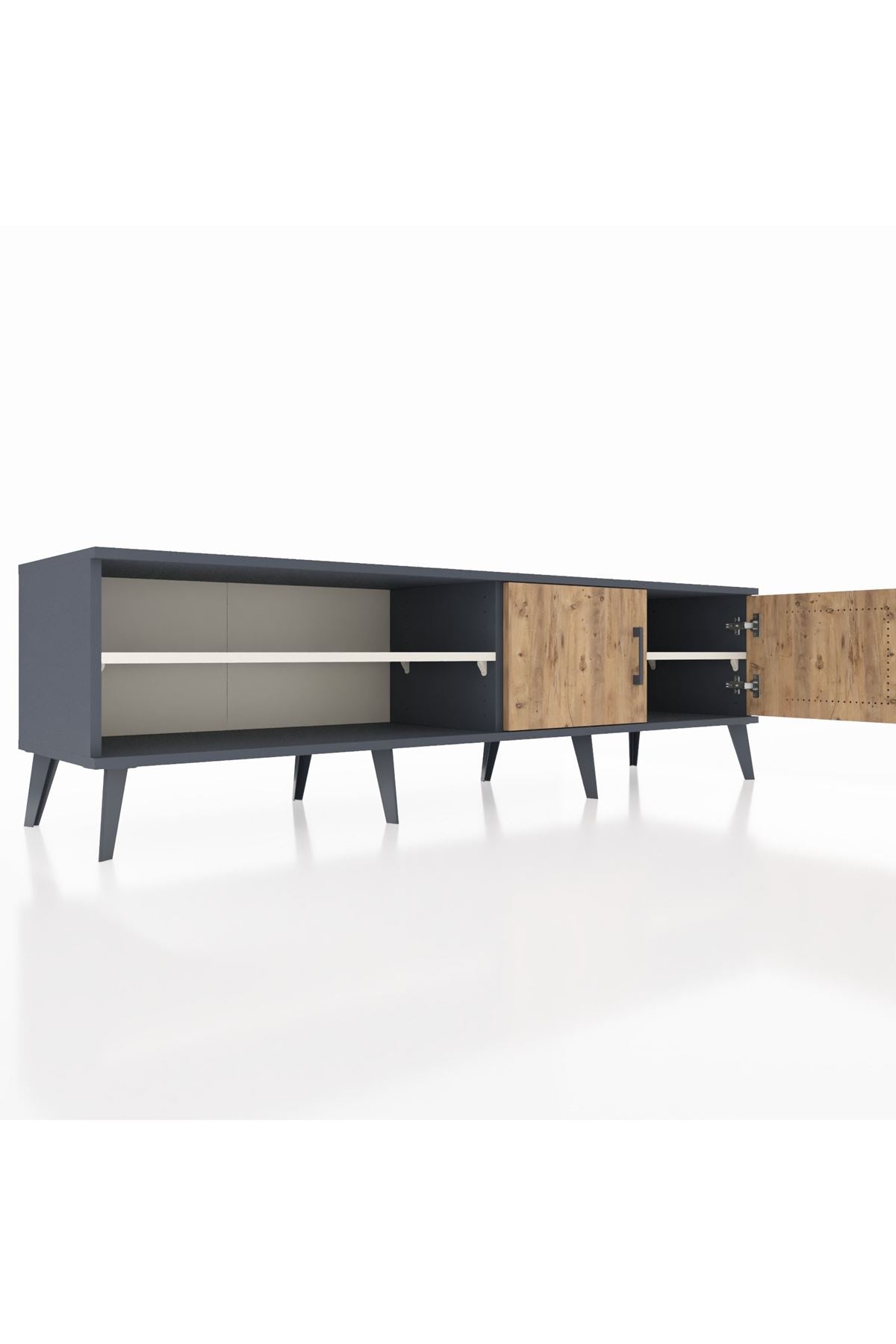 Hyperion TV Ünitesi 2 Raflı 2 Kapaklı 176x44x51 Antrasit-Çam/Aytaşı