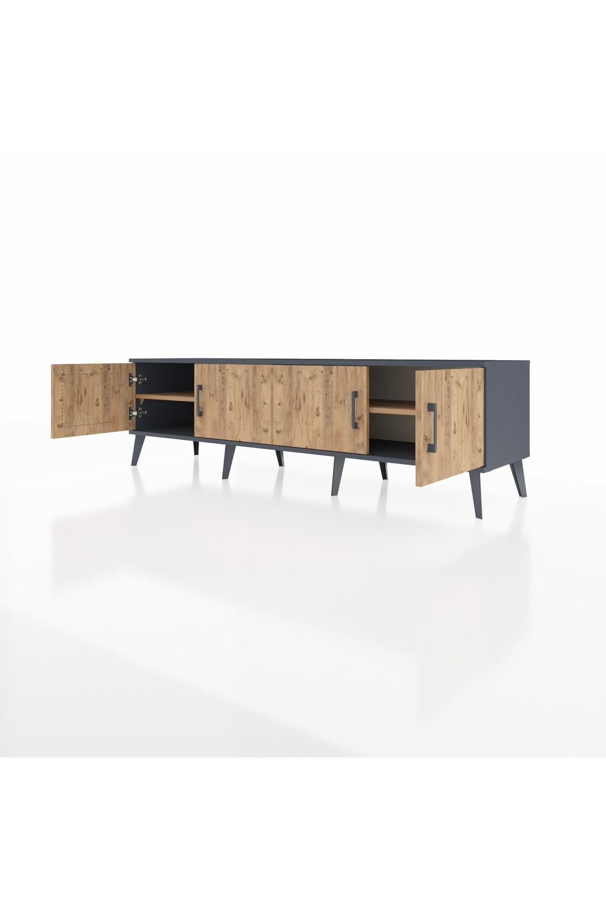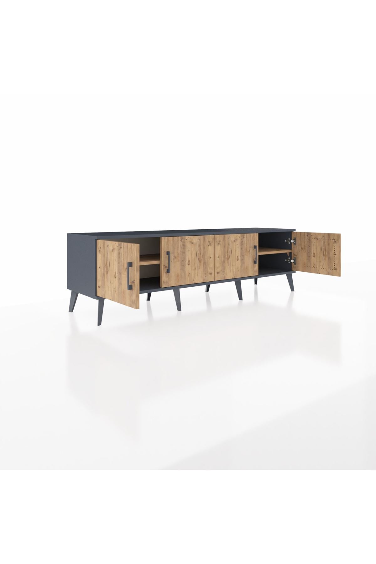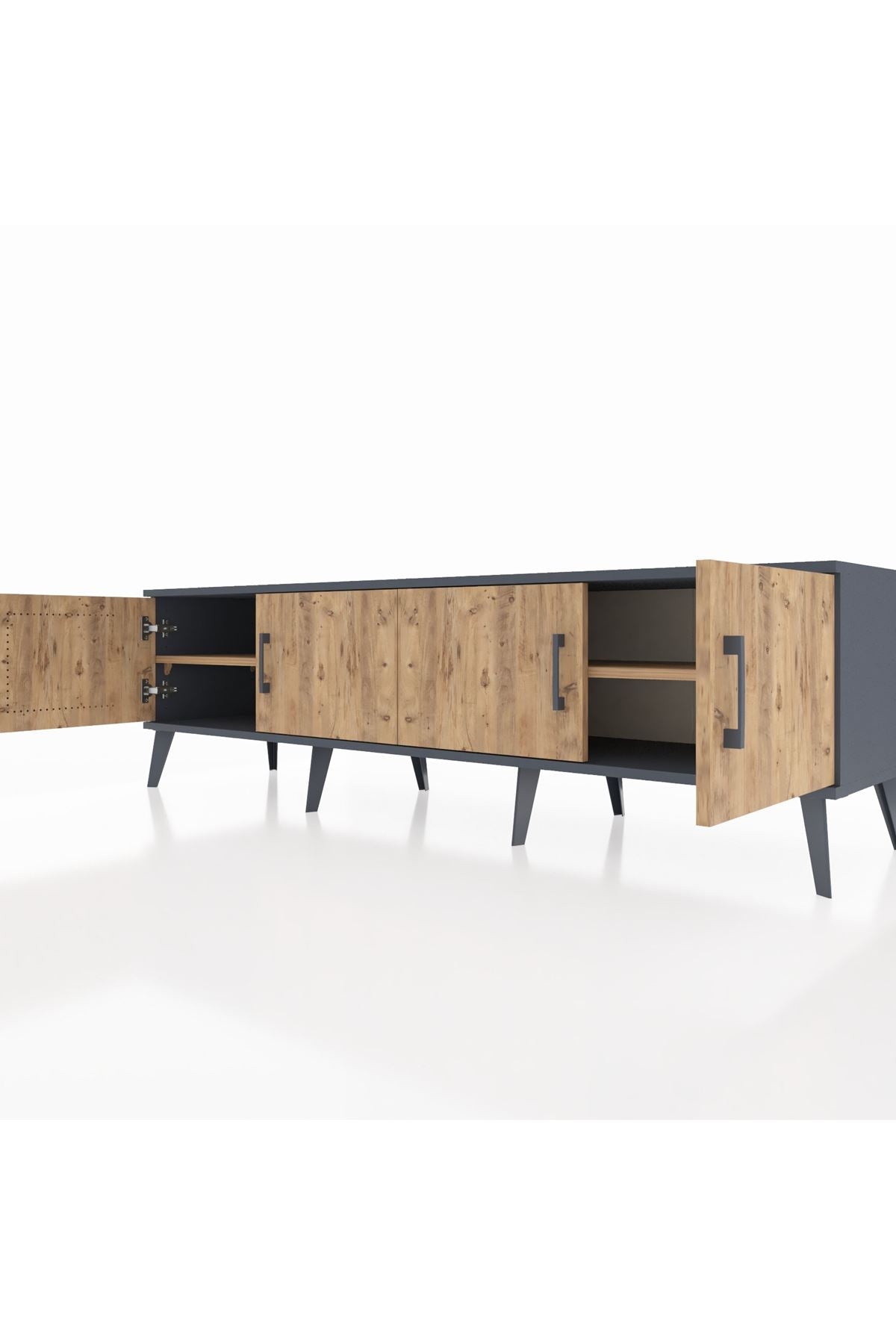 Hyperion TV Ünitesi 2 Raflı 4 Kapaklı 176x44x51 Antrasit-Çam/Çam
