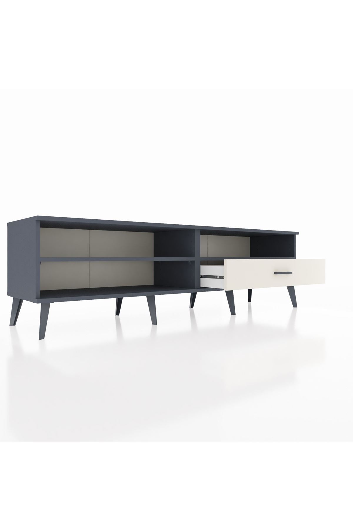 🌟 Hyperion TV Ünitesi, iki raflı ve tek çekmeceli yapısıyla 176x44x51 ölçülerinde, şık bir antrasit ve aytaşı rengi kombinasyonu sunar. Modern yaşam alanlarına estetik ve düzen katar.