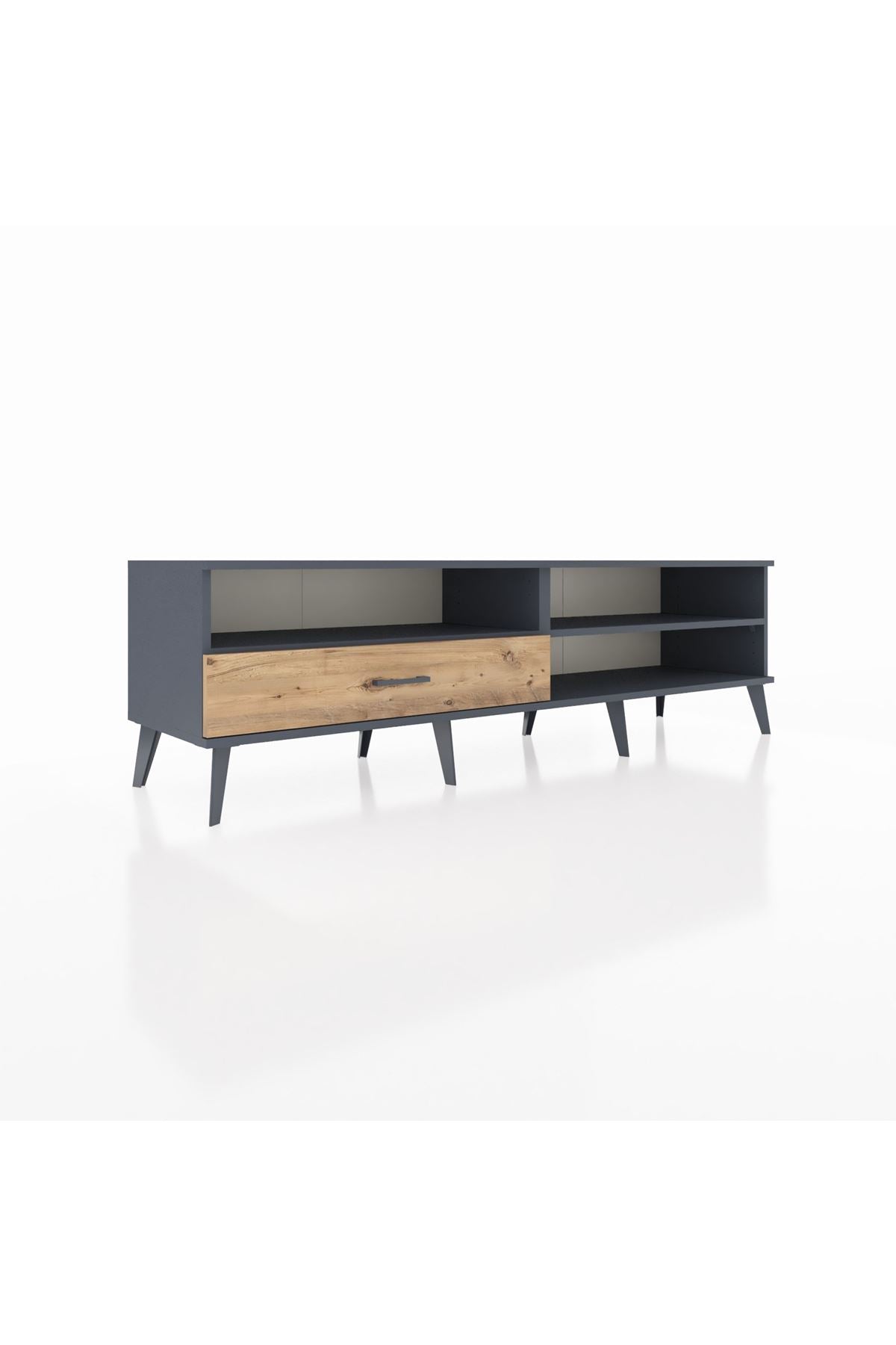 Hyperion TV Ünitesi 2 Raflı Tek Çekmeceli 176x44x51 Antrasit-Antrasit/Çam