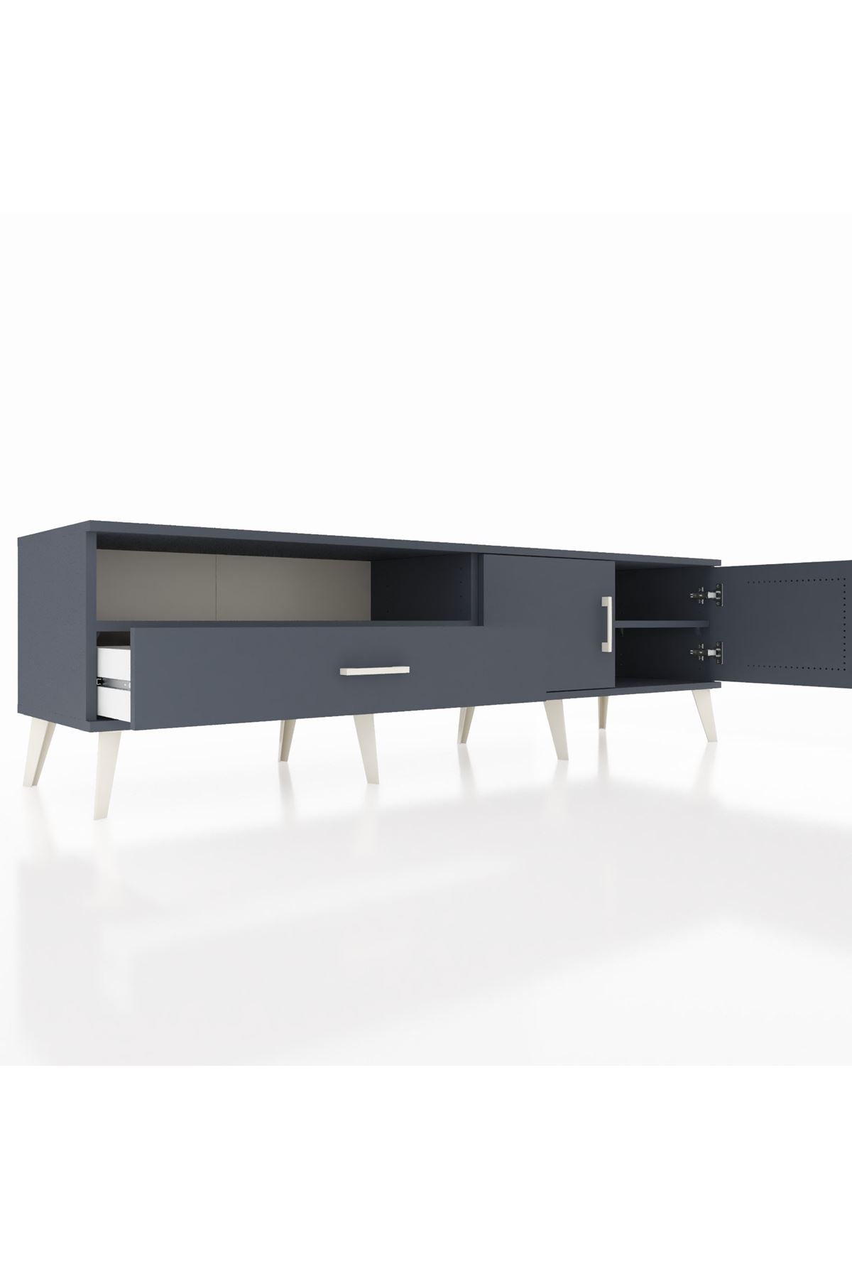 Hyperion TV Ünitesi 2 Raflı Tek Çekmeceli 2 Kapaklı 176x44x51 Antrasit-Antrasit/Antrasit