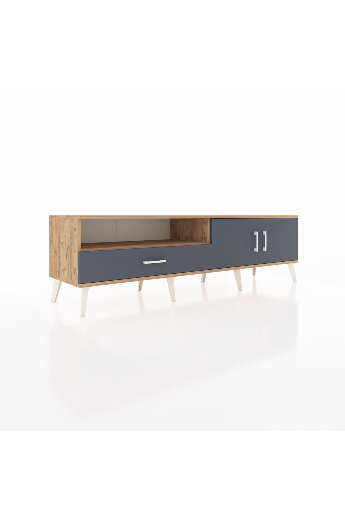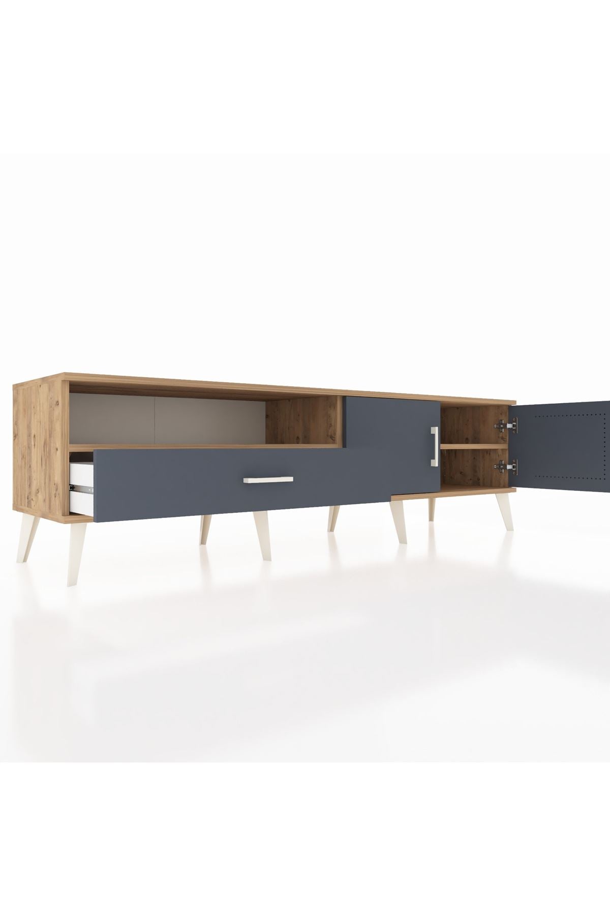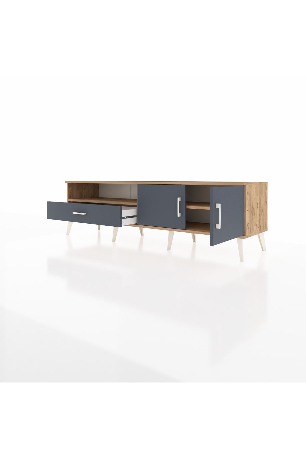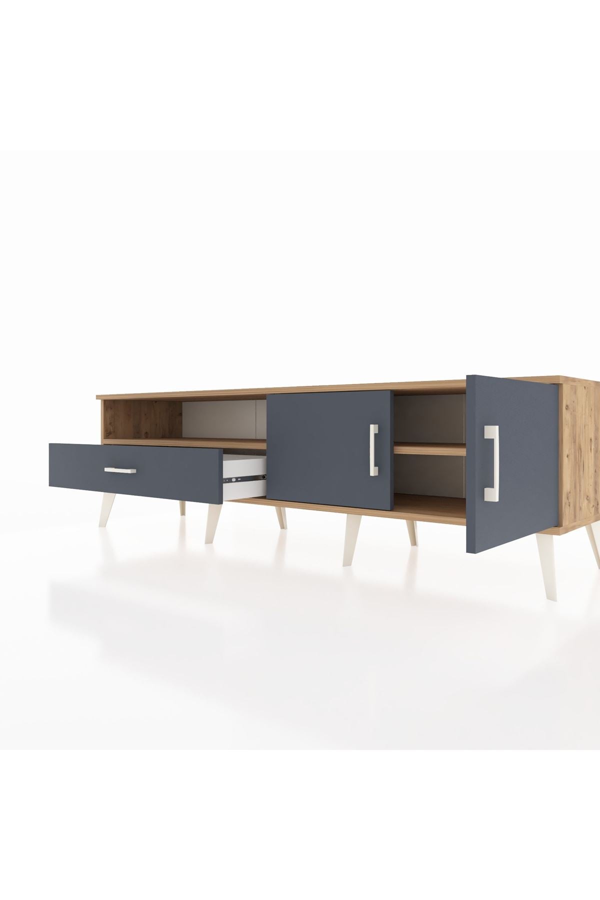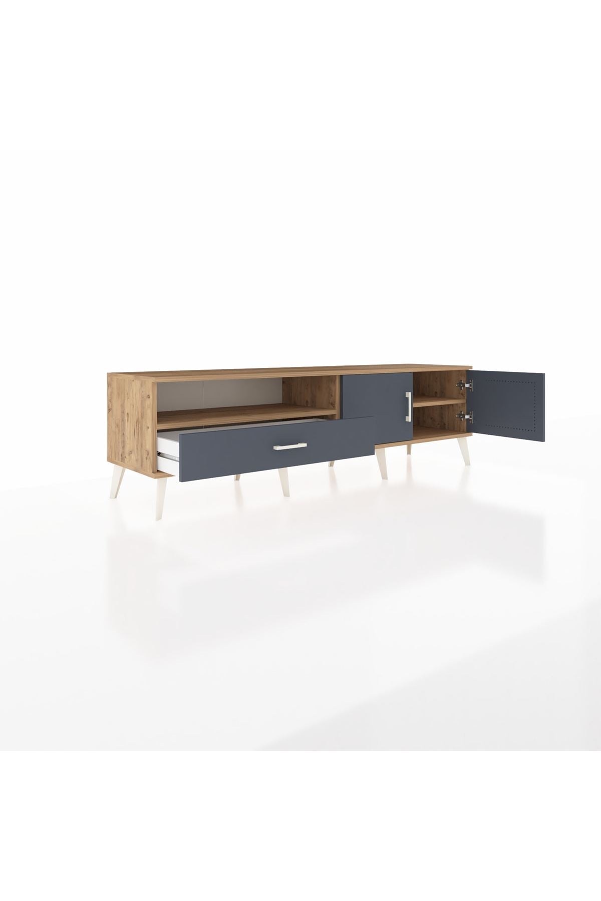 Hyperion TV Ünitesi 2 Raflı Tek Çekmeceli 2 Kapaklı 176x44x51 Çam-Antrasit/Antrasit