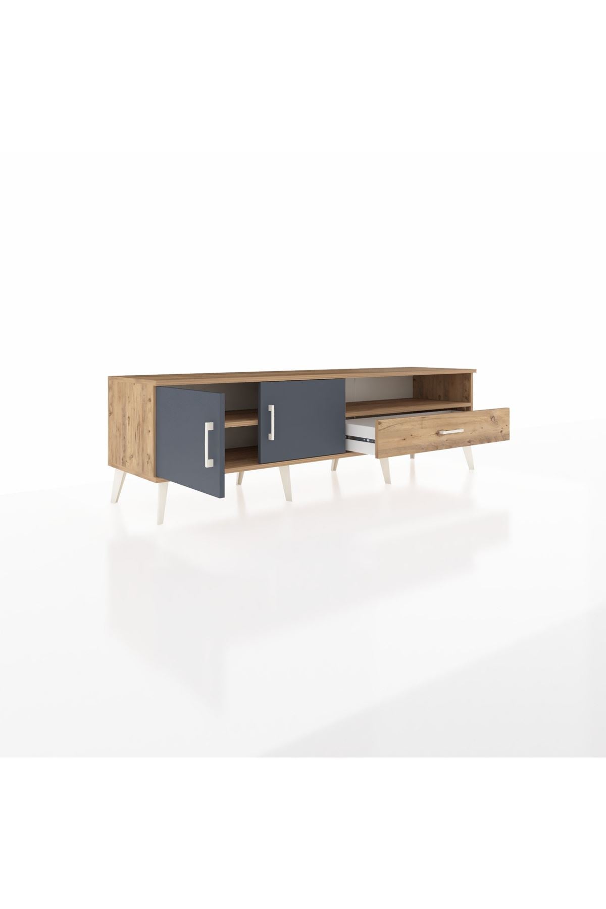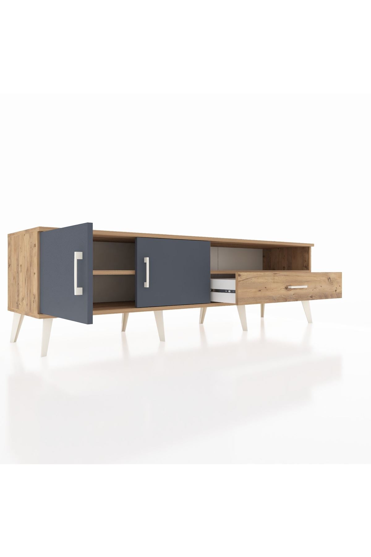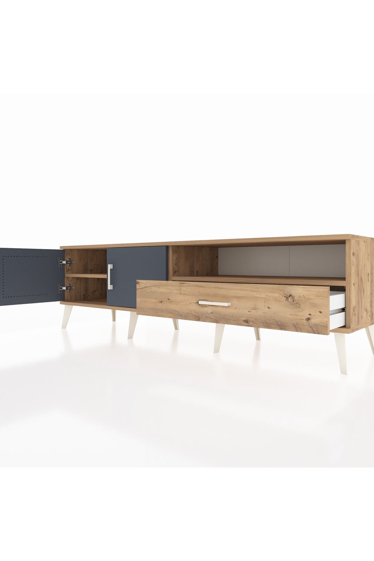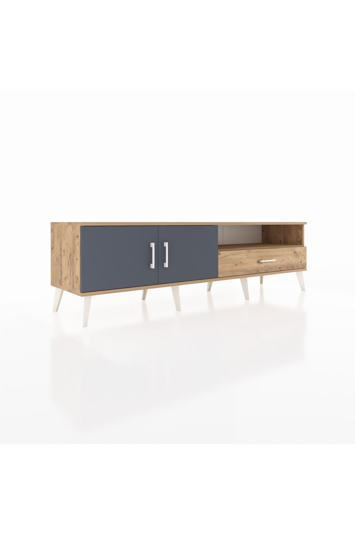 Hyperion TV Ünitesi 2 Raflı Tek Çekmeceli 2 Kapaklı 176x44x51 Çam-Antrasit/Çam