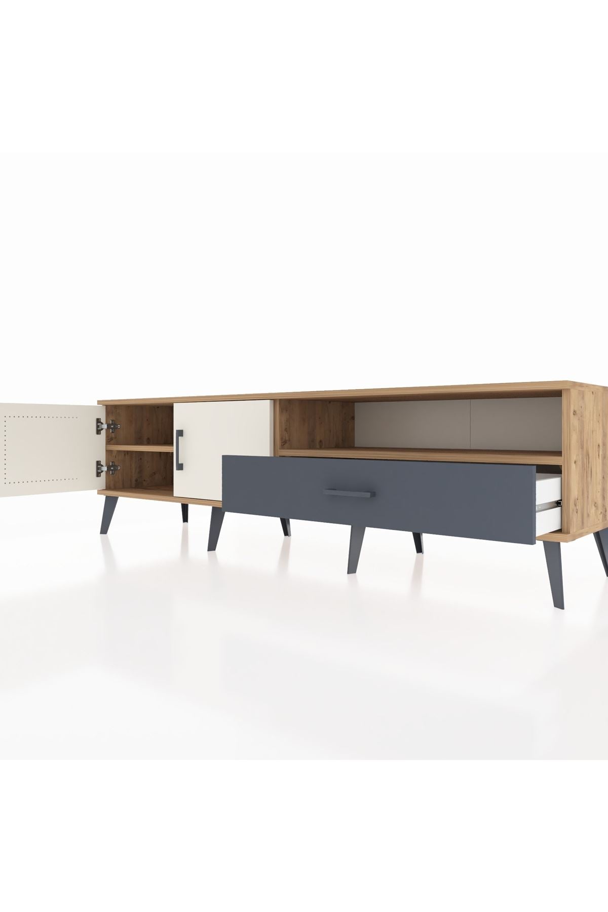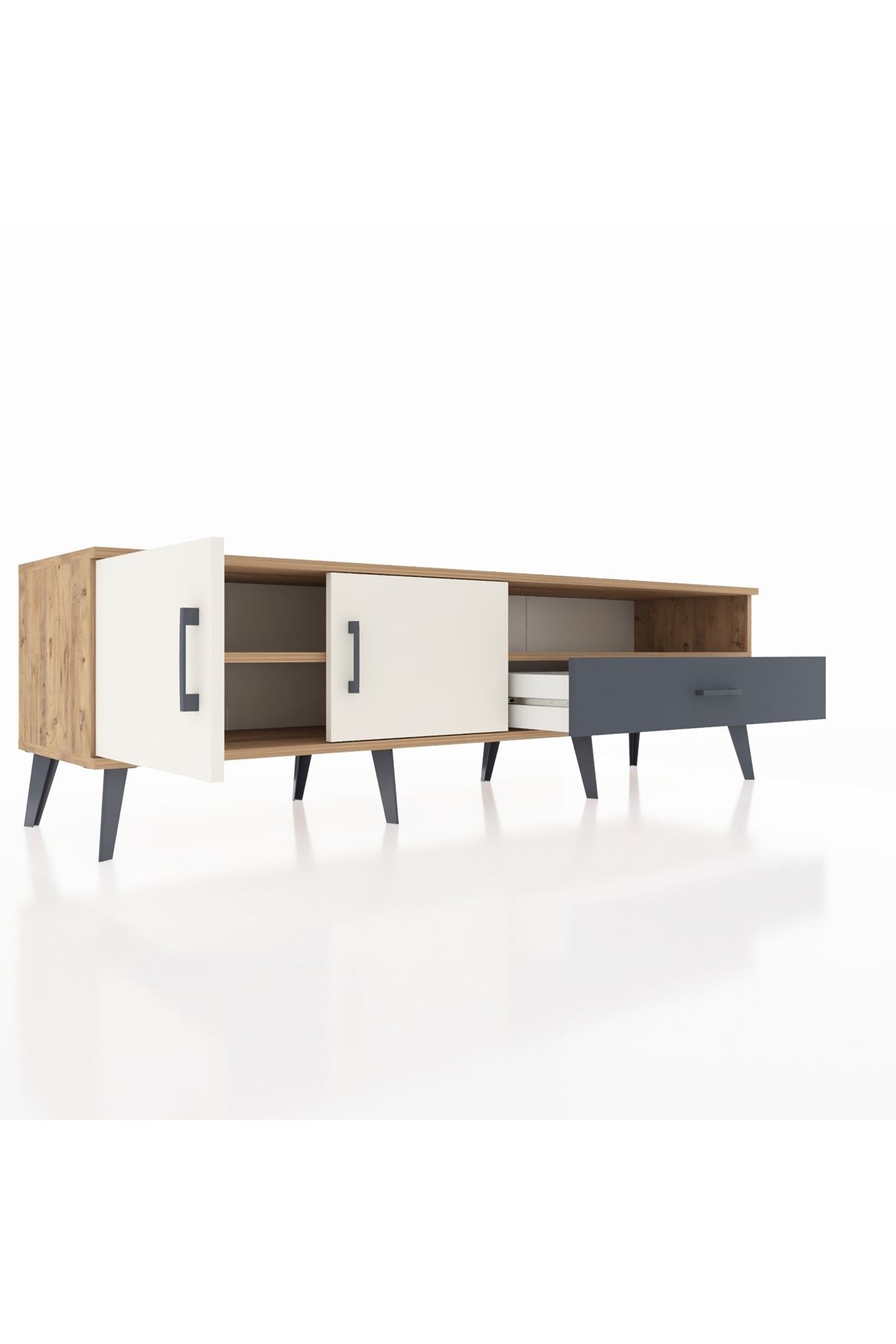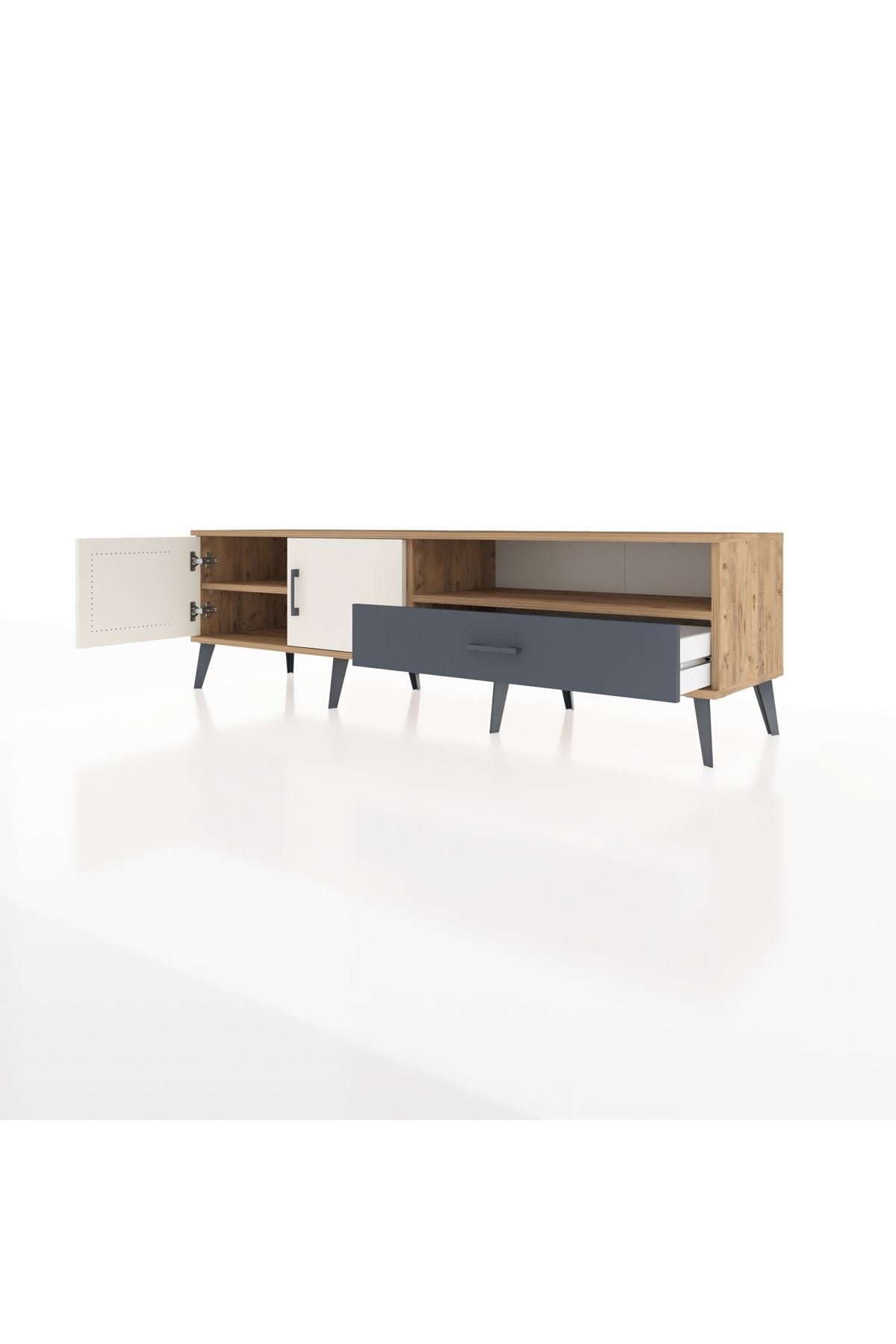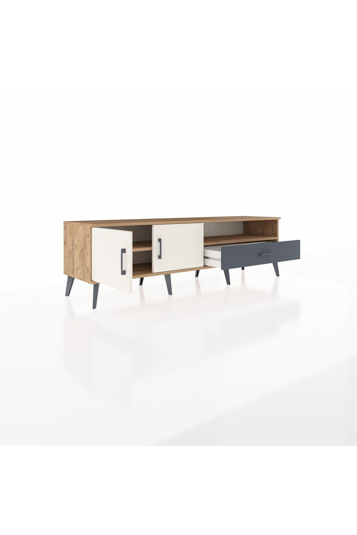 Hyperion TV Ünitesi 2 Raflı Tek Çekmeceli 2 Kapaklı 176x44x51 Çam-Aytaşı/Antrasit