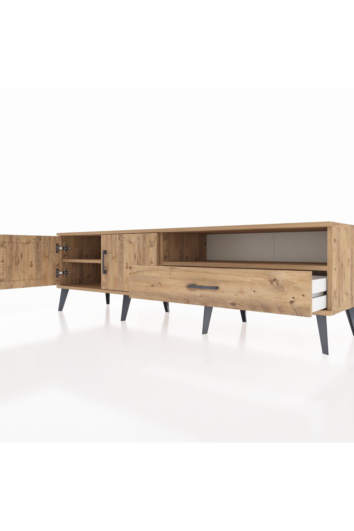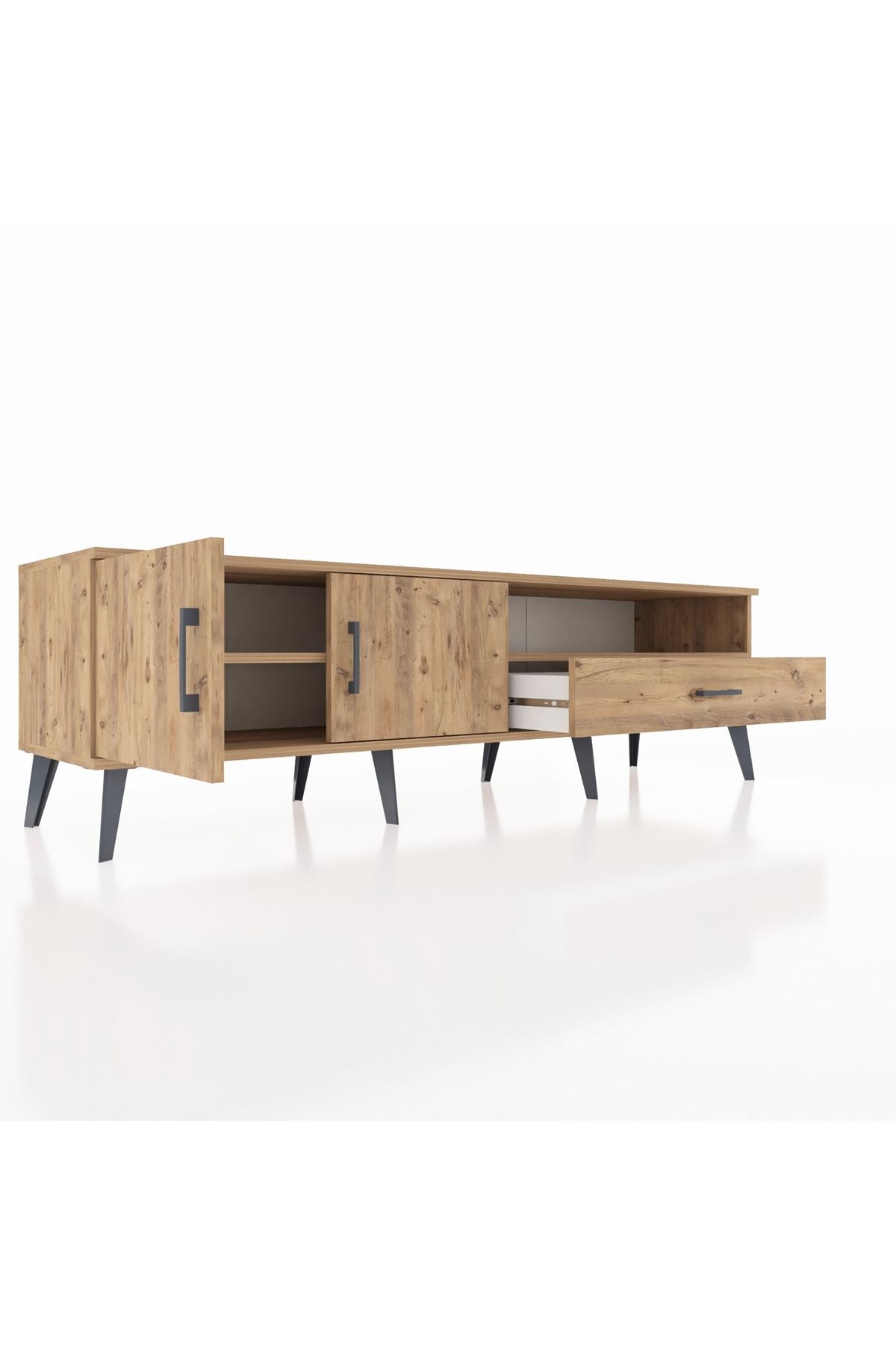 Hyperion TV Ünitesi 2 Raflı Tek Çekmeceli 2 Kapaklı 176x44x51 Çam-Çam/Çam