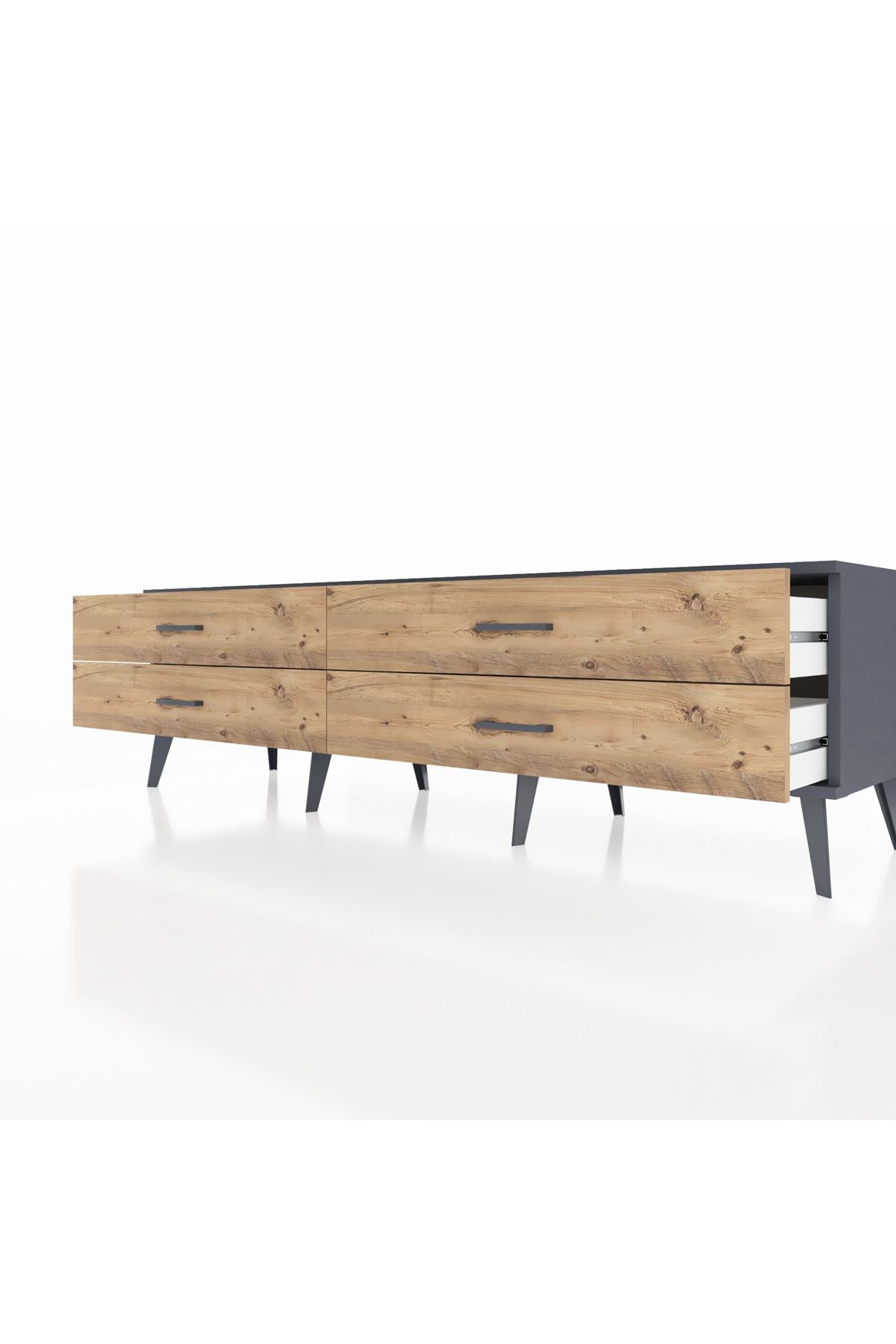 Hyperion TV Ünitesi 4 Çekmeceli 176x44x51 Antrasit-Antrasit/Çam